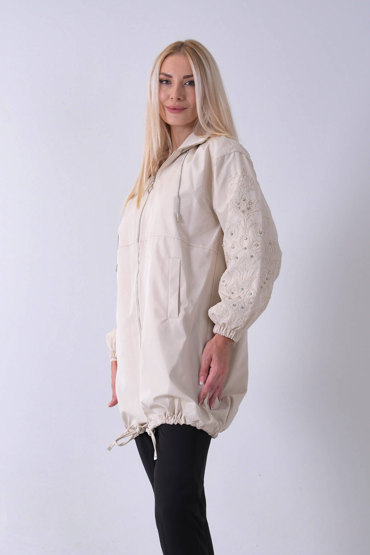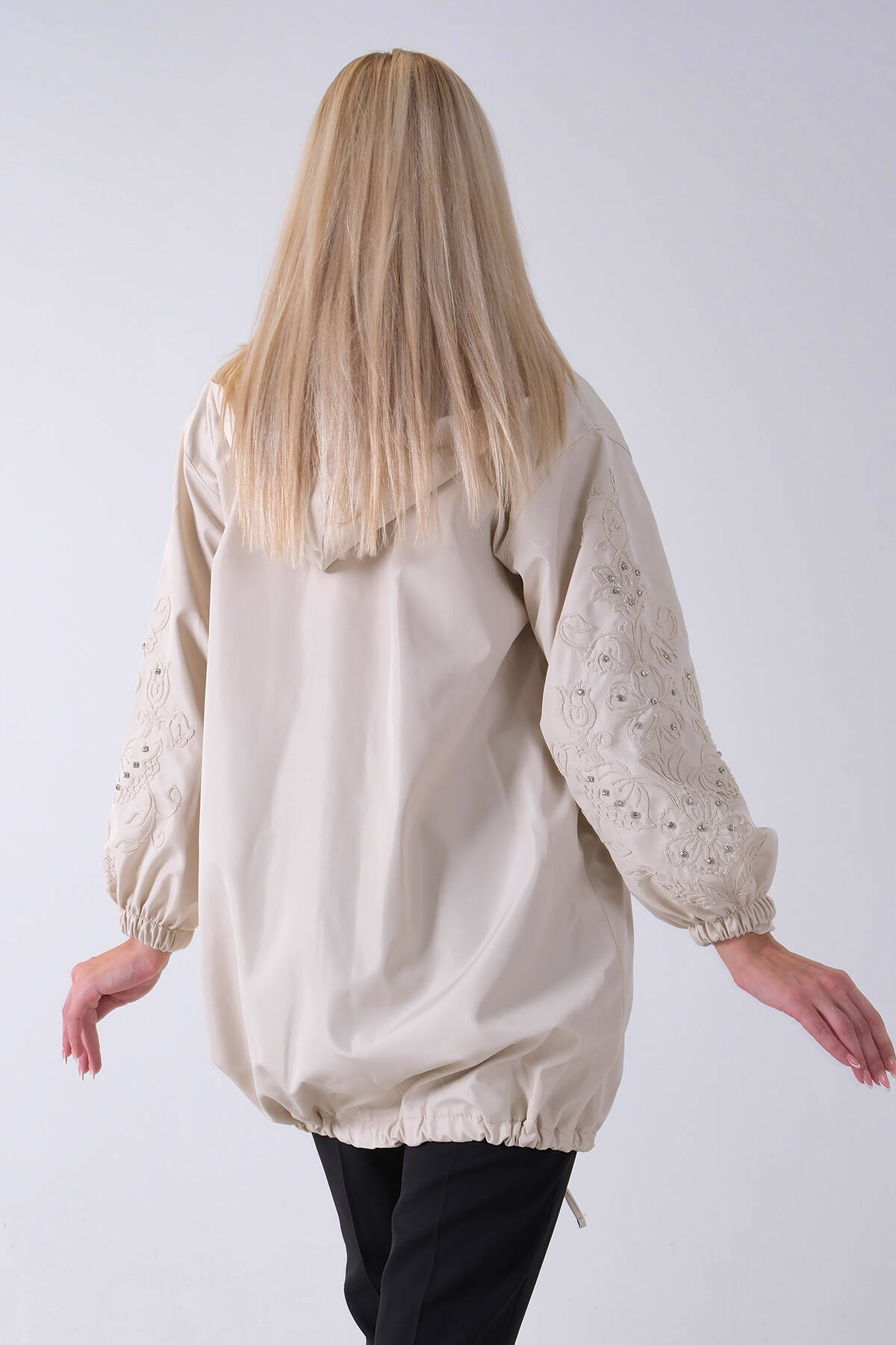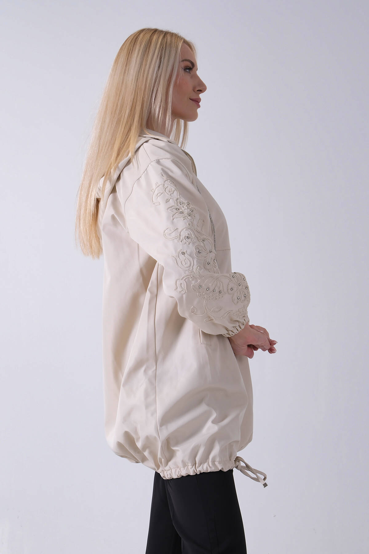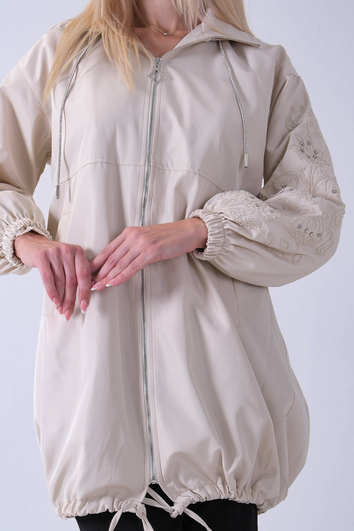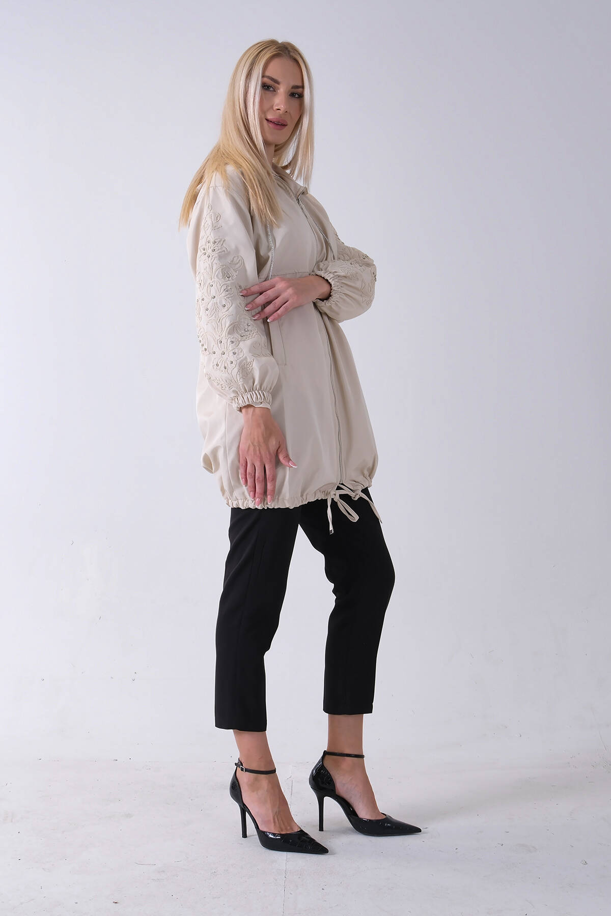 Taş 2 Cepli Kolları Dantel Taş İşlemeli Trenç 940140168.50