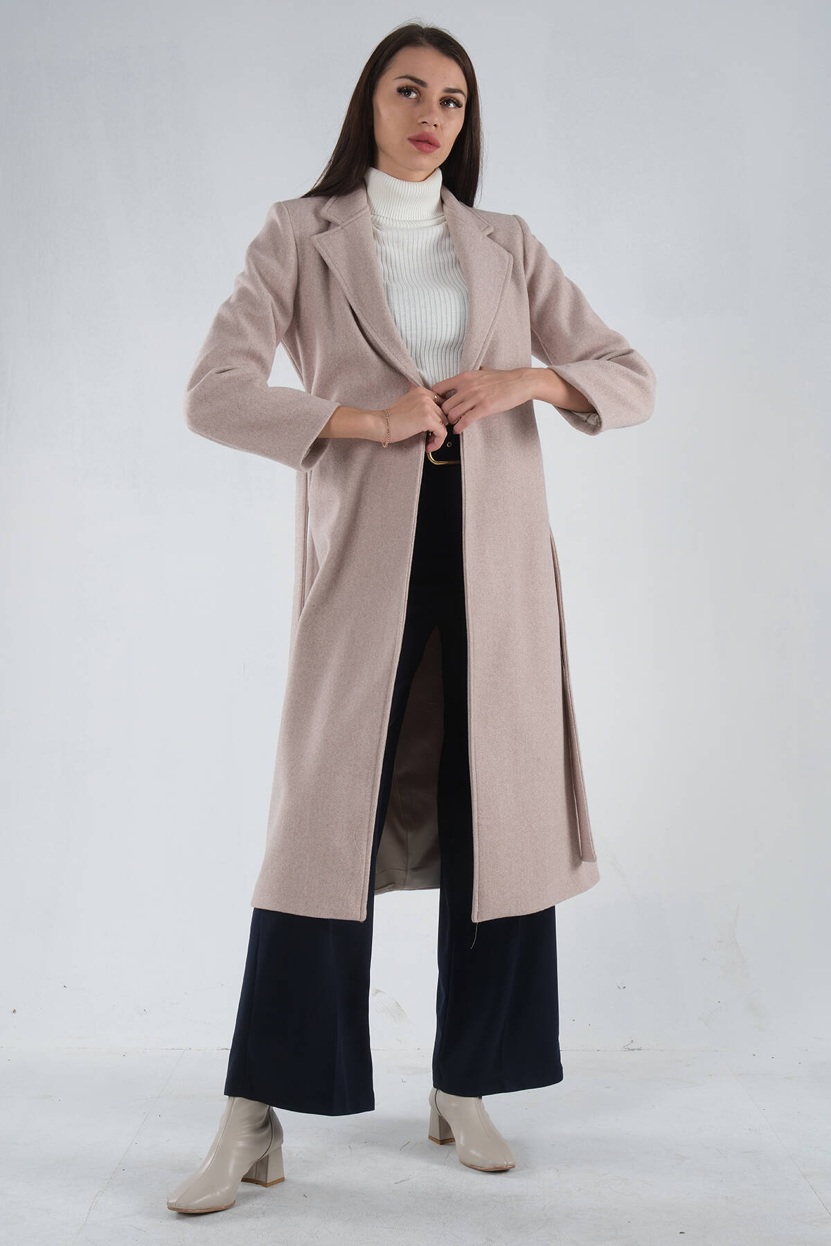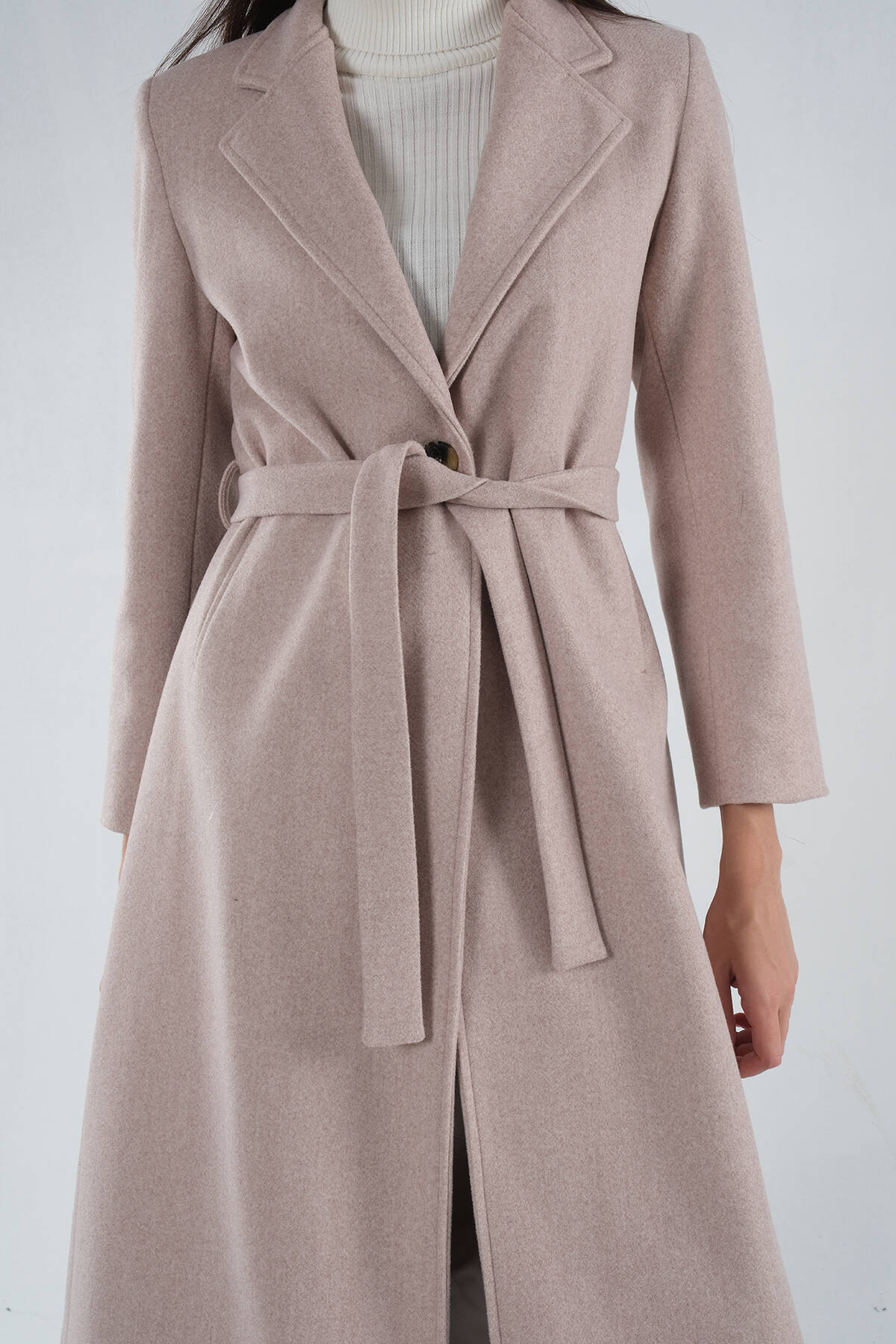 Modelin Ölçüleri : Boy: 1.75 cm / Göğüs: 87 cm / Bel: 66 cm /Basen : 94 cm Mankenin Üzerindeki Ürün 36/S Bedendir %100 Polyester Uzun Kol Kruvaze Yaka Tek Düğmeli Seyyar Kuşaklı Astarlı Çift Cepli Kaşe Kaban Modeli Ürün Boyu: 118 cm Stüdyo Çekimlerinde Renkler Işık Farklılıgından Dolayı Değişiklik Gösterebilir.
