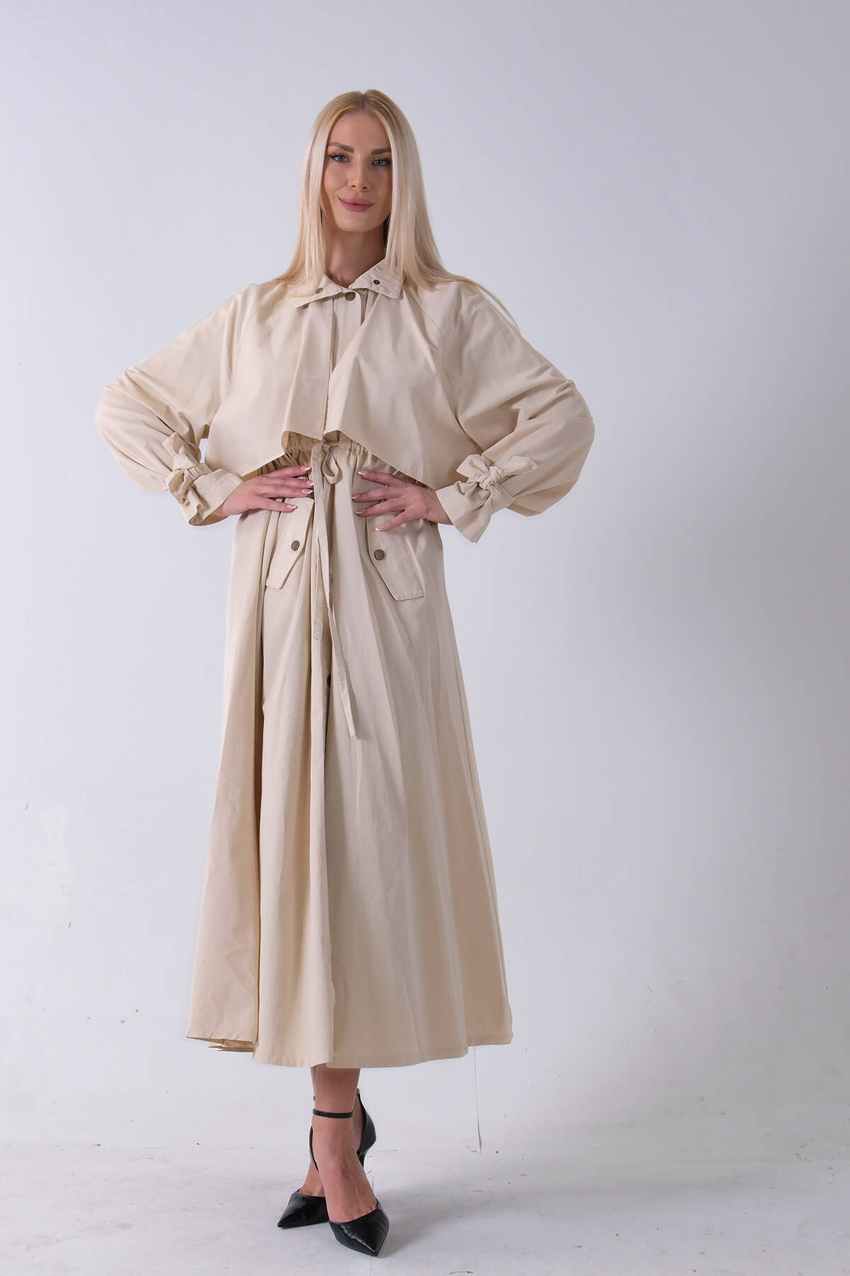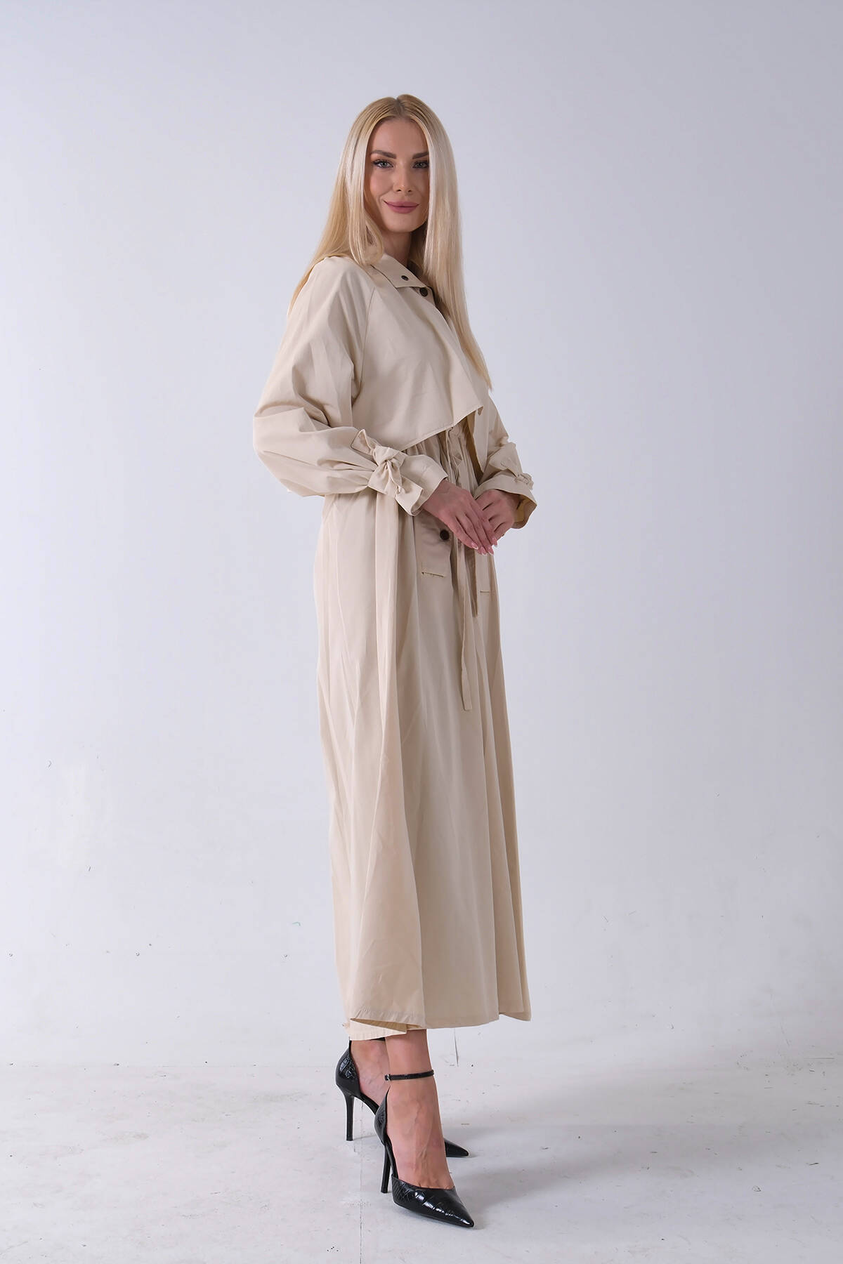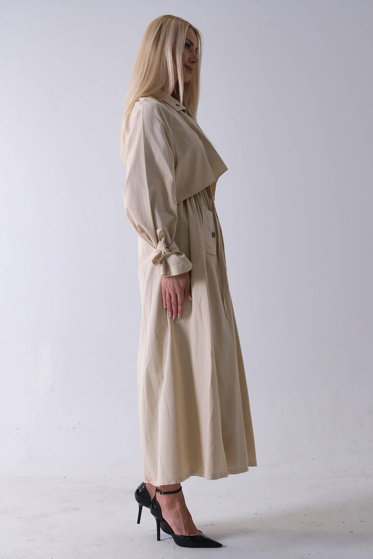 Taş Belden Bağlama Detaylı Yandan Cepli Uzun Trenç 422237.50