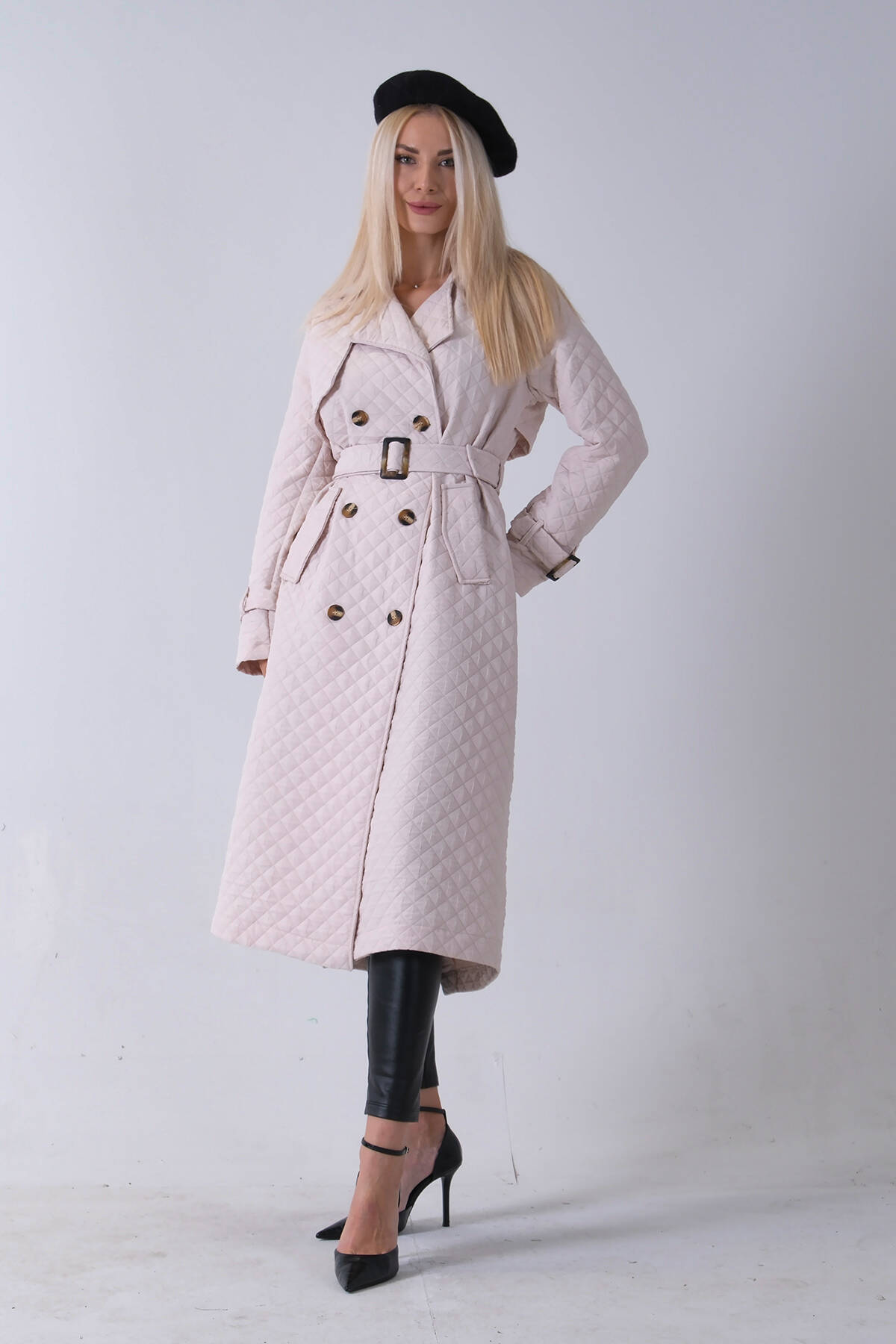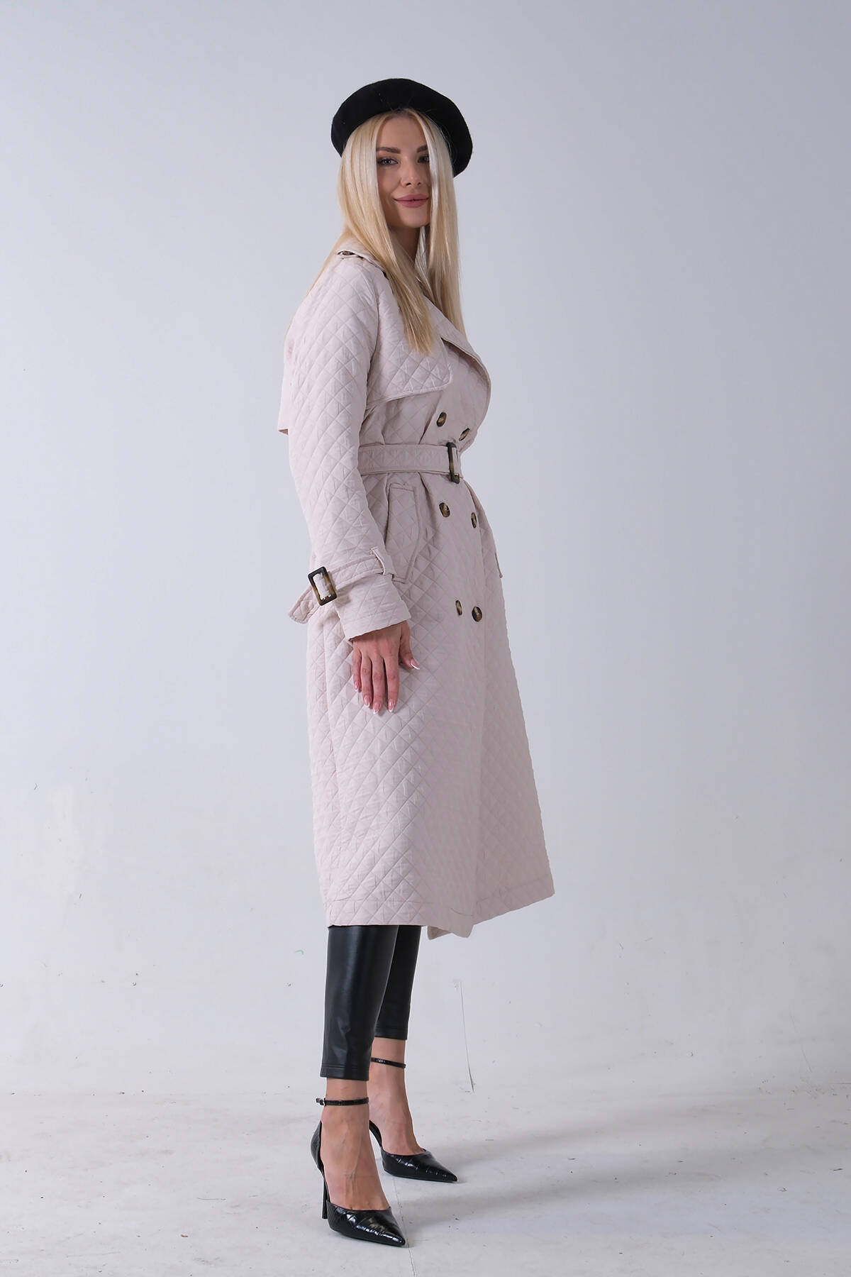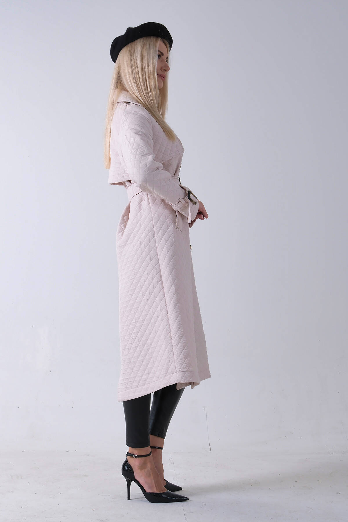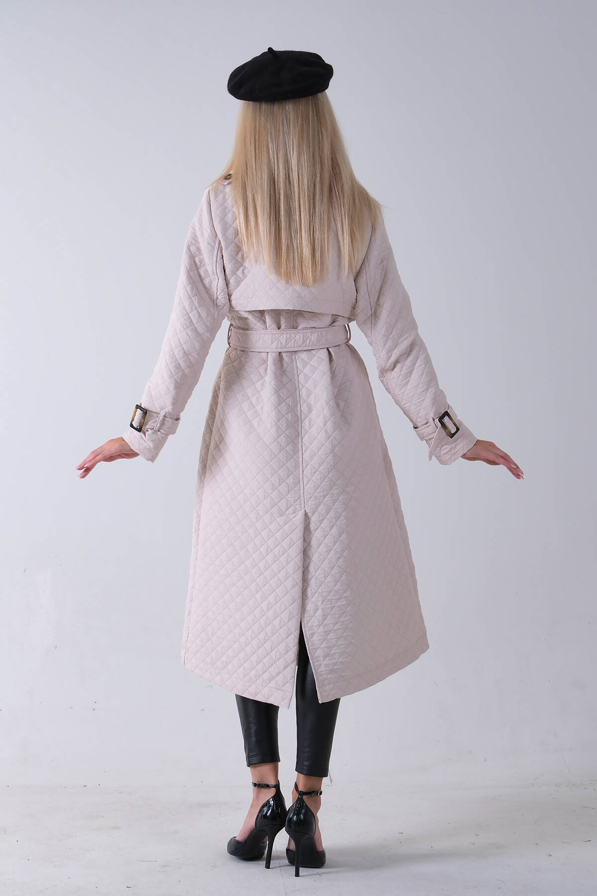 Taş Beli Kemerli Düğme Kapamalı Kapitone Desenli Trenç 44520205.50