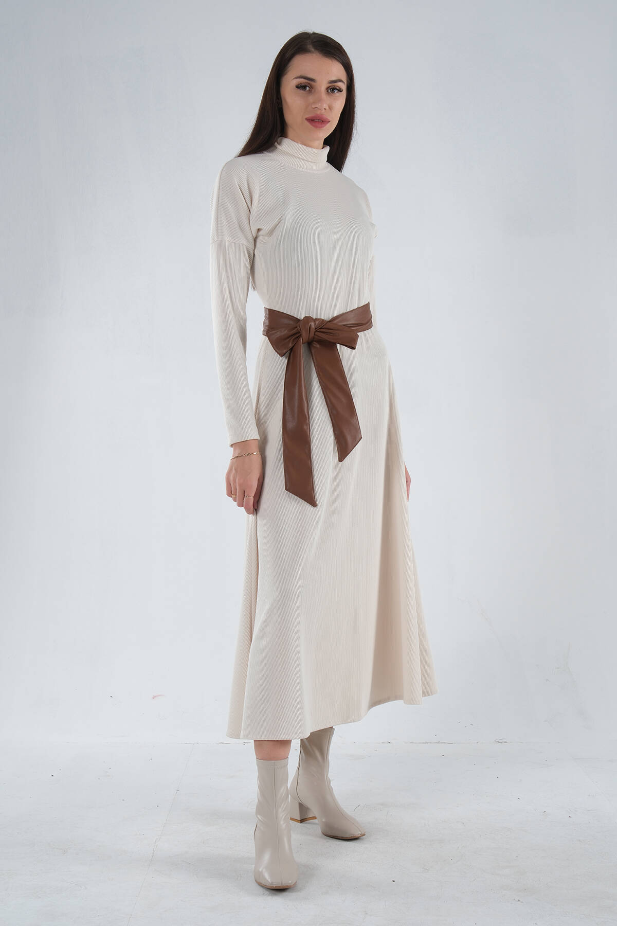 Taş Beli Kemerli Örme Elbise 0104030.50