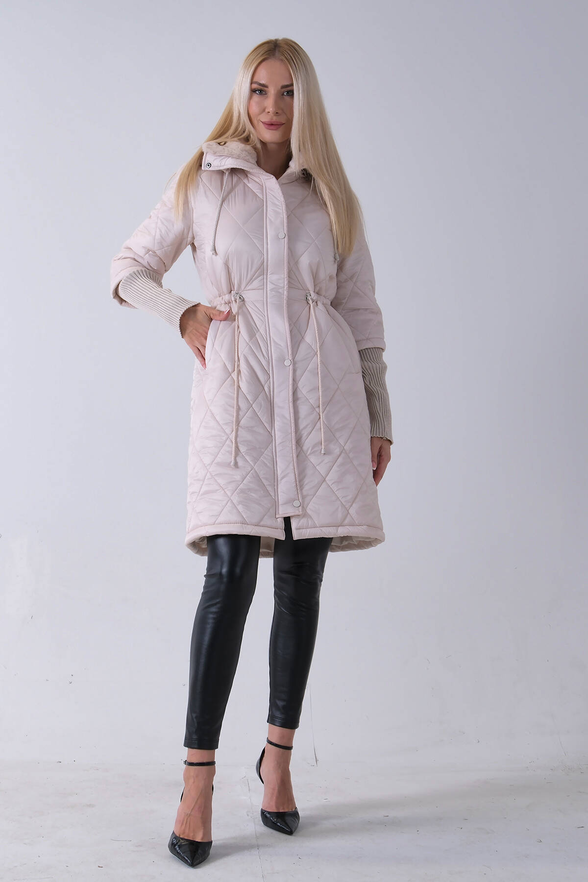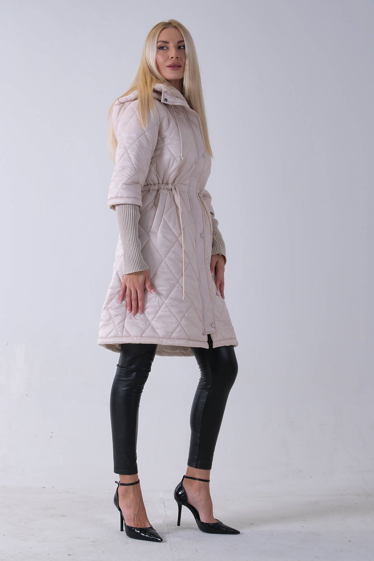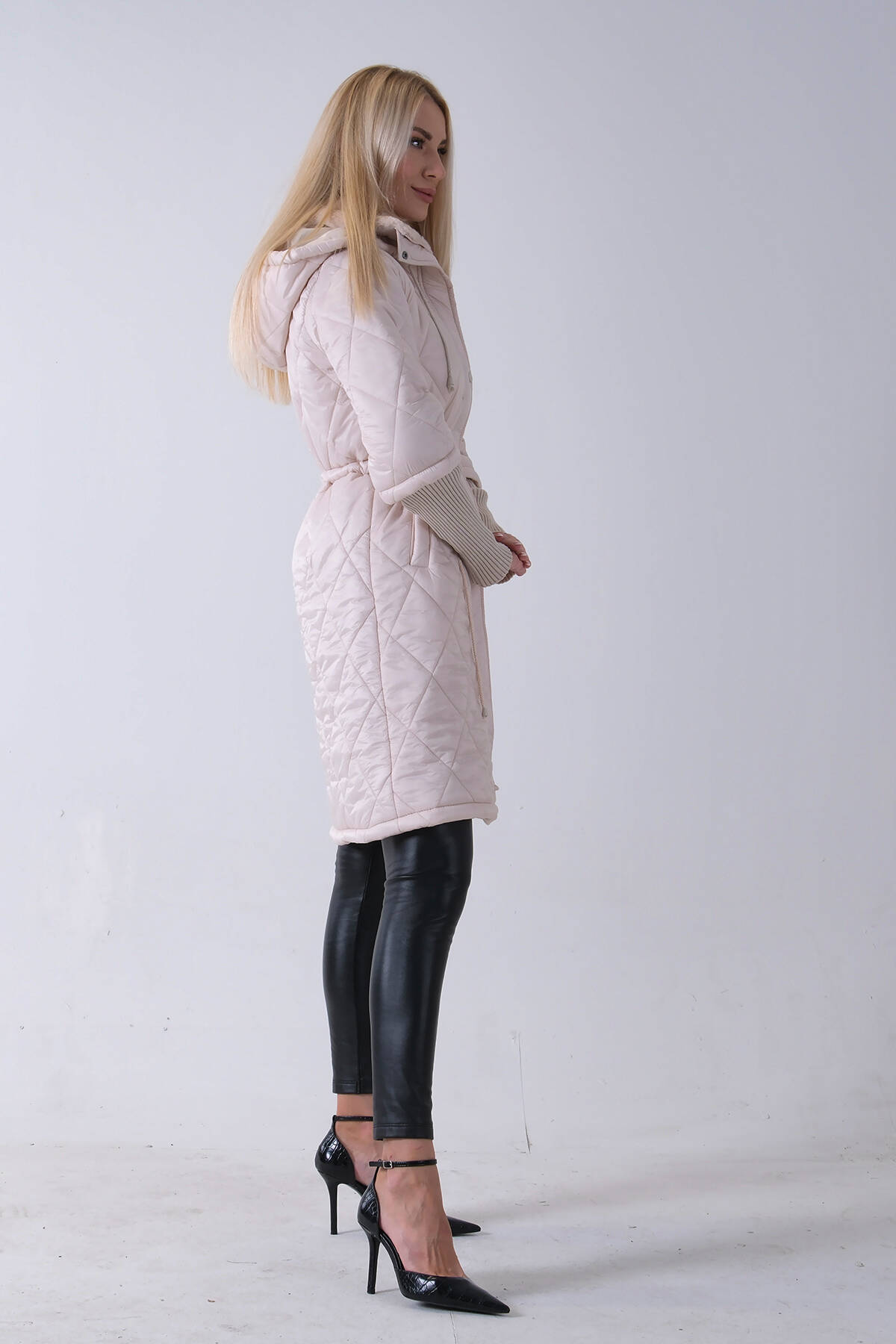 Taş Bileği Lastikli Kapüşonlu Baklava Desenli Şişme Mont 44520207.50