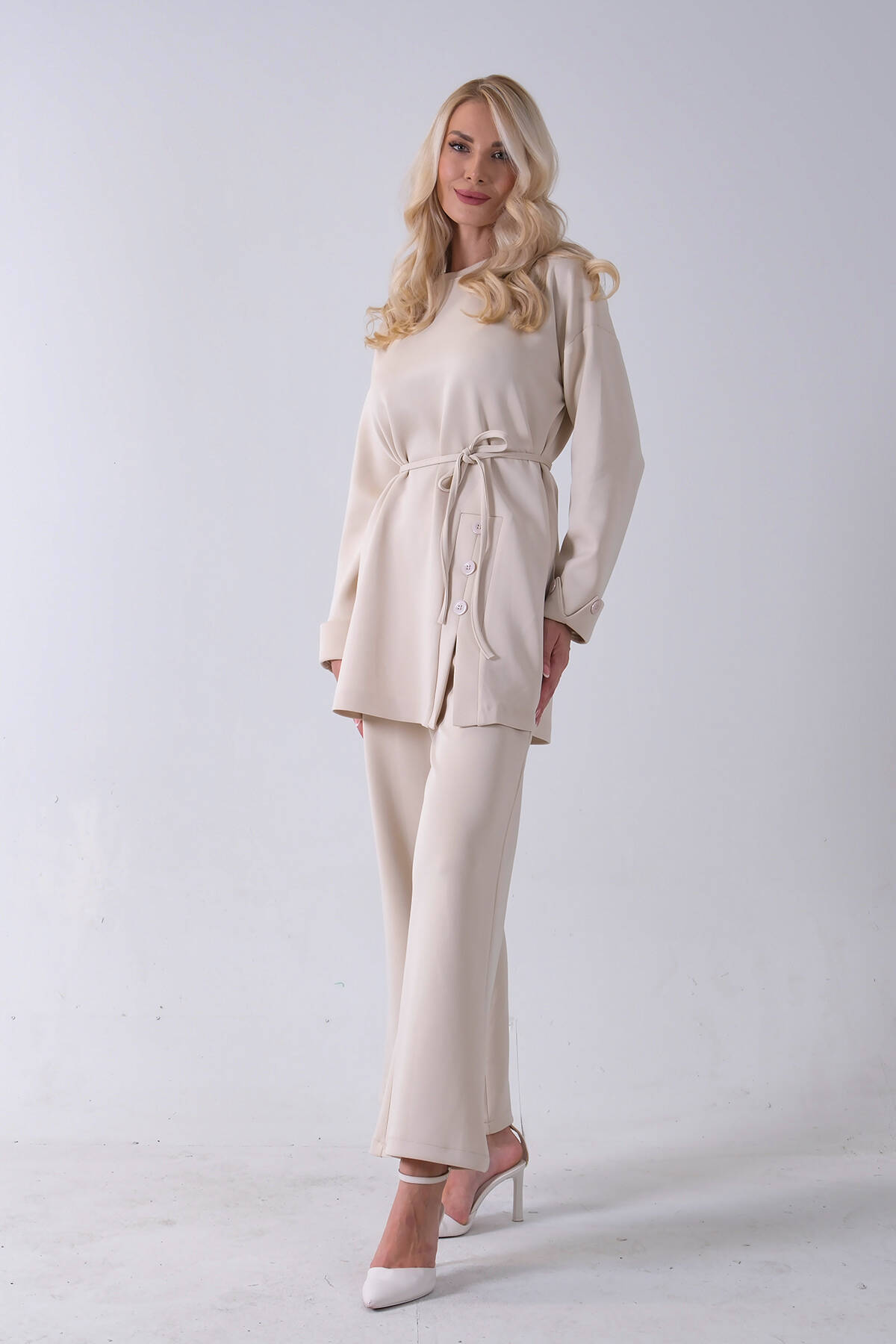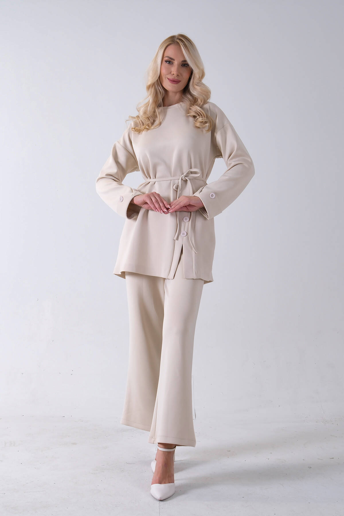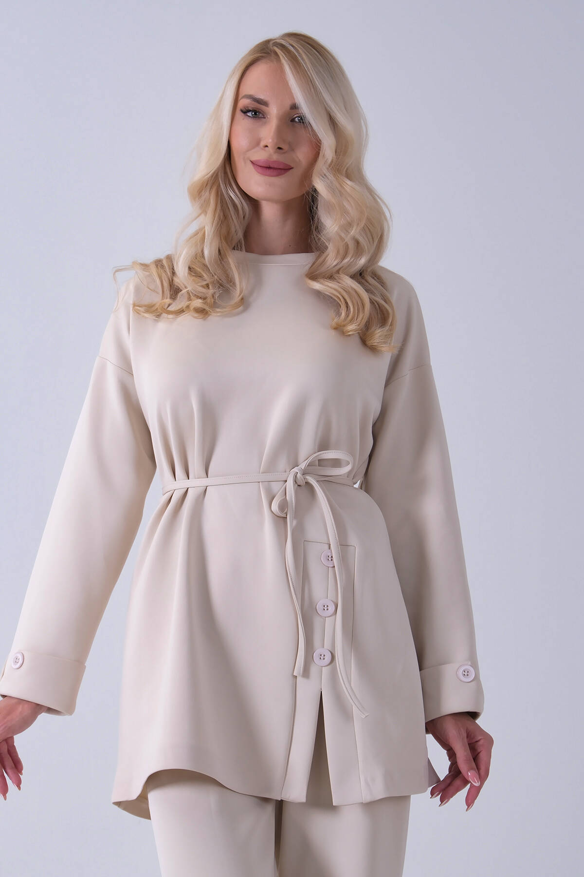 Taş Yaka ve Pantolon Paçası Taş Detaylı Tunikli Takım 4703048.50