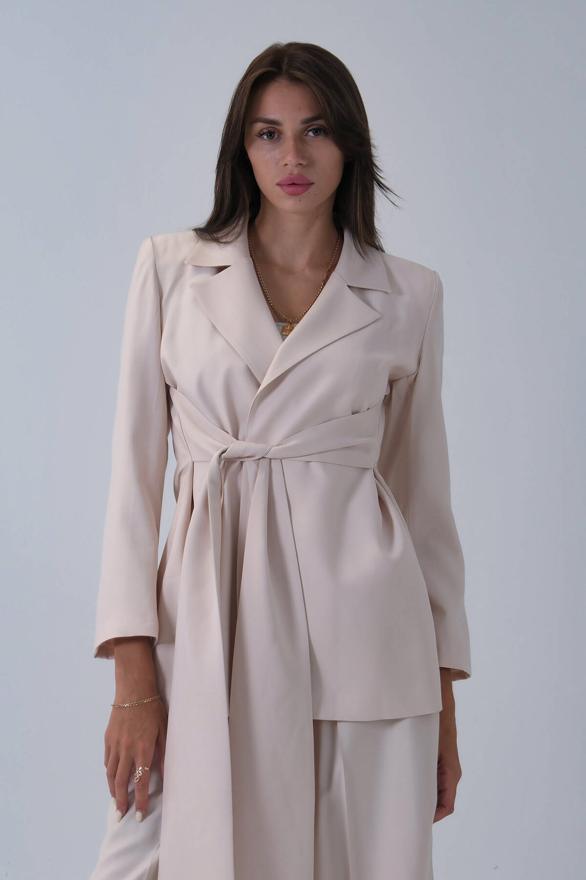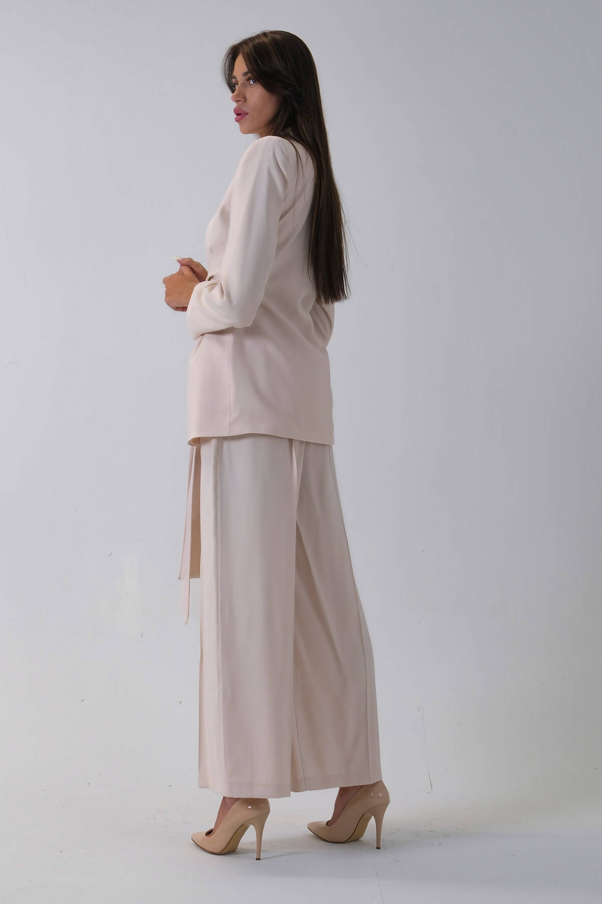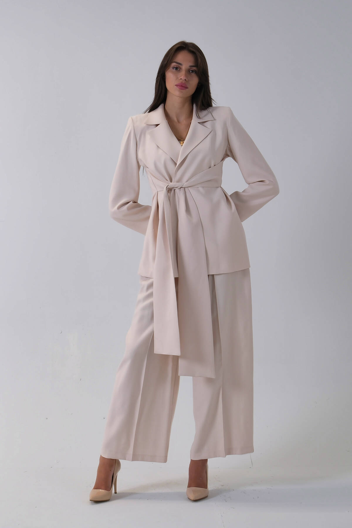 Taş Ceket Kuşak Bağlama Detaylı Pantolonlu Takım 0106327.50