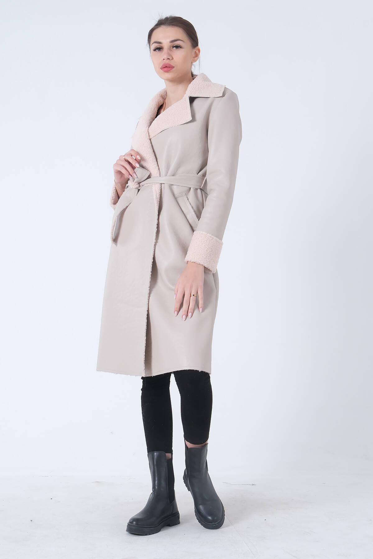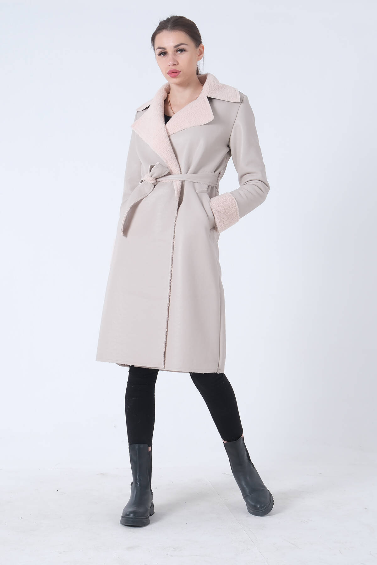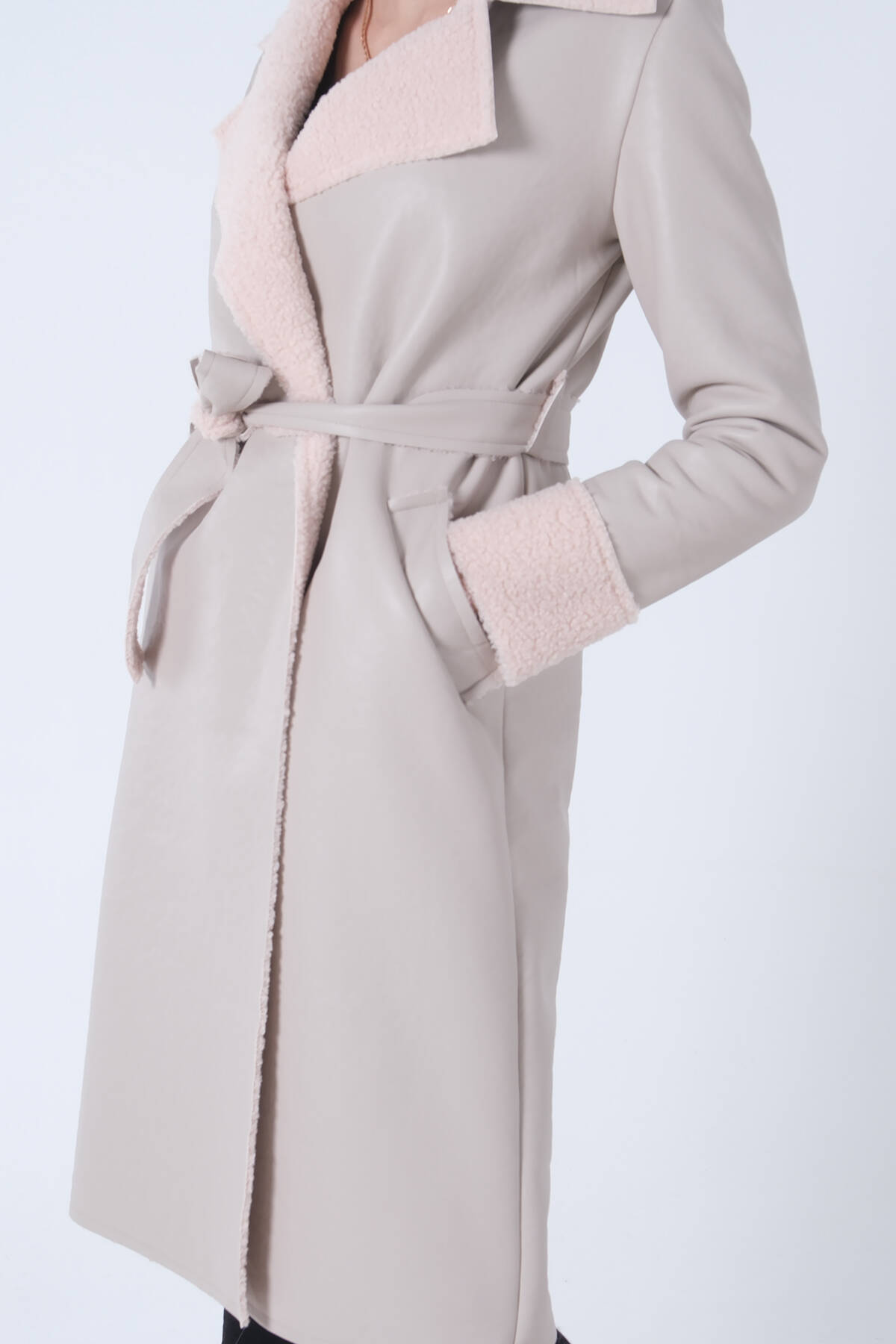 Taş Yandan Cepli Broş Detaylı Yaka Kürklü Peluş Kaban 44510847.50
