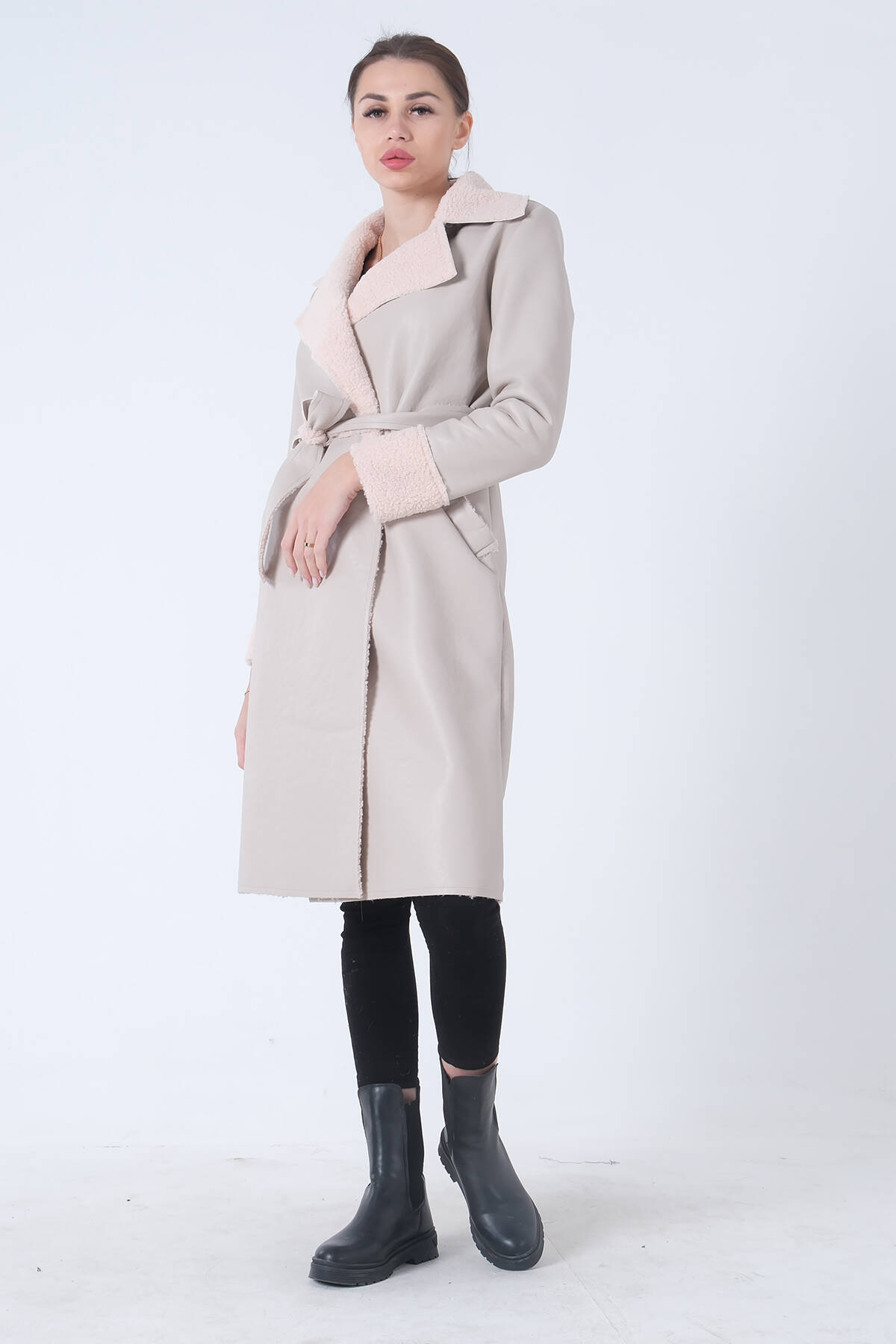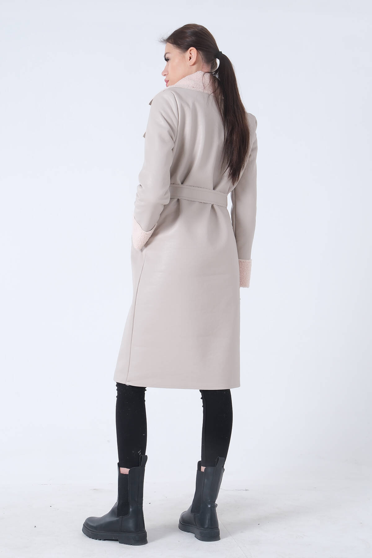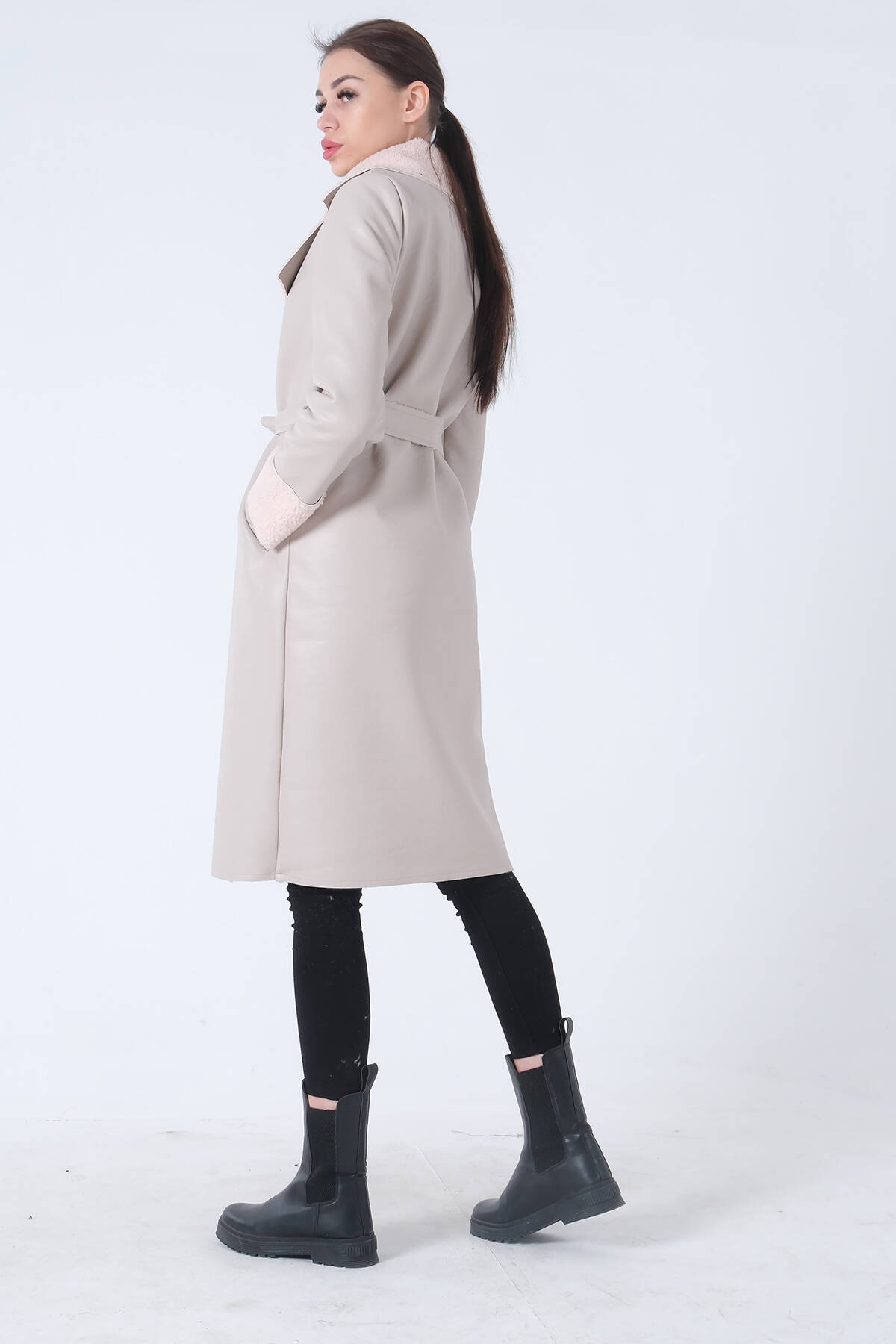 Taş Yandan Cepli Broş Detaylı Yaka Kürklü Peluş Kaban 44510847.50