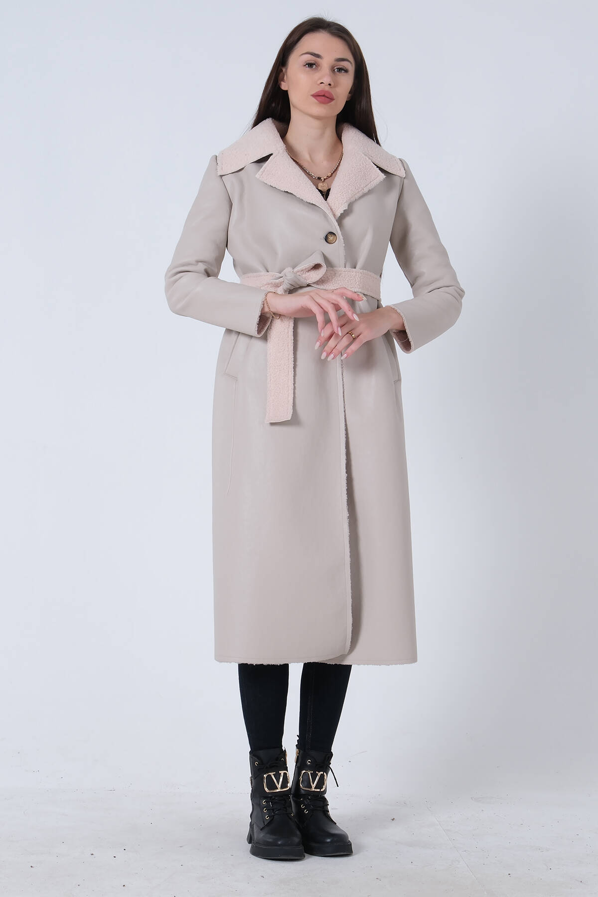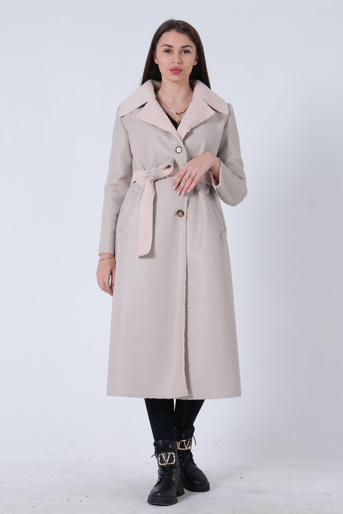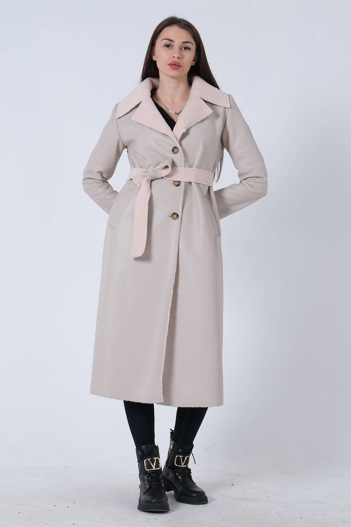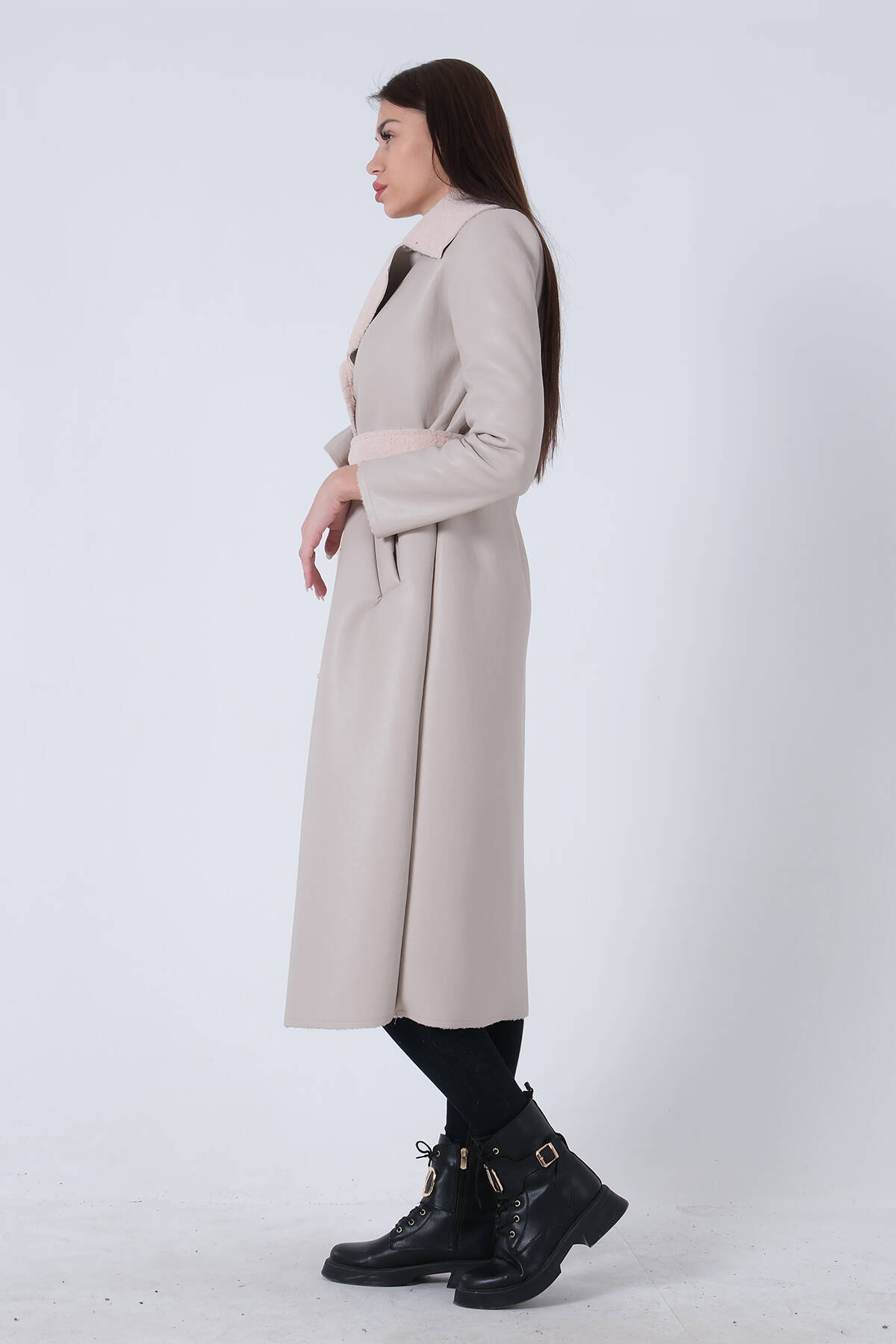Mürdüm Yaka 2 Düğme Kapamalı Yandan Cepli Kemerli Kaban 4578039.21