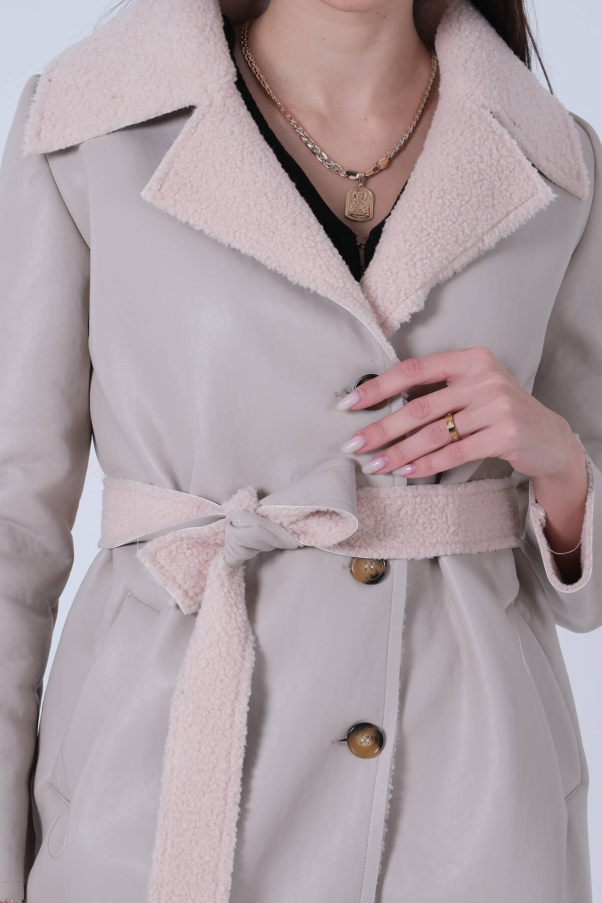 Taş Deri Düğmeli Seyyar Kemerli Kaban 0108086.50