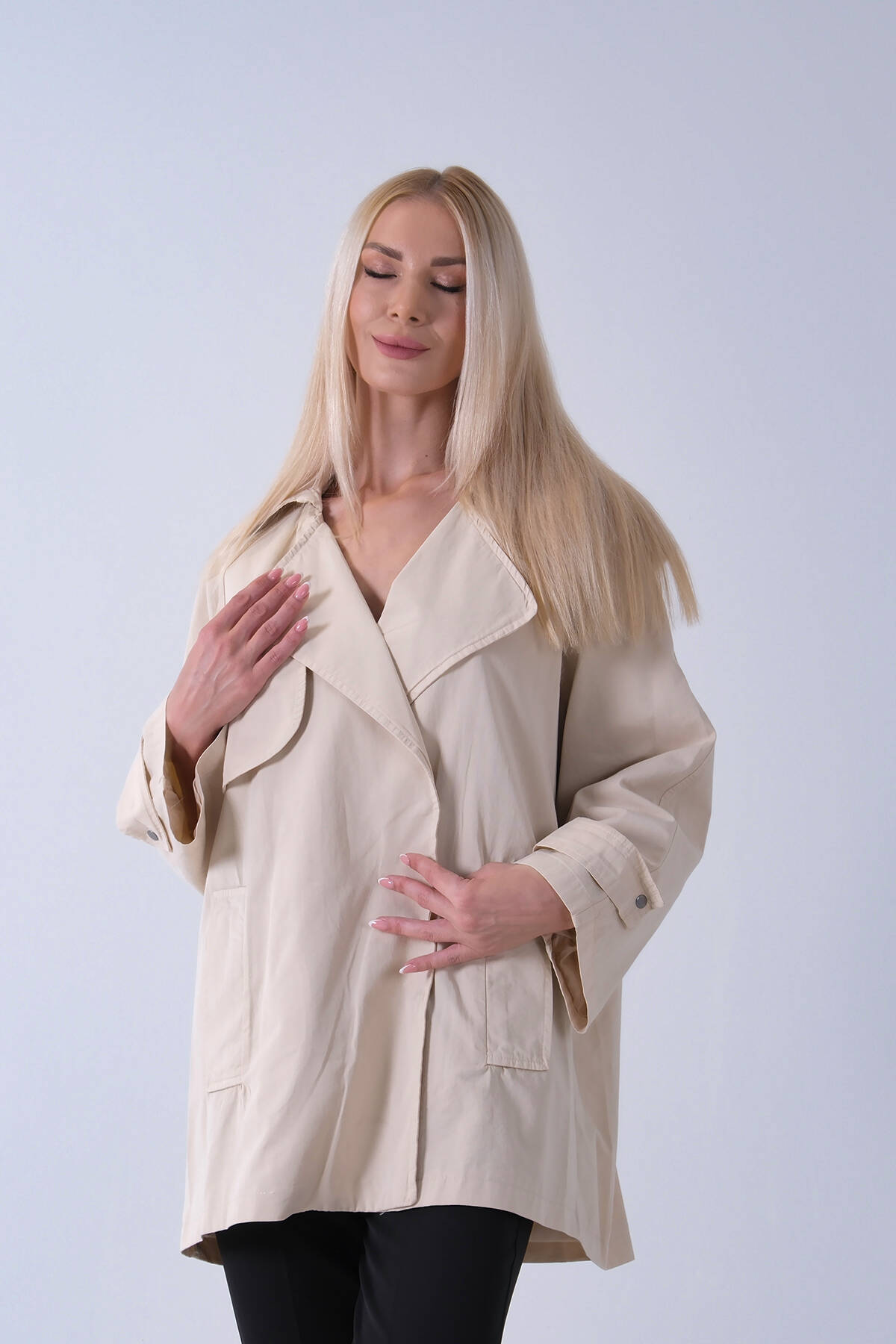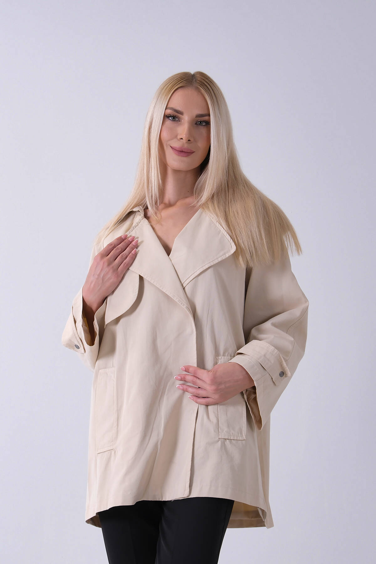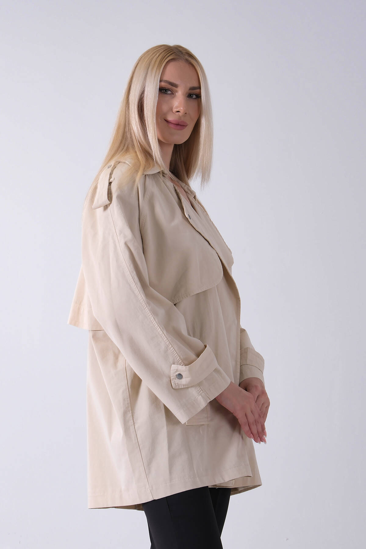 Taş Düğme Kapamalı Kuşaklı Yandan Cepli Trenç 422235.50