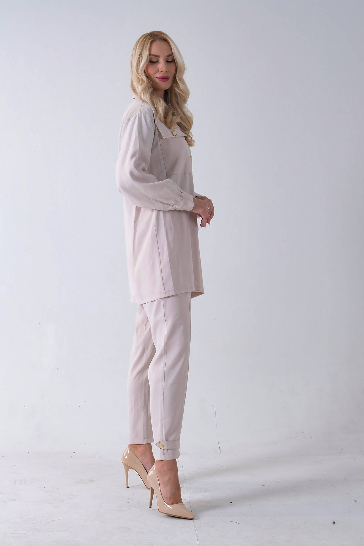 Taş Yaka ve Pantolon Paçası Taş Detaylı Tunikli Takım 4703048.50