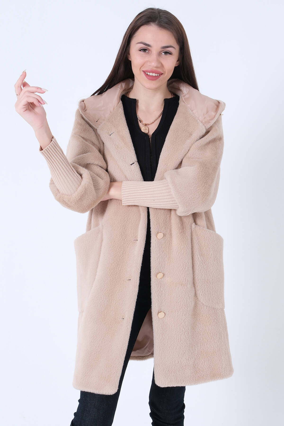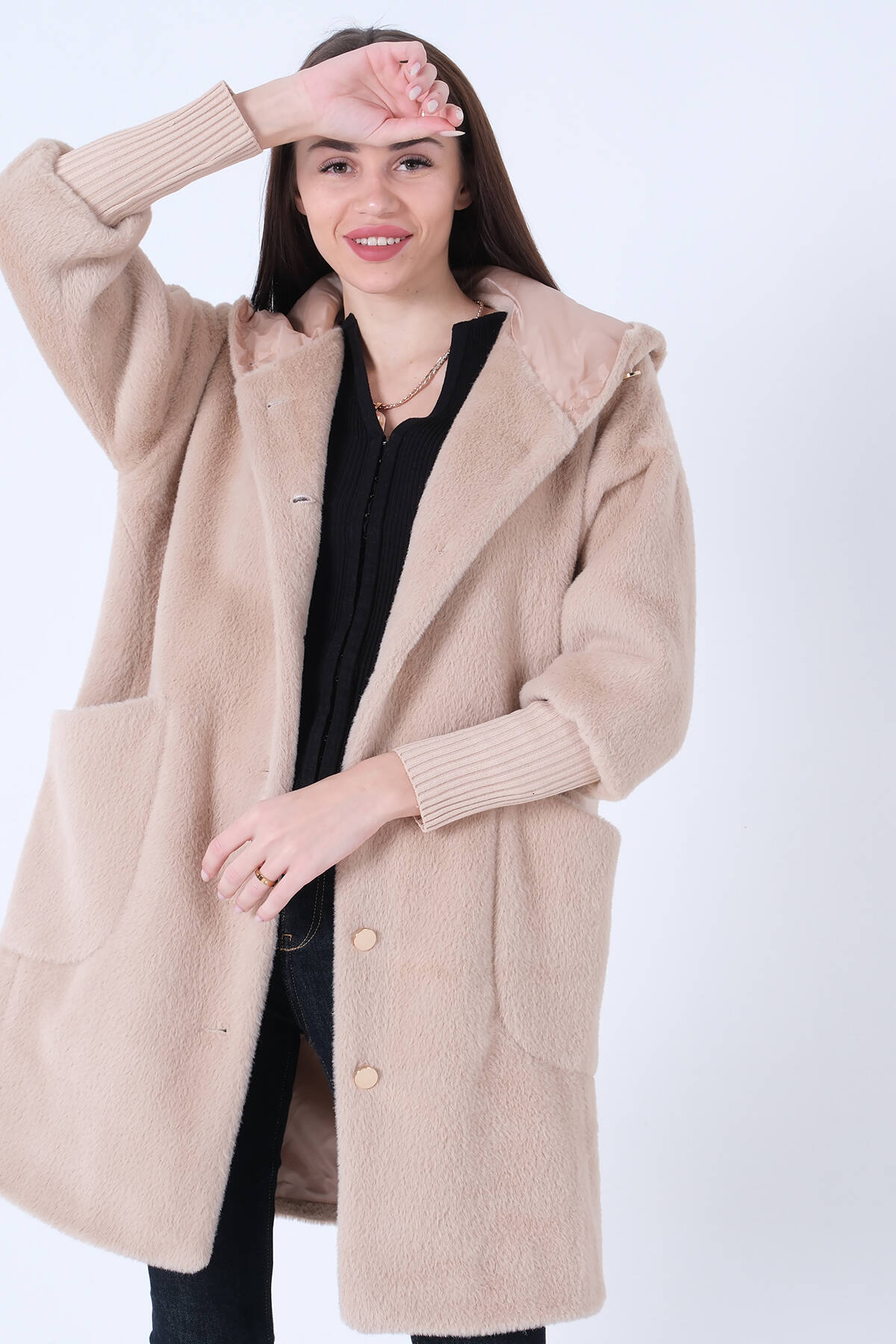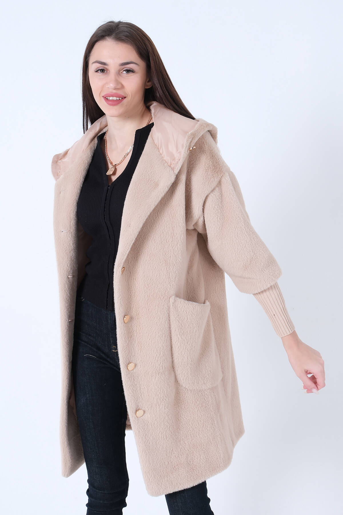 Taş Gold Düğmeli Kapüşonlu Yün Peluş Kaban 44510388.50