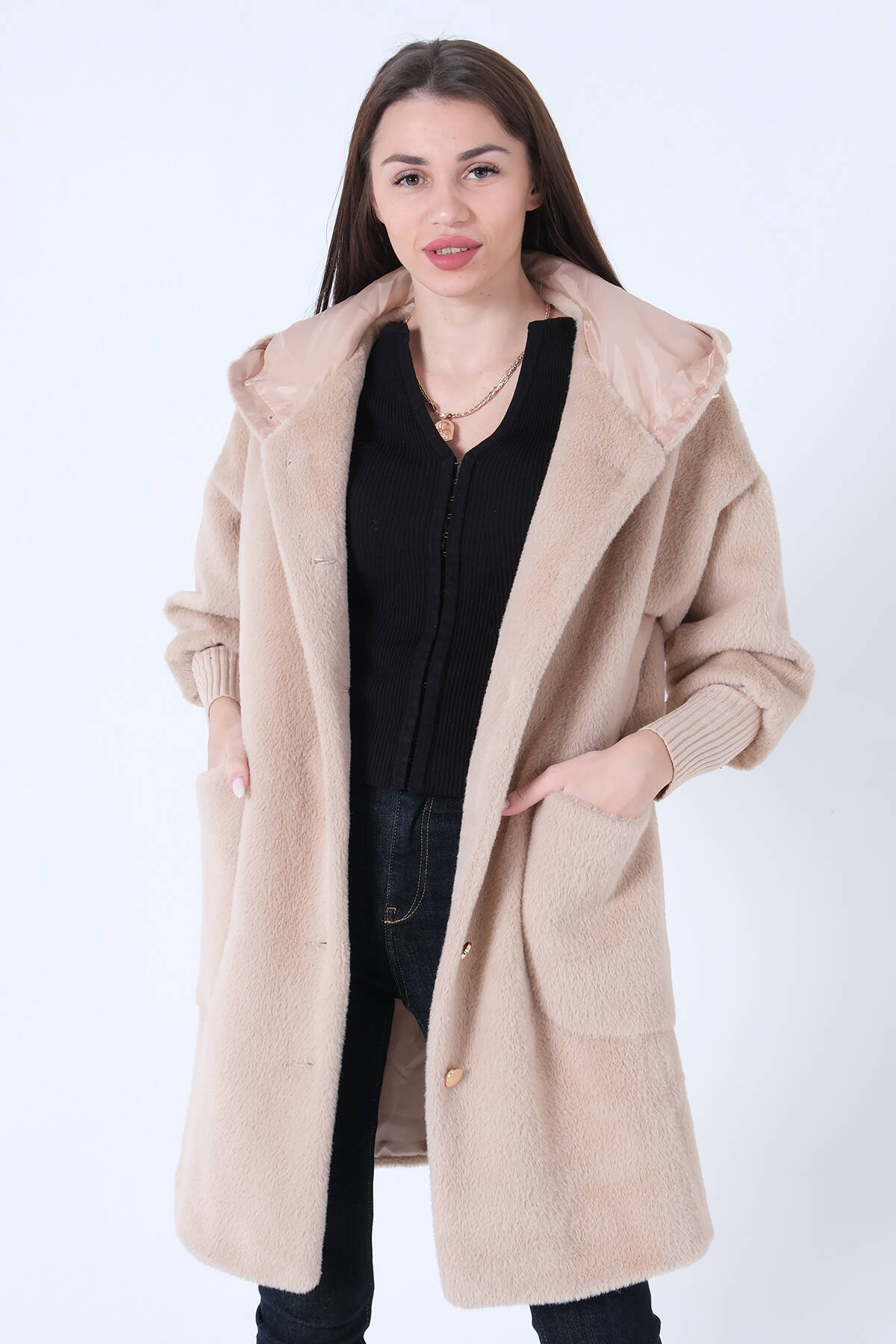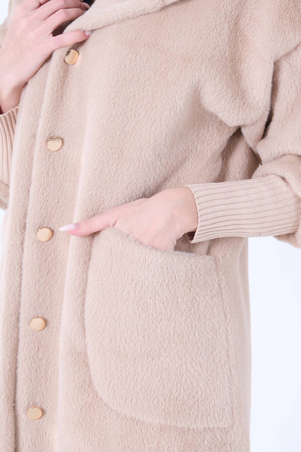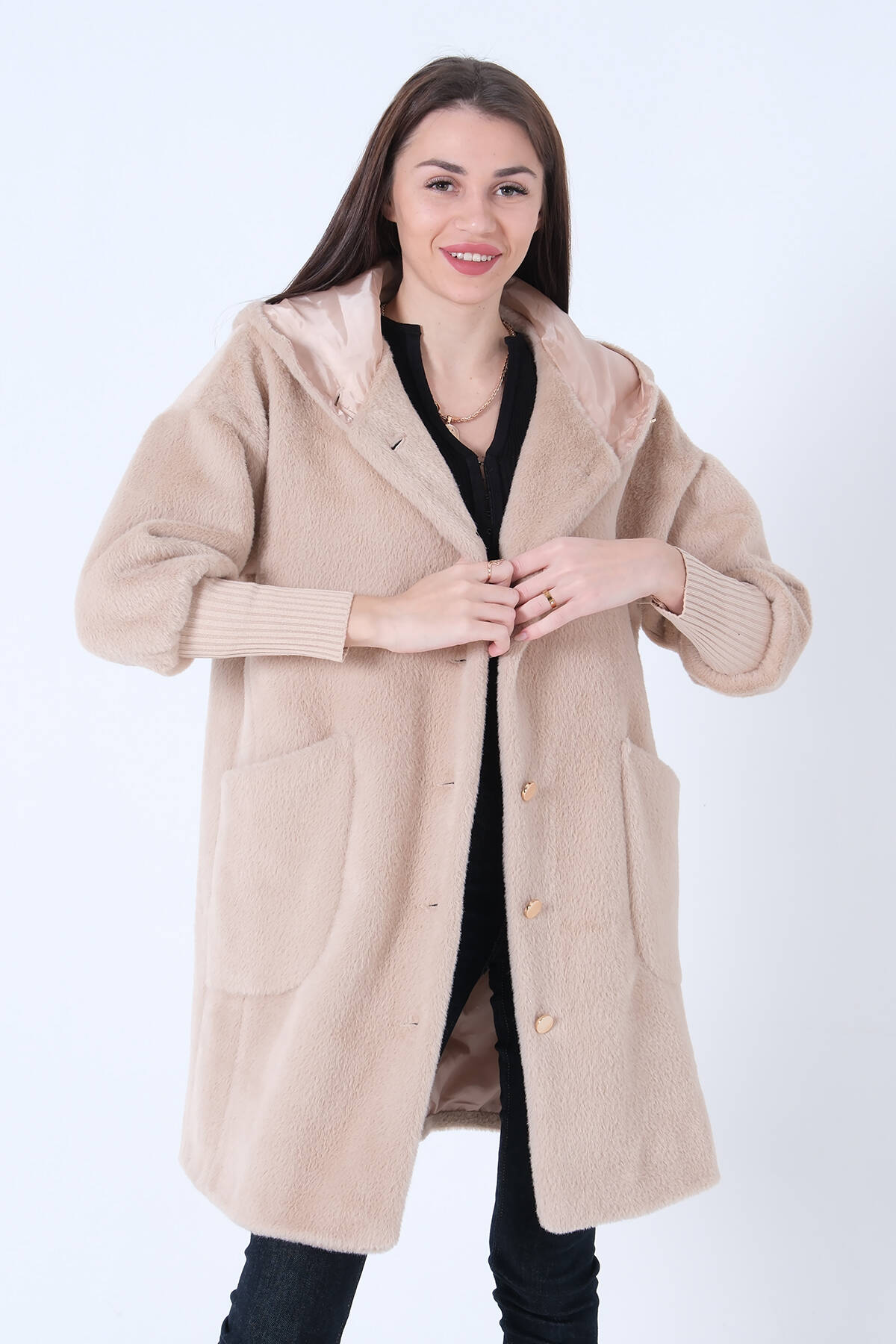 Taş Gold Düğmeli Kapüşonlu Yün Peluş Kaban 44510388.50