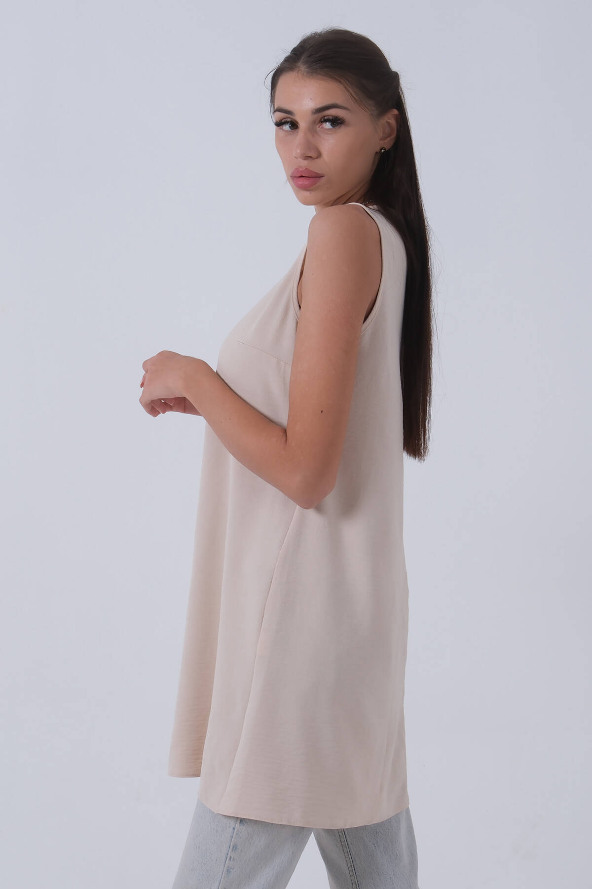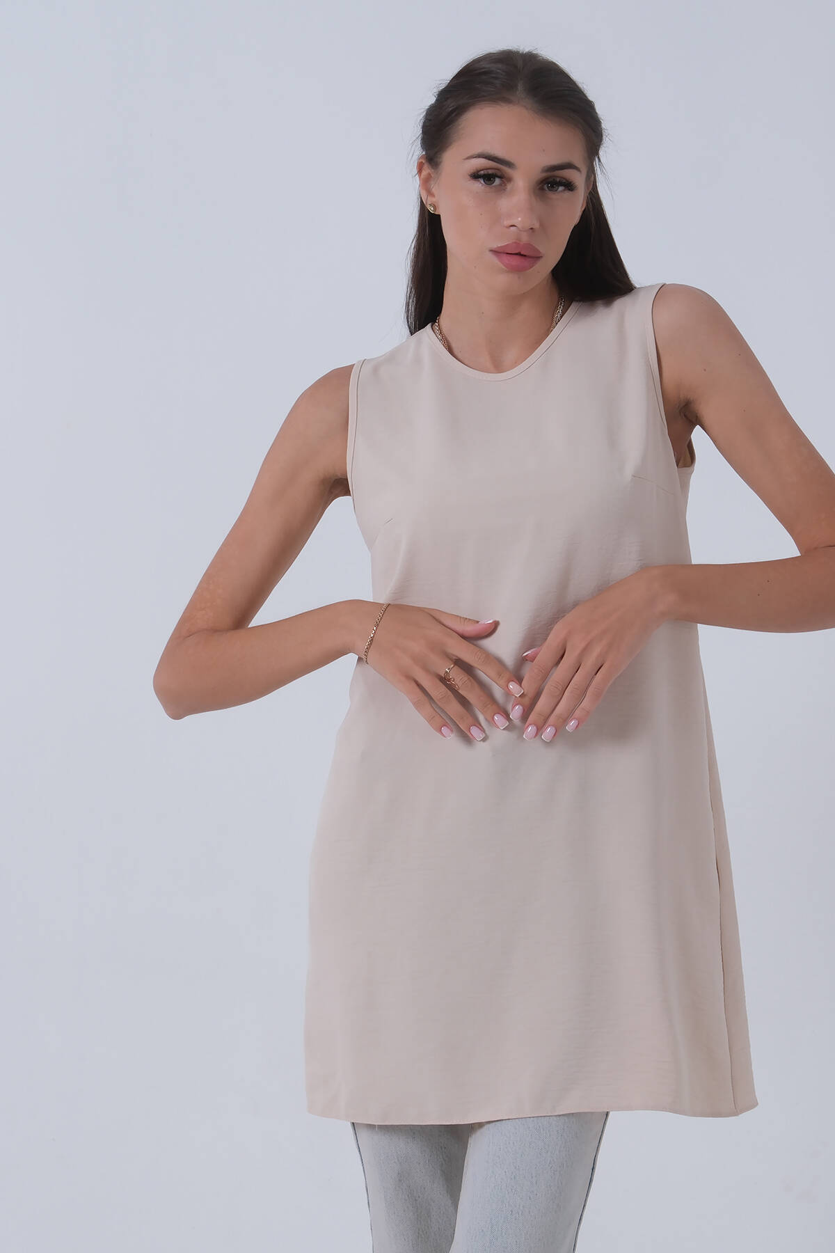 Modelin Ölçüleri : Boy: 1.80 cm / Göğüs: 87 cm / Bel: 66 cm /Basen : 94 cm Mankenin Üzerindeki Ürün 36/S Bedendir %100 Polyester Kolsuz Bisikle Yaka Atlet Ürün Boyu: 84 cm Stüdyo Çekimlerinde Renkler Işık Farklılıgından Dolayı Değişiklik Gösterebilir.