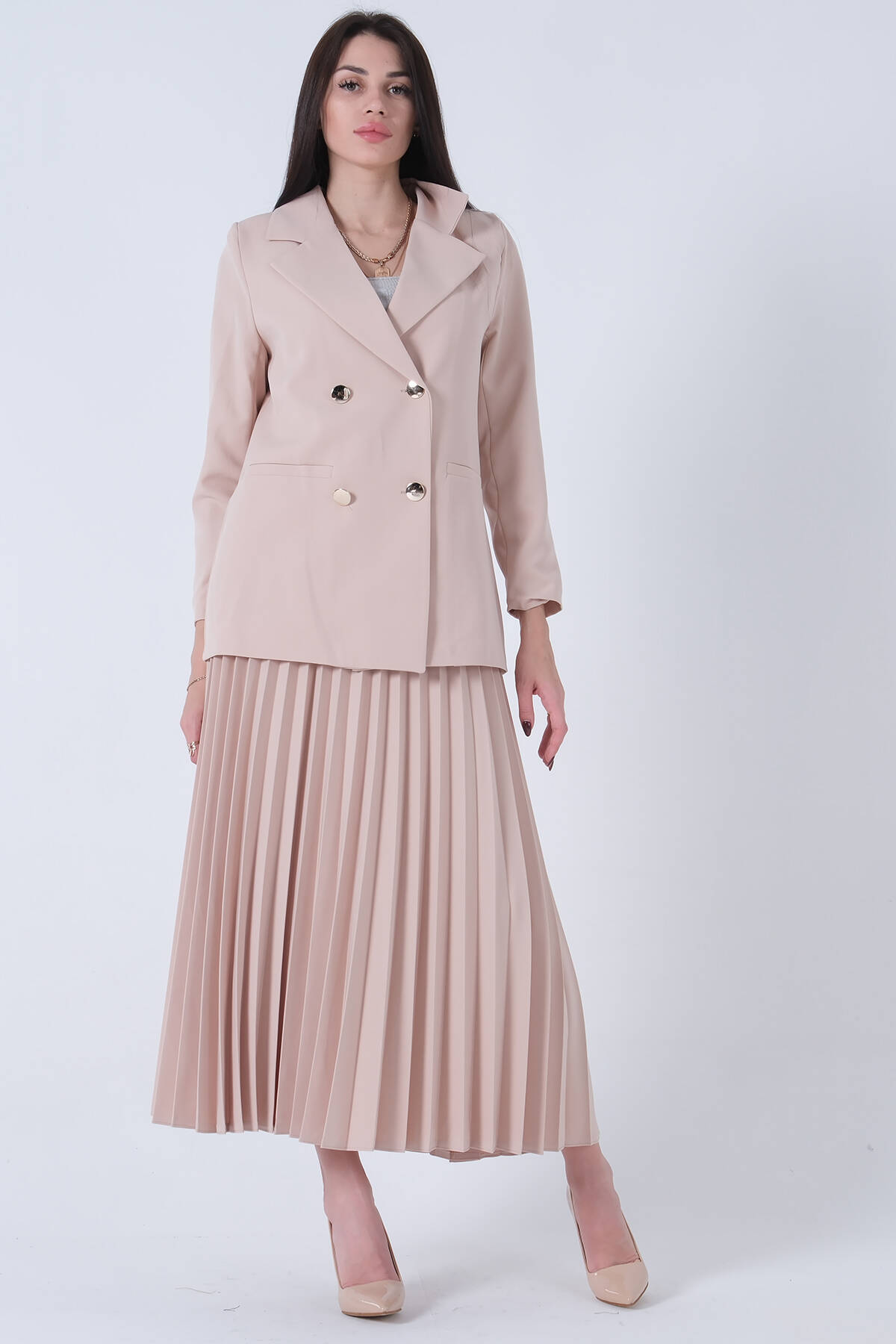 Bej Kol Fermuar Detaylı Cep Görünüm Ceket Etekli Takım 44510857.55