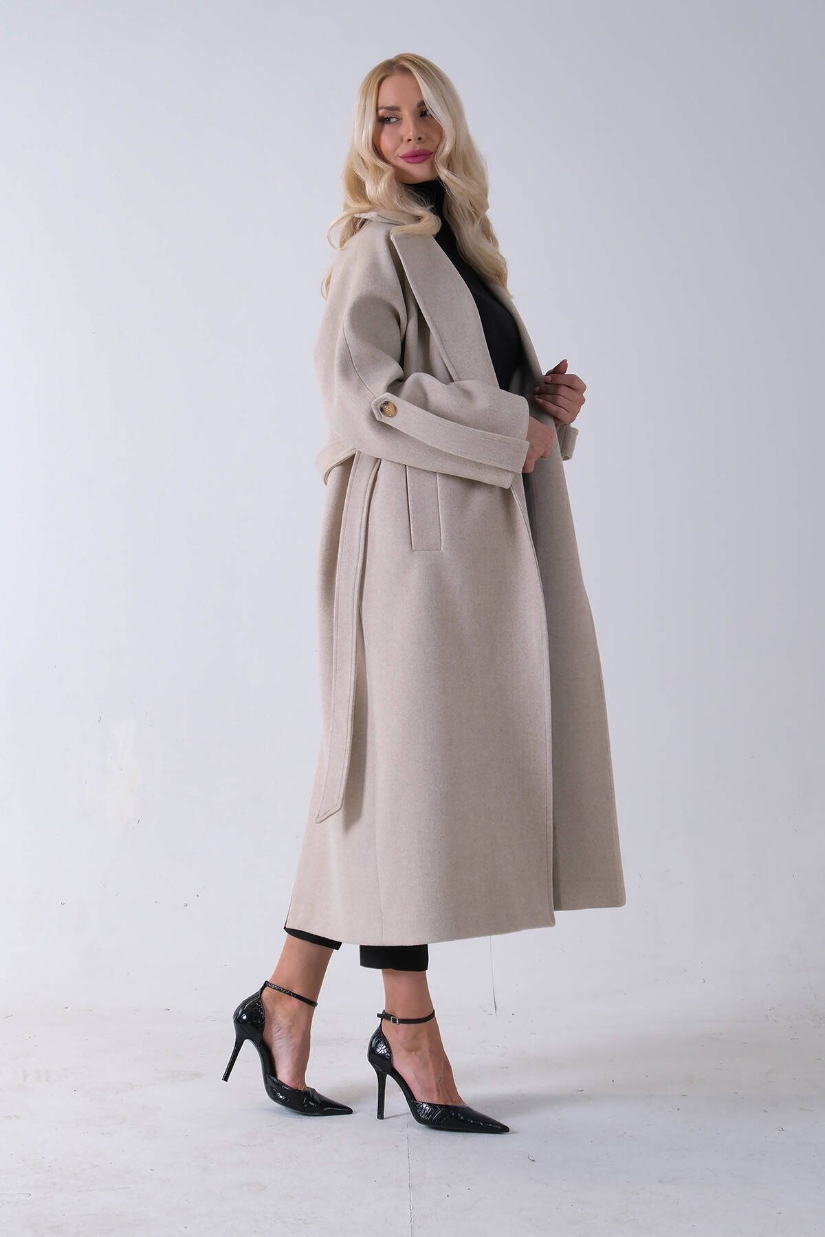 Taş Önden Düğmeli Oversize Örme Kaşe Kaban 0108068.50