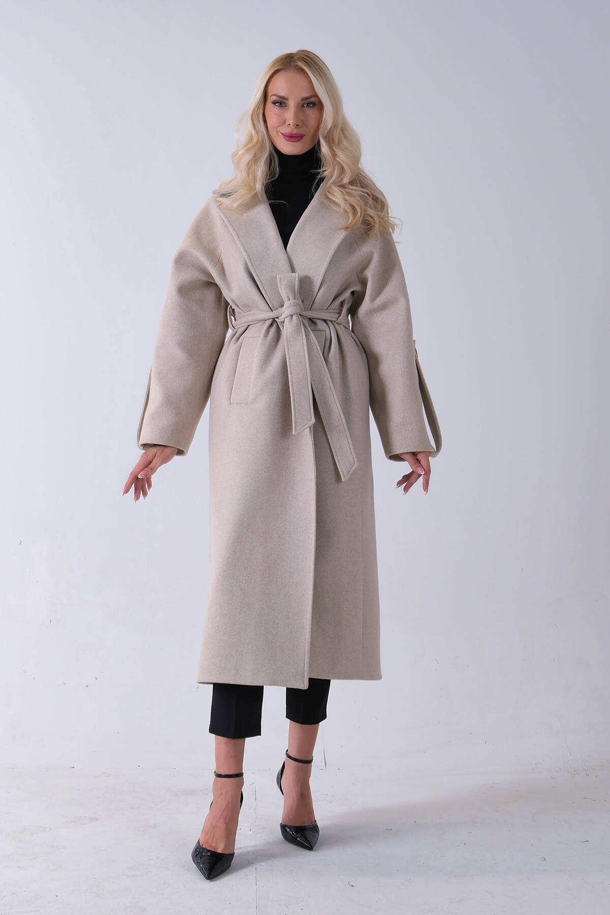 Mürdüm Yaka 2 Düğme Kapamalı Yandan Cepli Kemerli Kaban 4578039.21