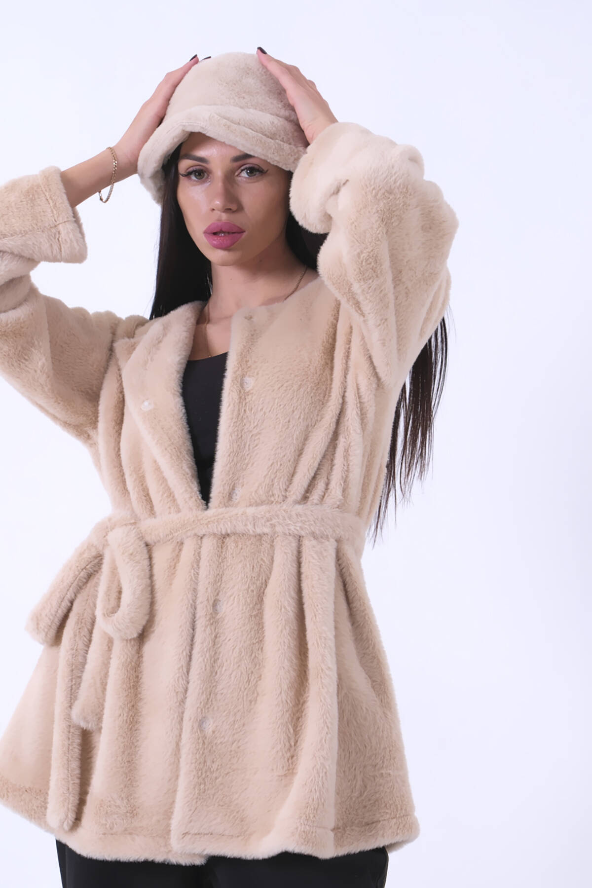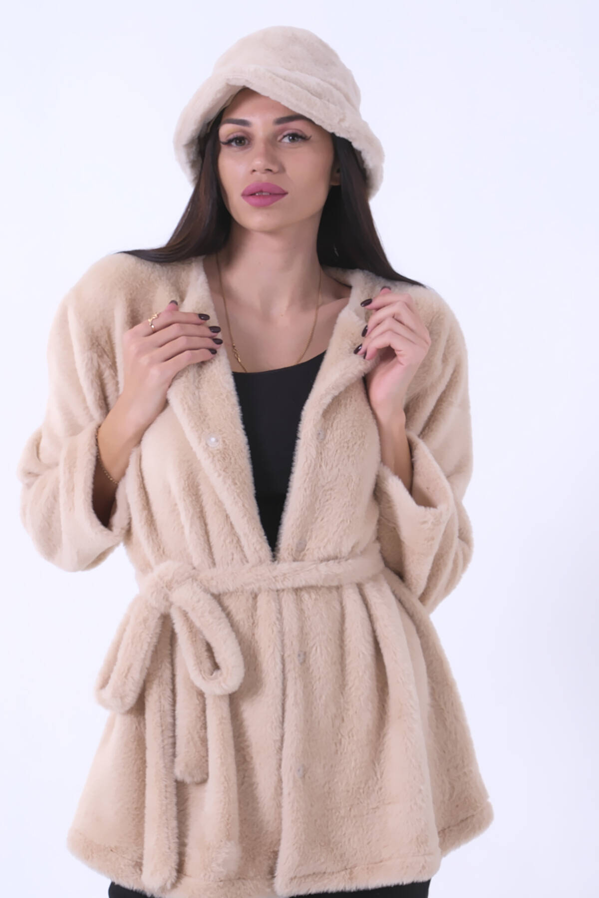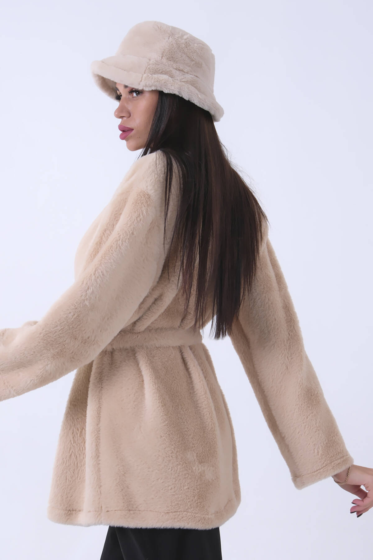Taş Önü Kapamalı Seyyar Kemerli Peluş Ceket 0105140.50