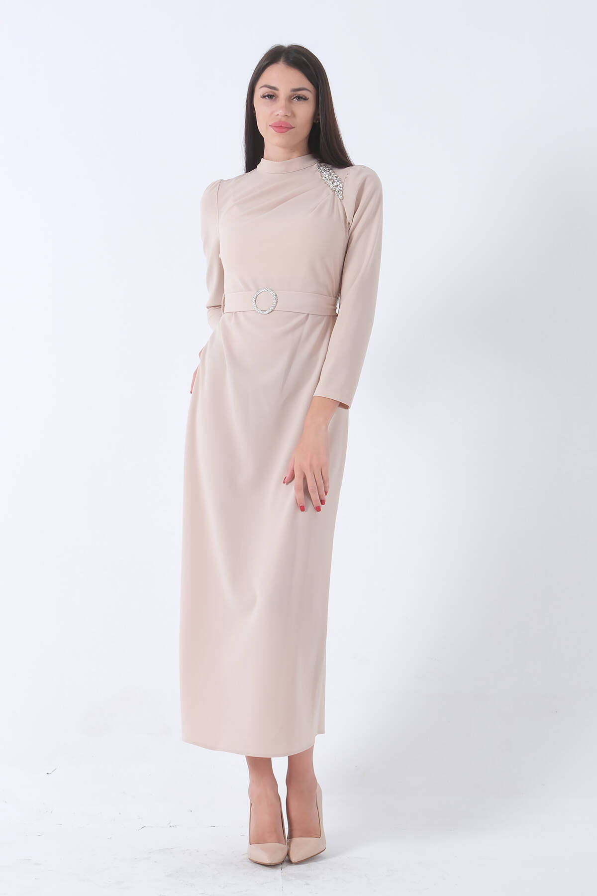 Taş Taş Aksesuarlı Belden Kuşaklı Elbise 4673001.50