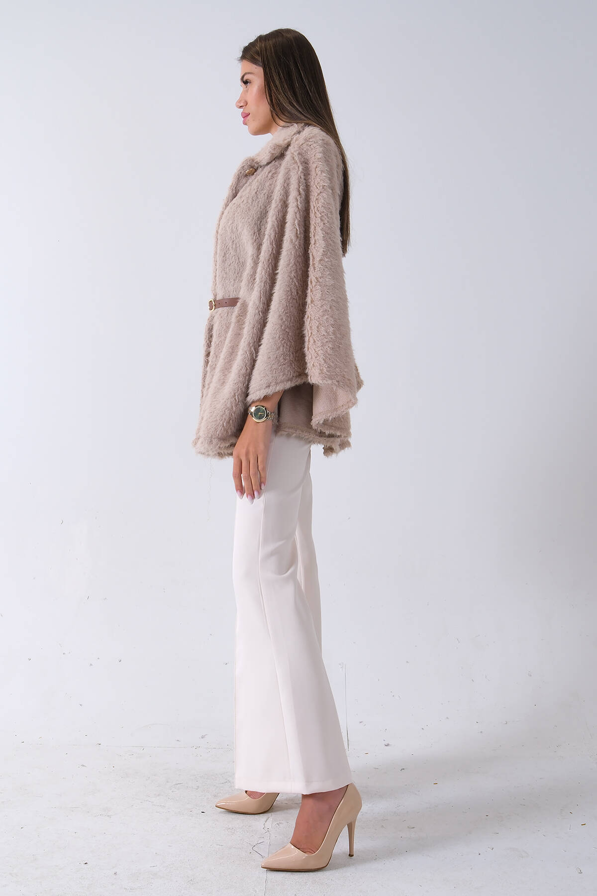 Bej Önü Kapamalı Seyyar Kemerli Peluş Ceket 0105140.55