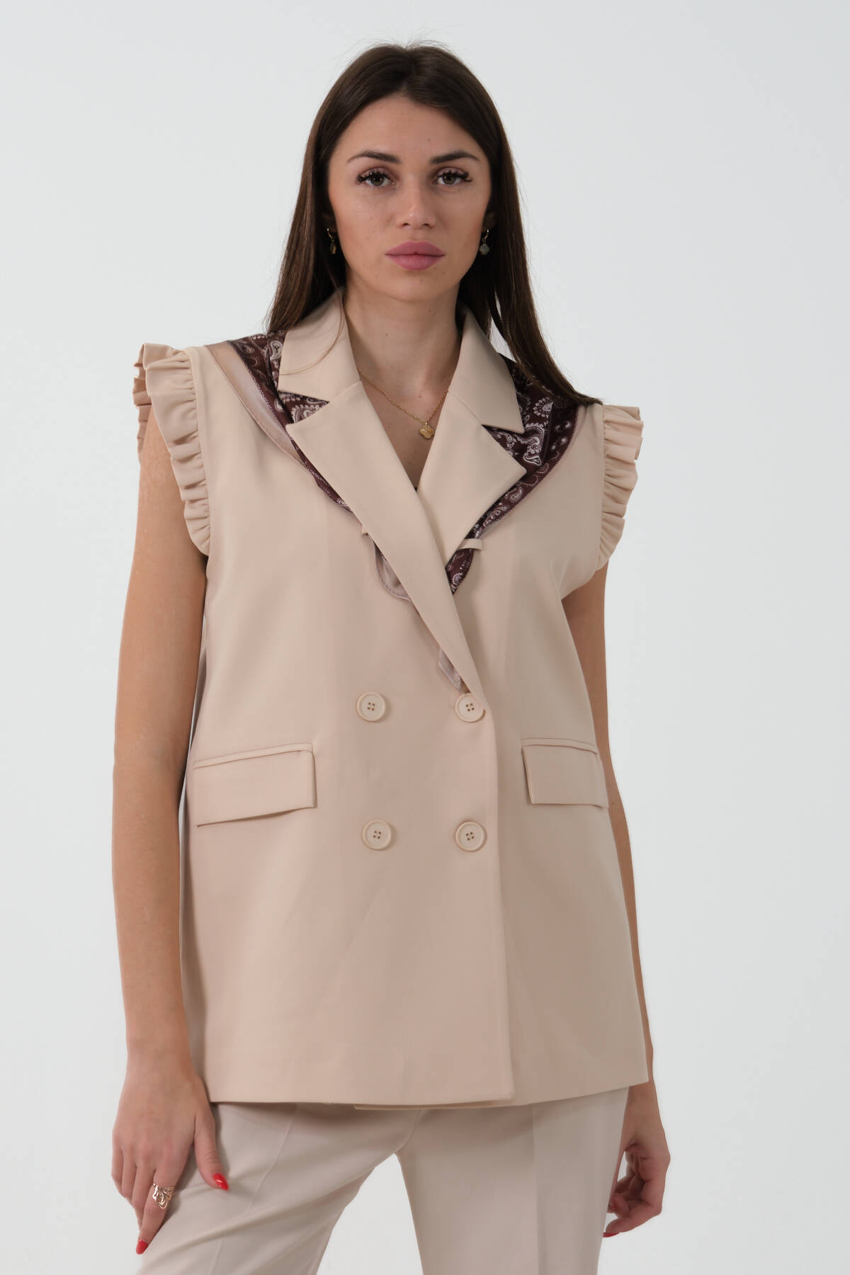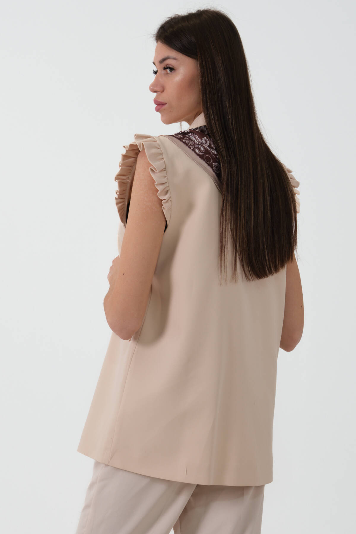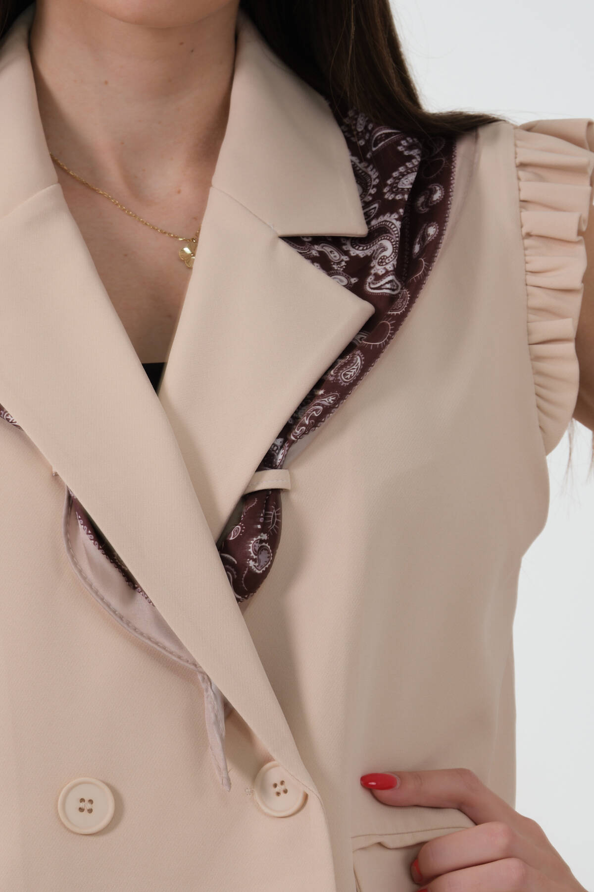 Taş Yaka Fularlı Cep Kapaklı Yelek 9401090.50
