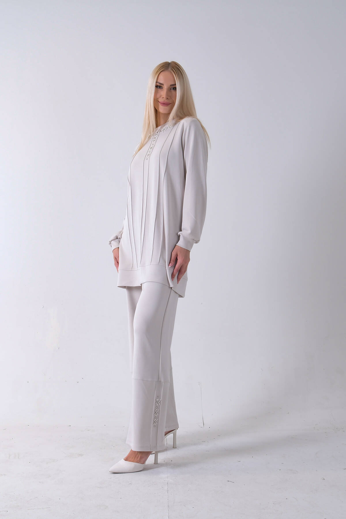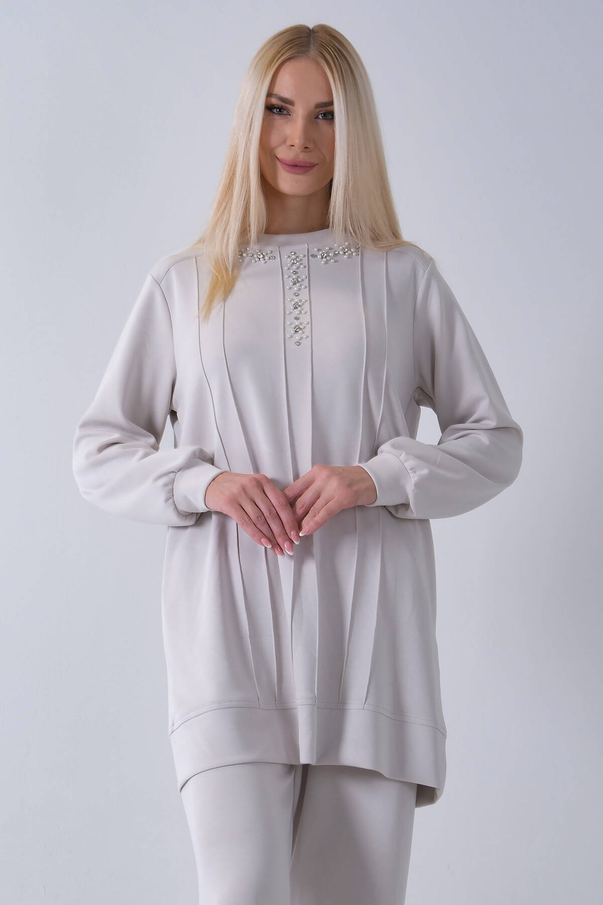 Taş Yaka ve Pantolon Paçası Taş Detaylı Tunikli Takım 4703048.50