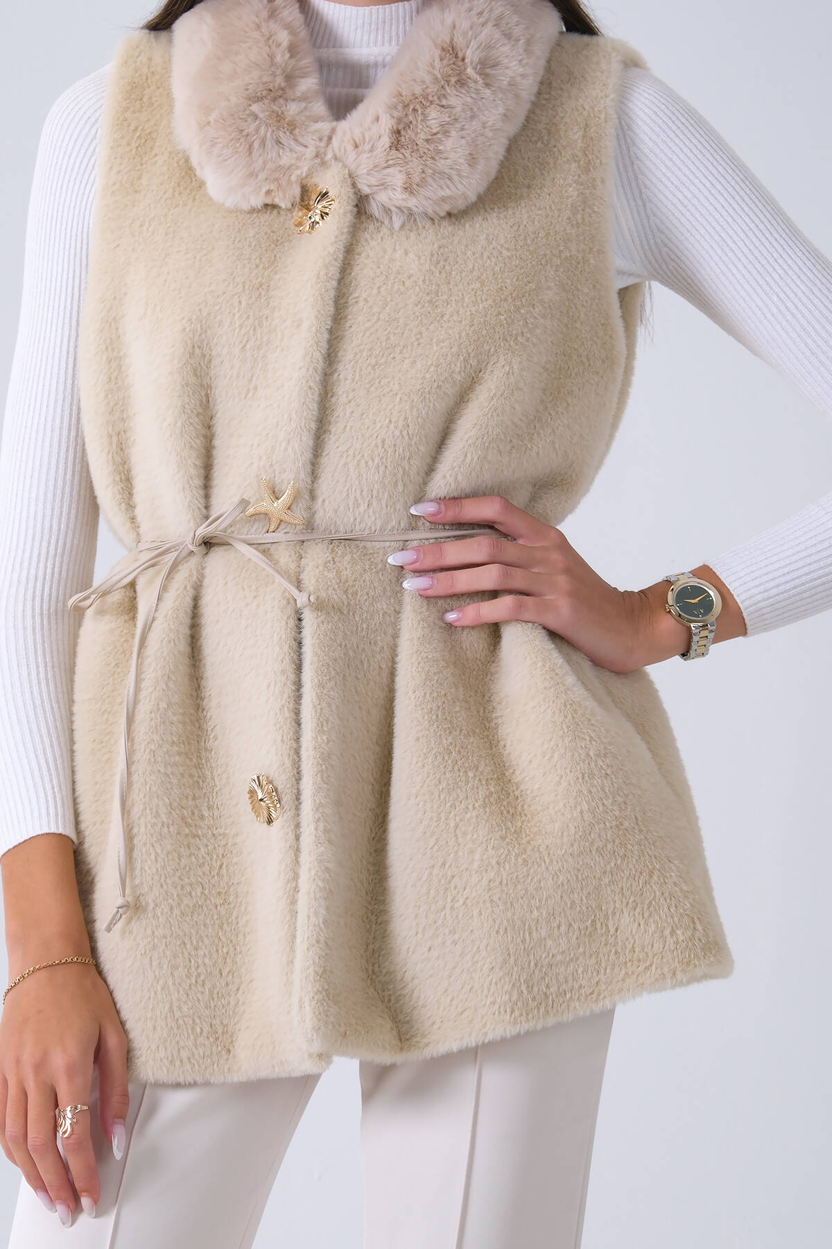 Taş Yakası Peluşlu Tek Düğme Kapamalı Yelek 4579035.50