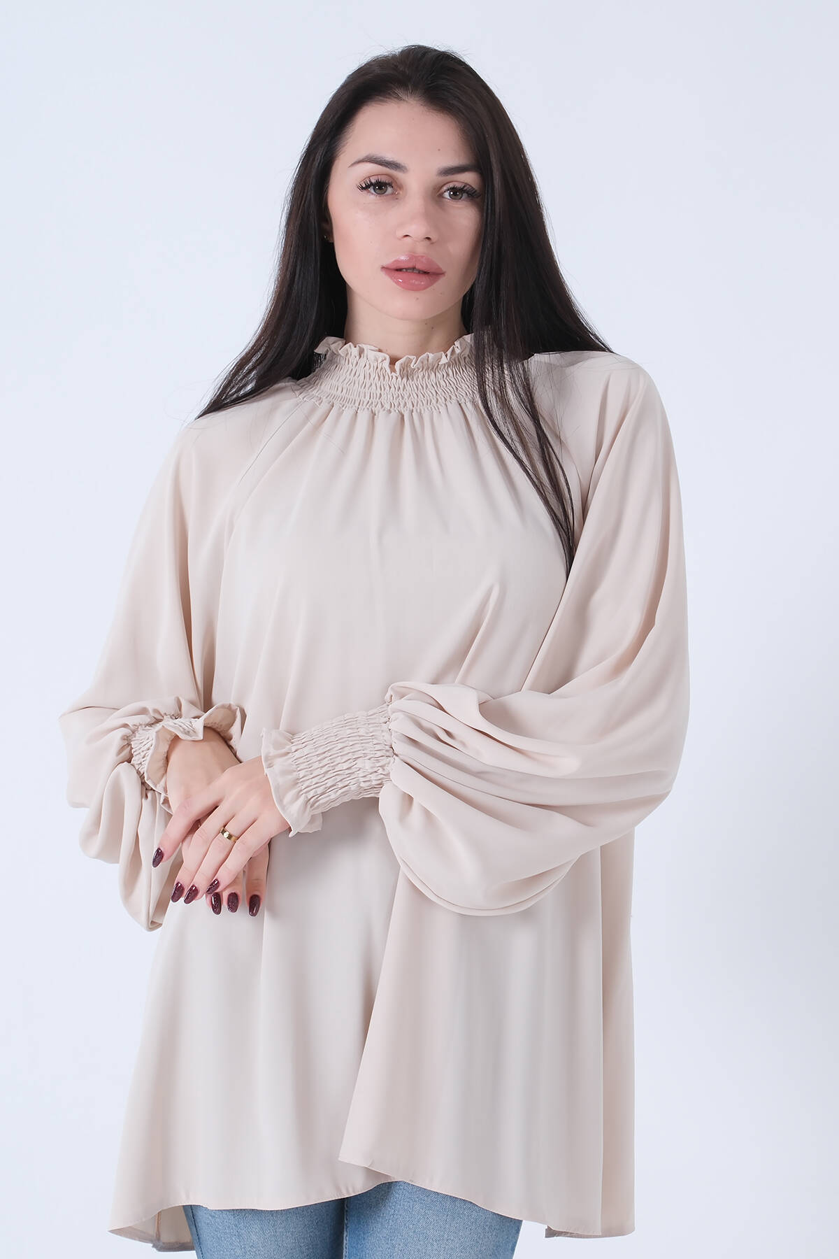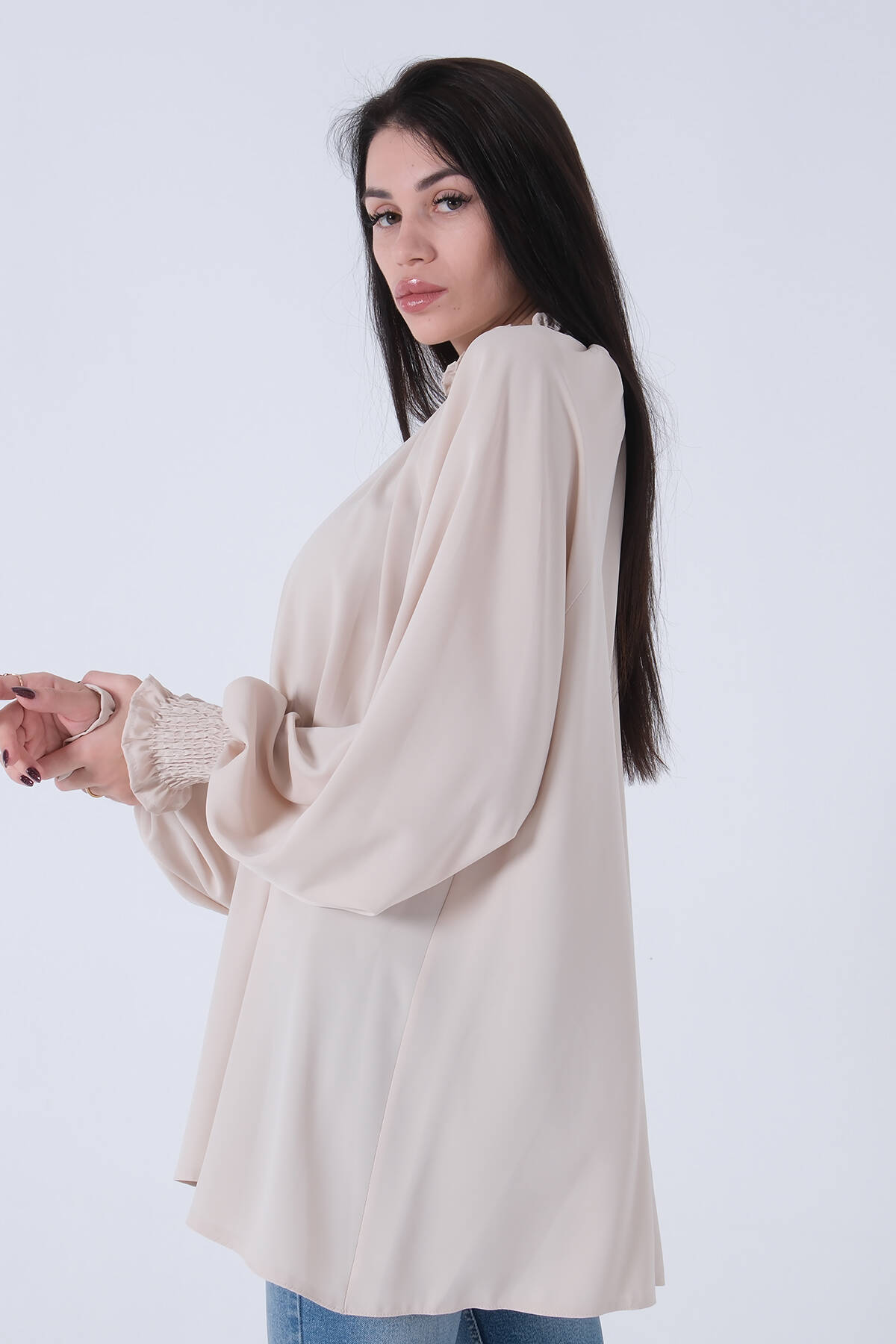 Taş Yakası ve Bilegi Fırfırlı Tunik 3972762.50