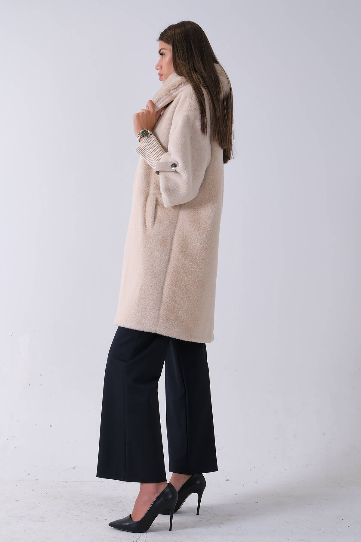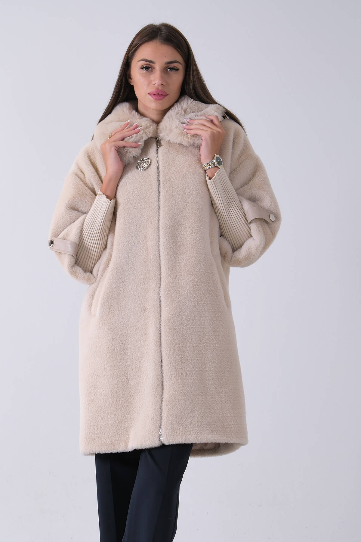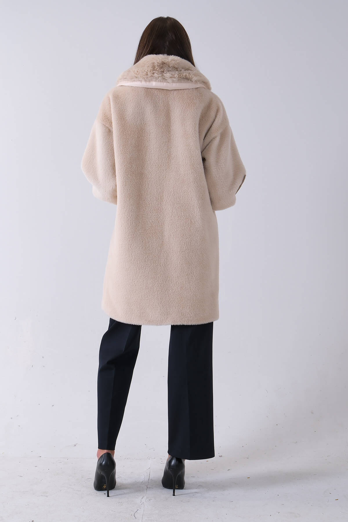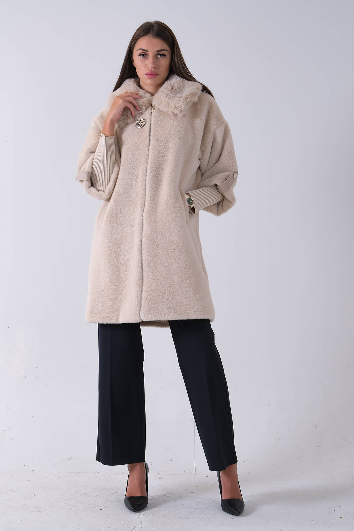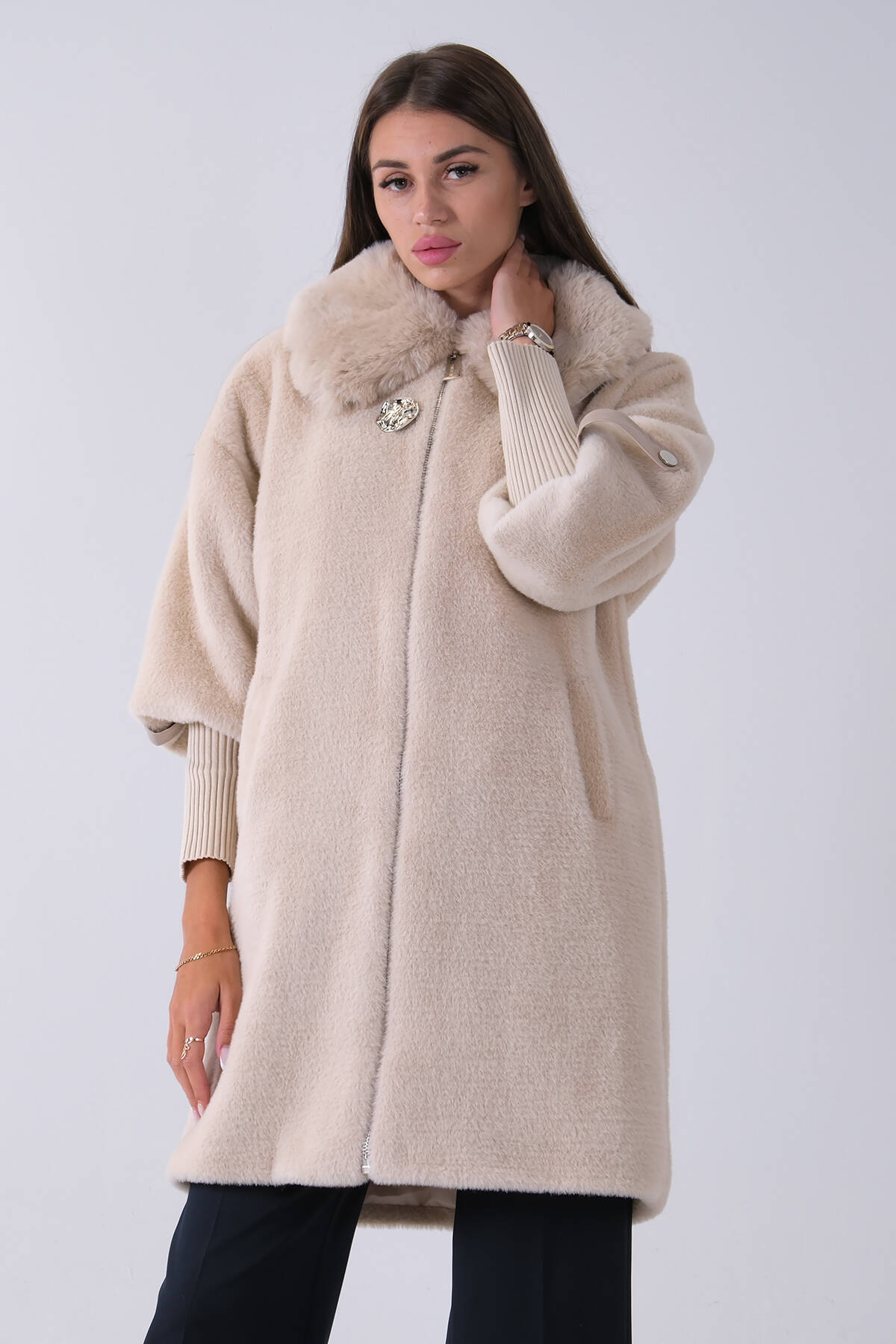 Taş Yandan Cepli Broş Detaylı Yaka Kürklü Peluş Kaban 44510847.50