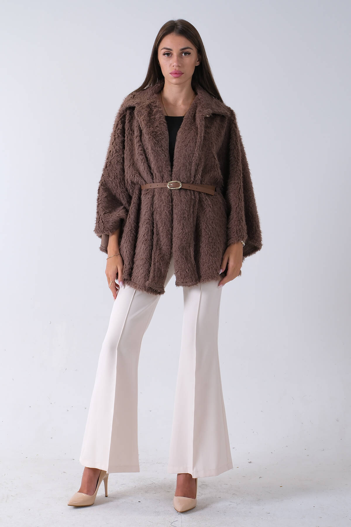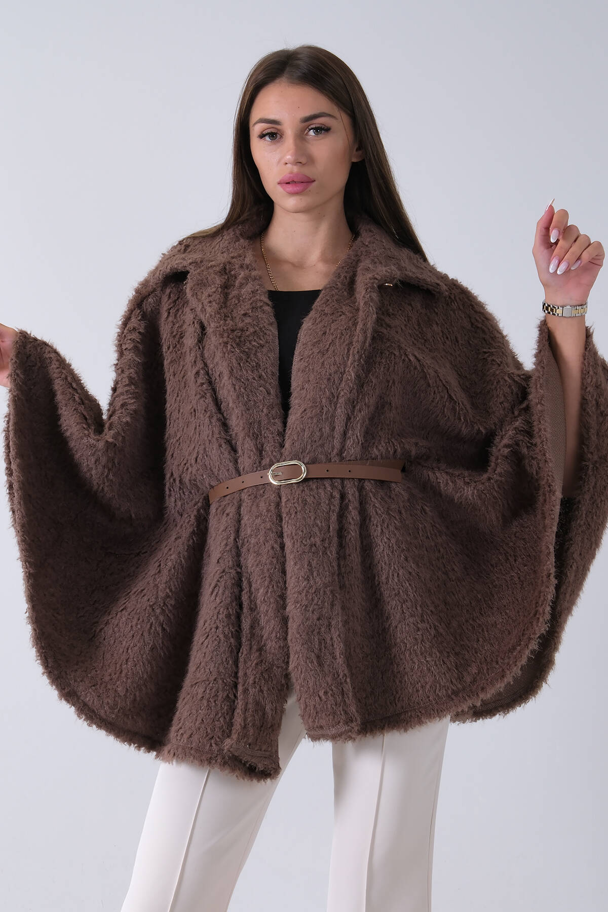 Kahve Yakalı Kendinden Pelerinli Kemerli Deri Ceket 5309366.05