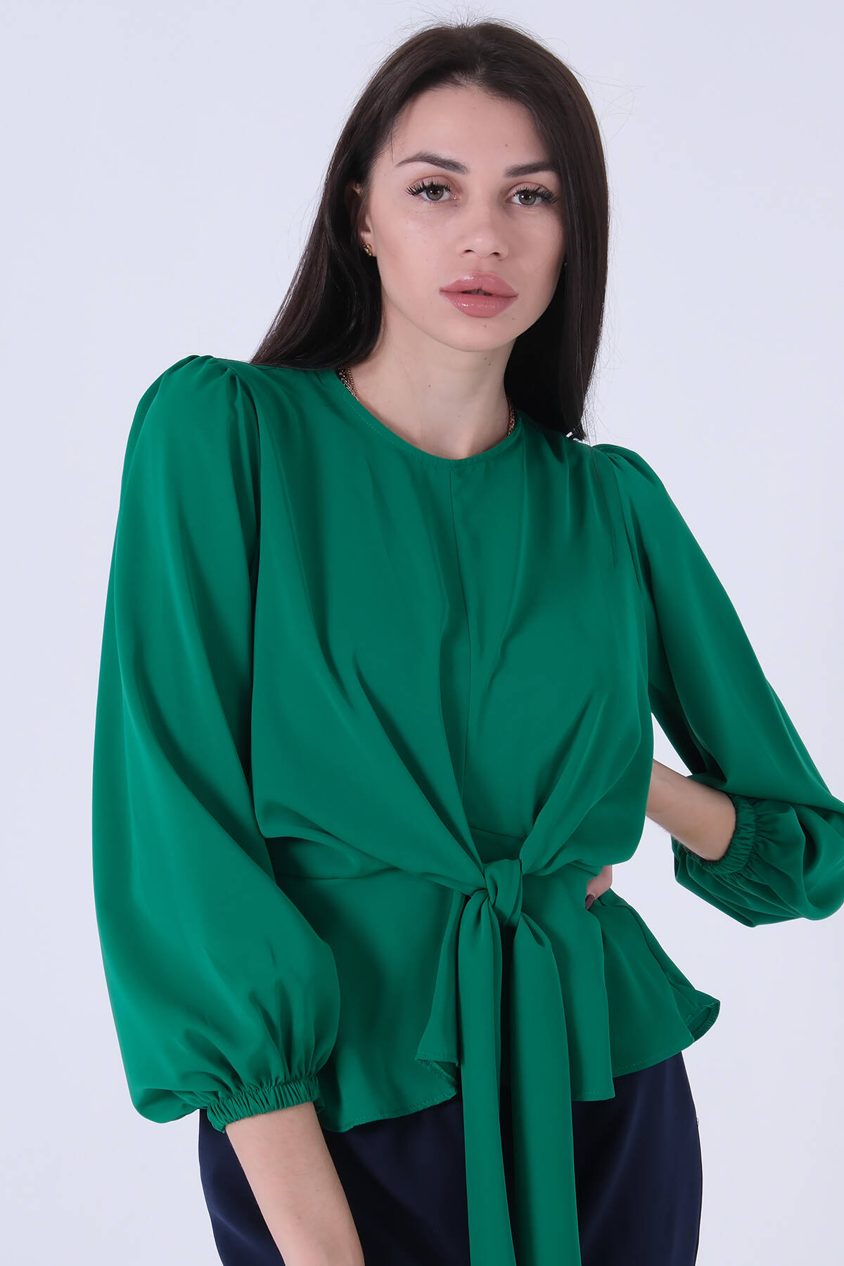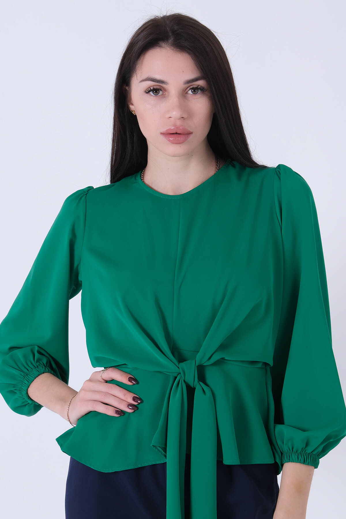 Yeşil Beli Bağlama Detaylı Bluz 0806546.07