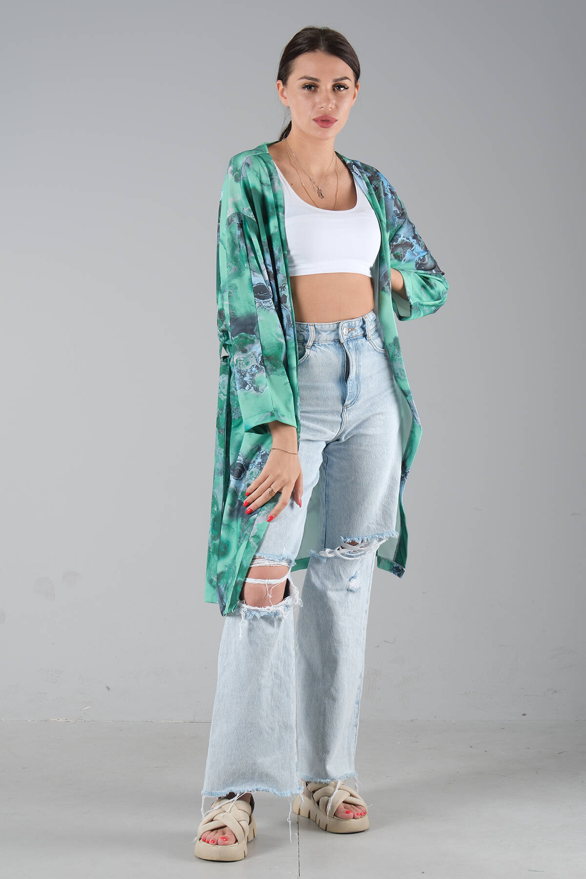 Yeşil Desenli Krep Kimono 0107129.07