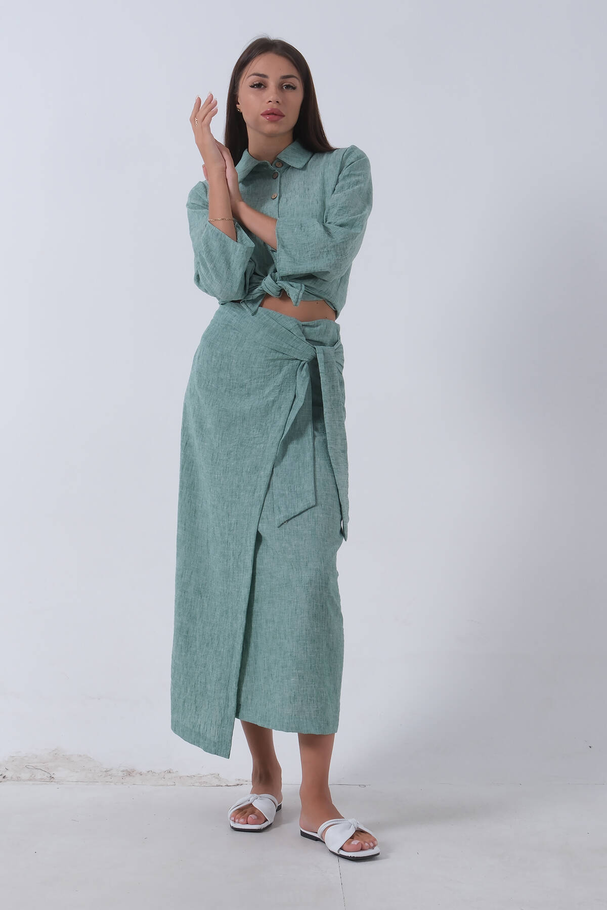 Yeşil Eteği Bağlamalı Gömlekli Takım 46310011.07