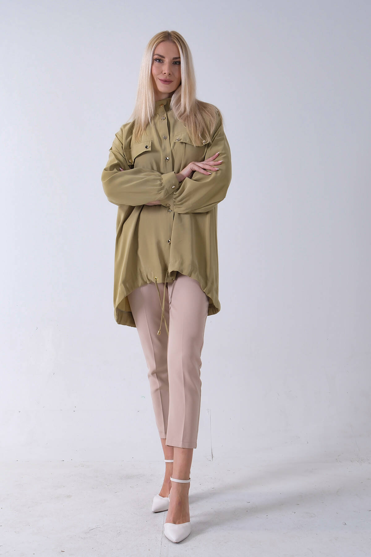 Yeşil Hakim Yaka Cep Kapak Detaylı Etek Ucu İpli Tunik 3972106.07