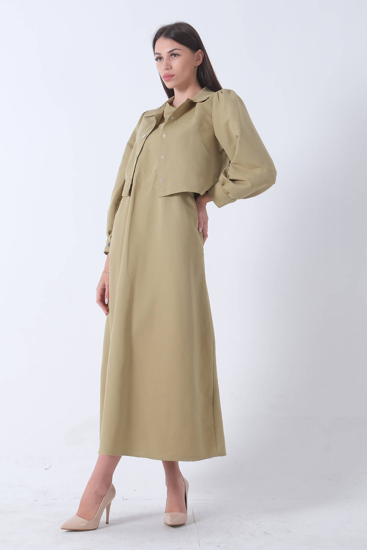 Yeşil Üzeri Ceket Detaylı Uzun Tesettür Elbise 4595049.07