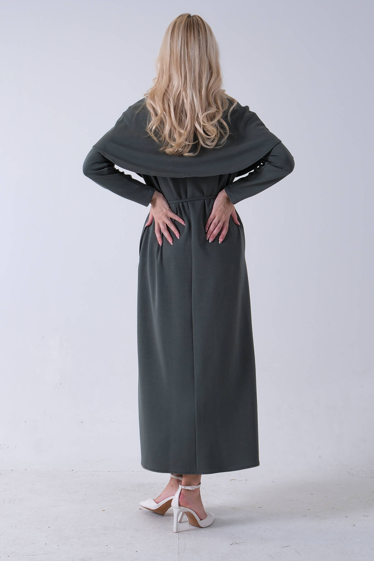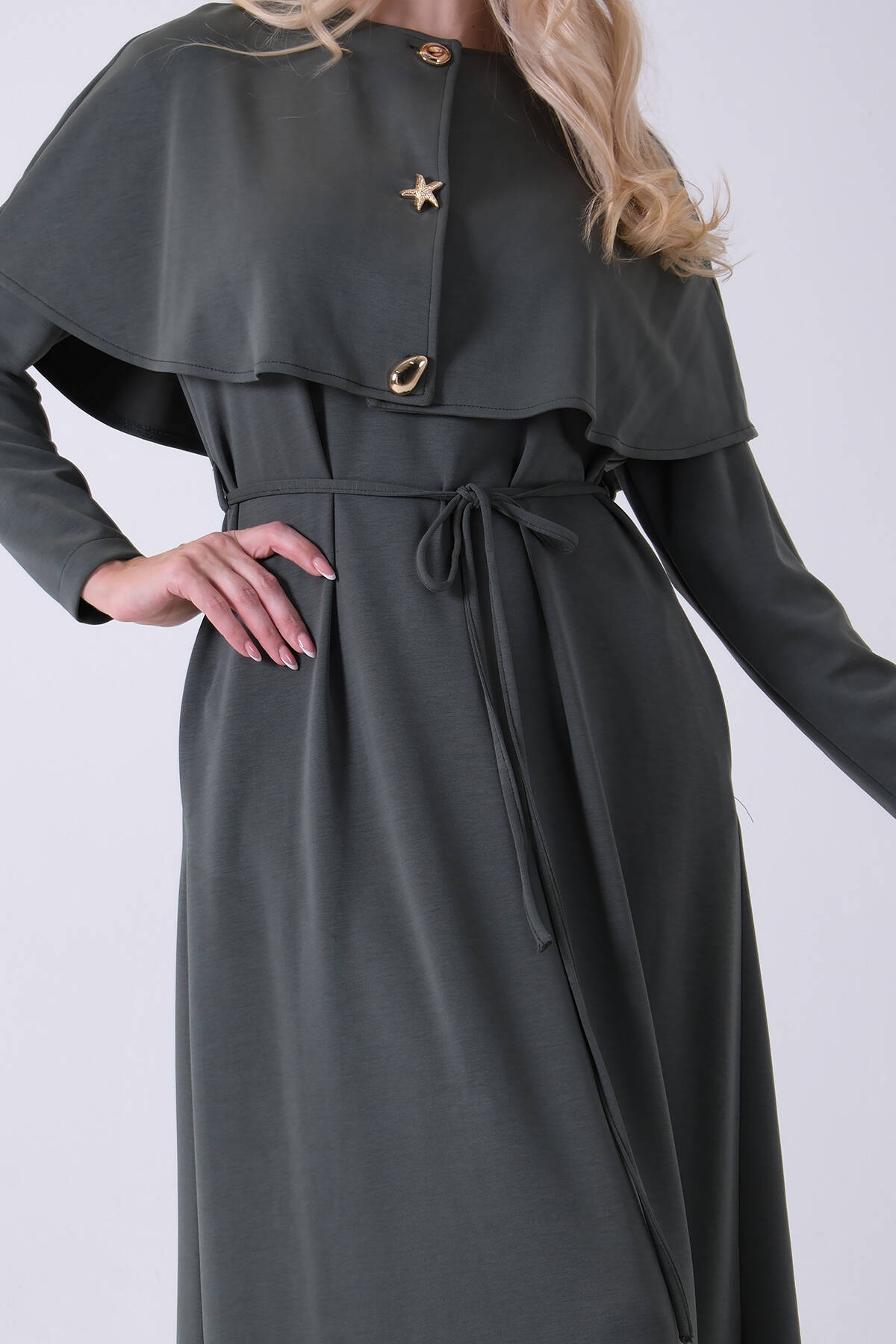 Haki Omuz Fiyonk Detaylı Kemerli Bisiklet Yaka Scuba Tesettür Elbise 4593456.23