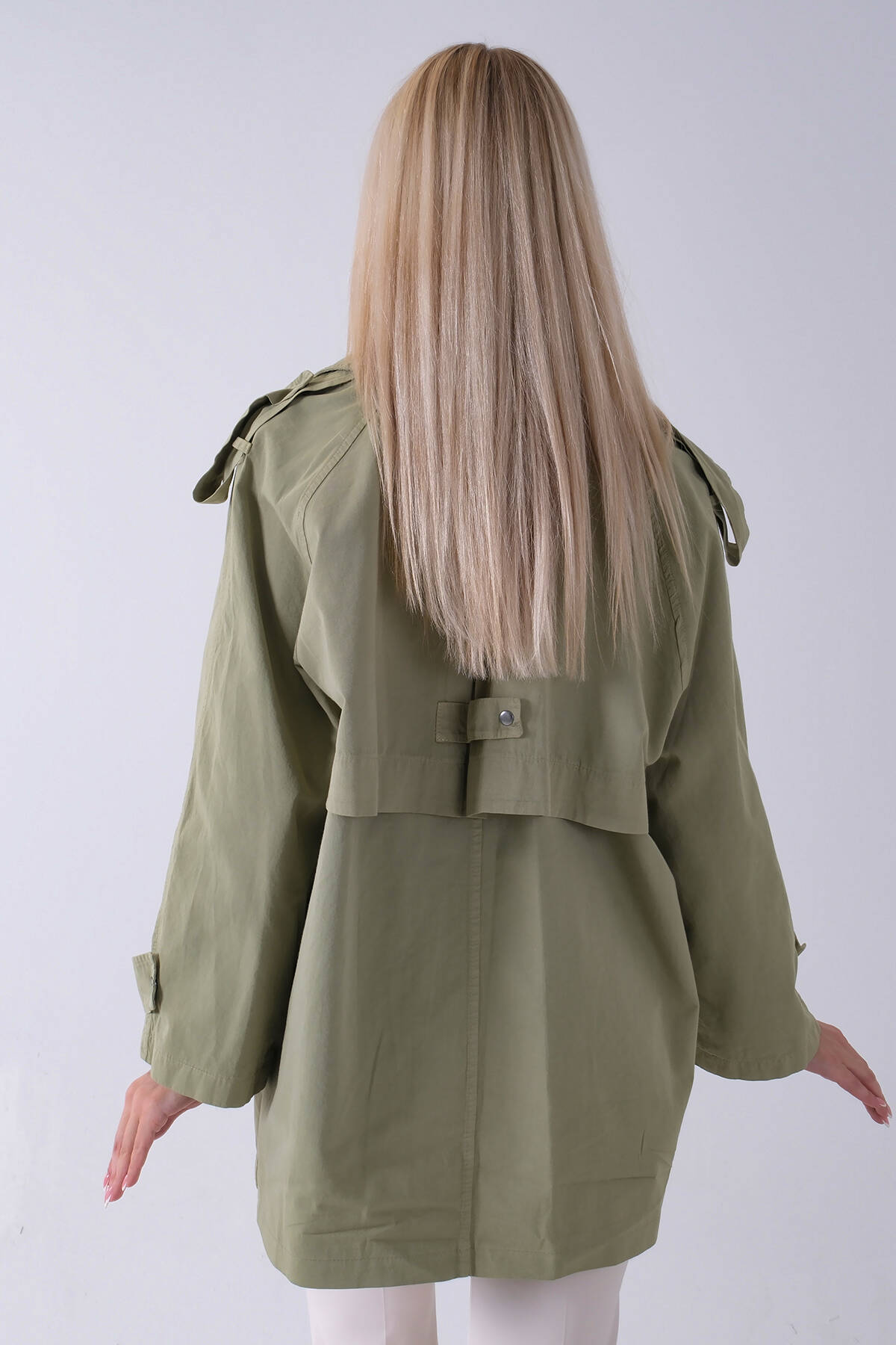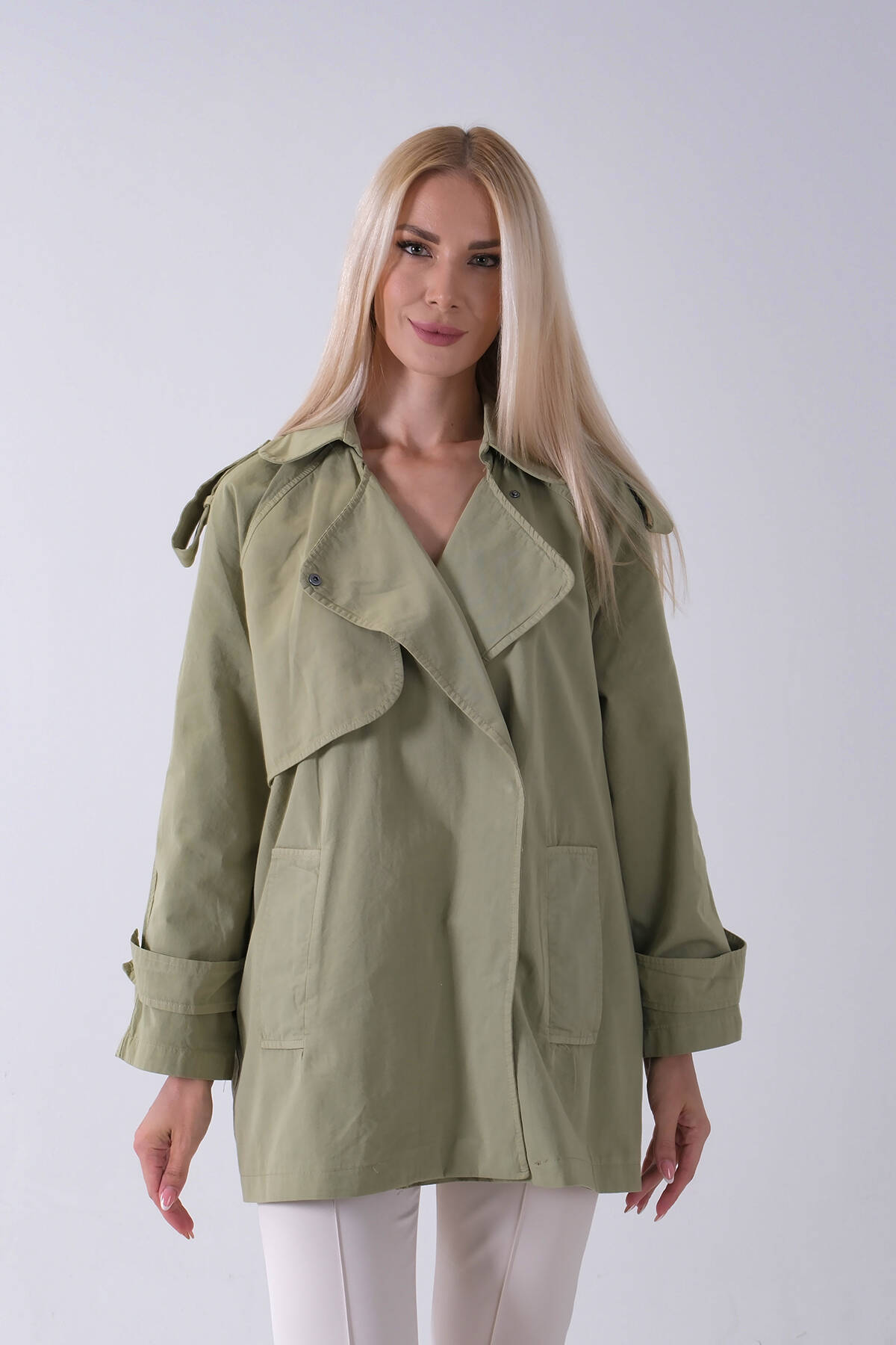 Yeşil Yandan Cepli Omuz Apolet Detaylı Trenç 422234.07
