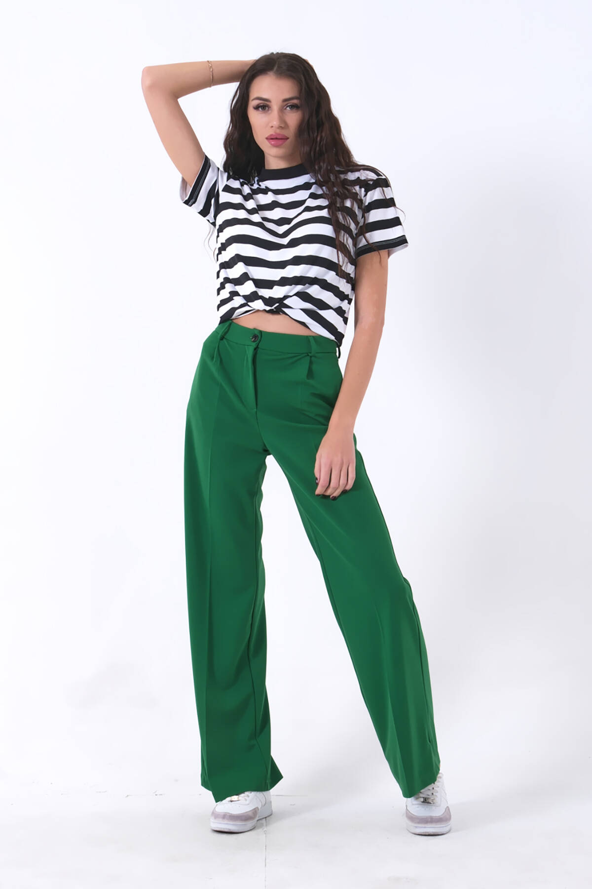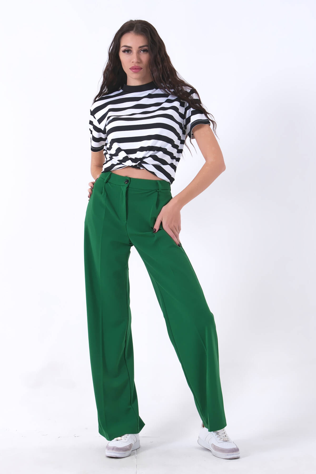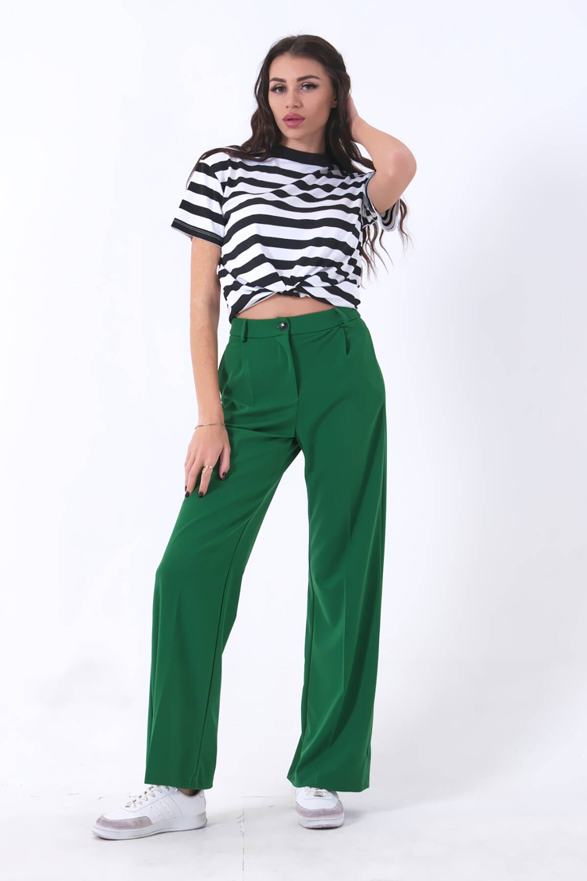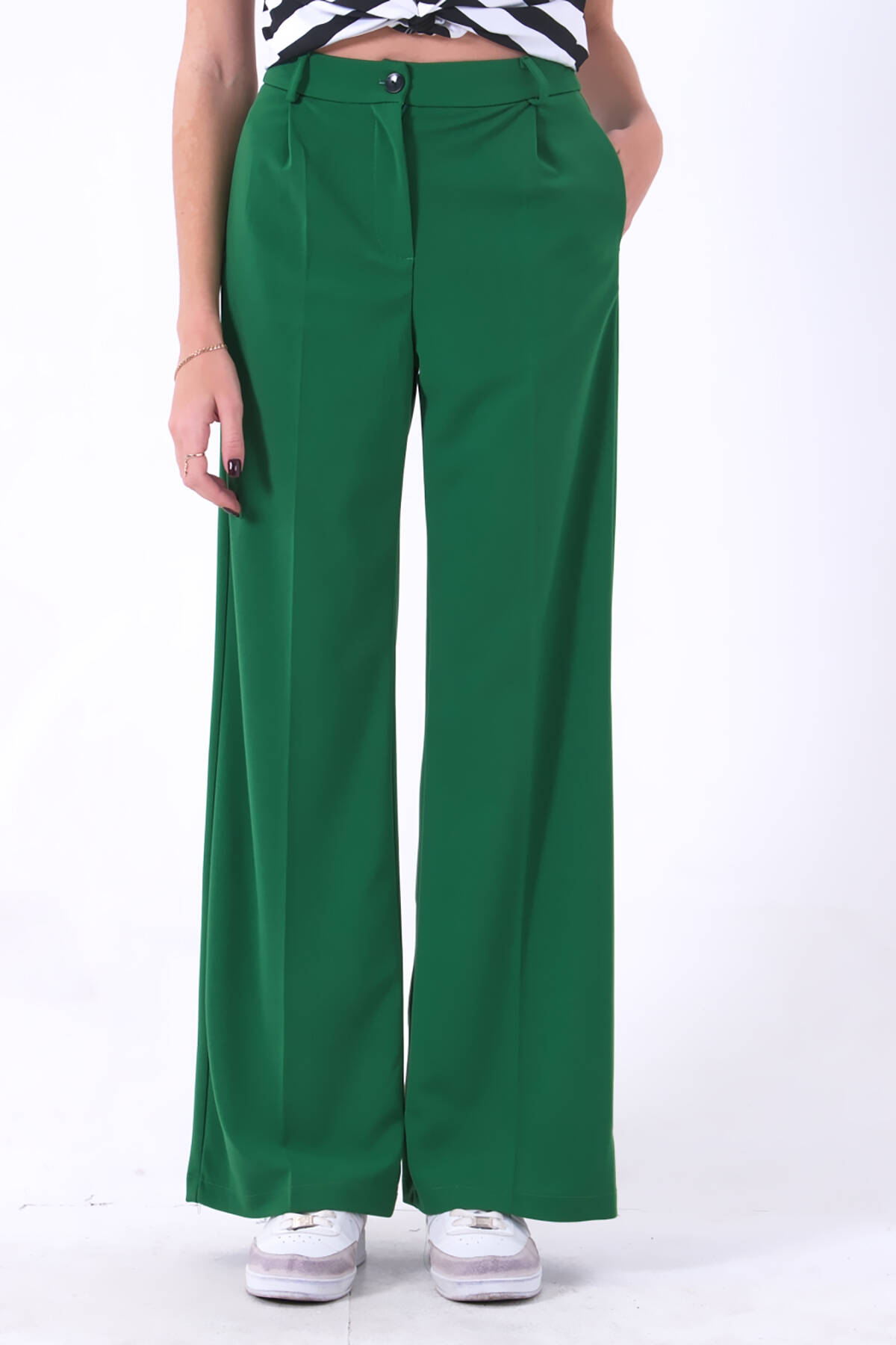 Modelin Ölçüleri : Boy: 1.80 cm / Göğüs: 88 cm / Bel: 69 cm /Basen : 94 cm Mankenin Üzerindeki Ürün 36/S Bedendir %100 Polyester Yüksek Bel Bol Paça Palazzo Pantolon Ürün Boyu : 108 cm Stüdyo Çekimlerinde Renkler Işık Farklılıgından Dolayı Değişiklik Gösterebilir