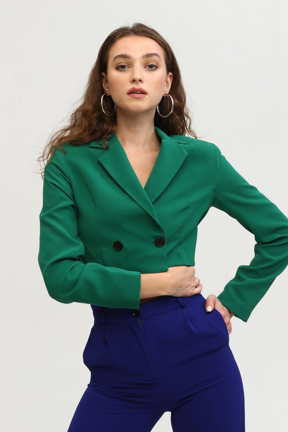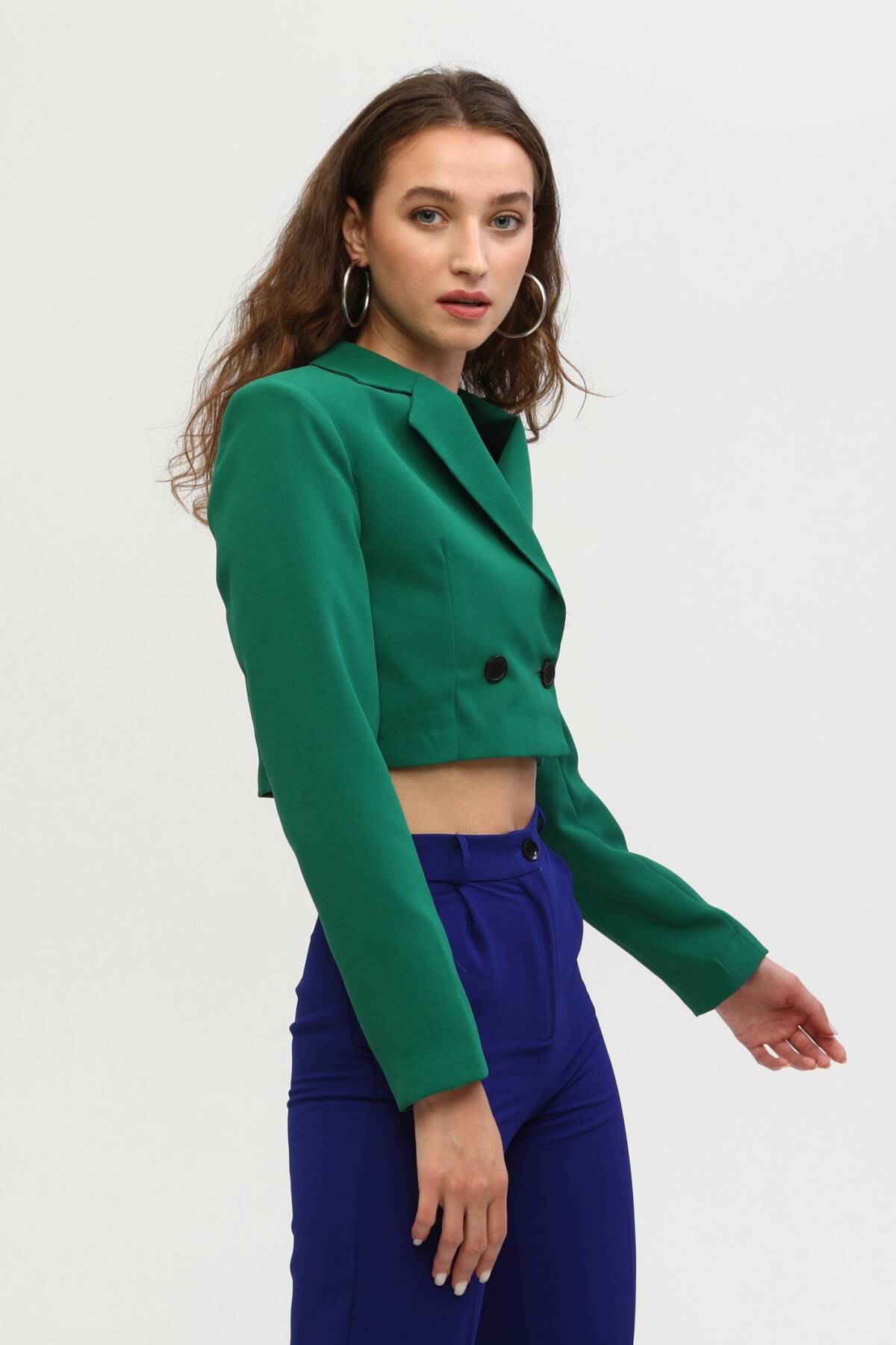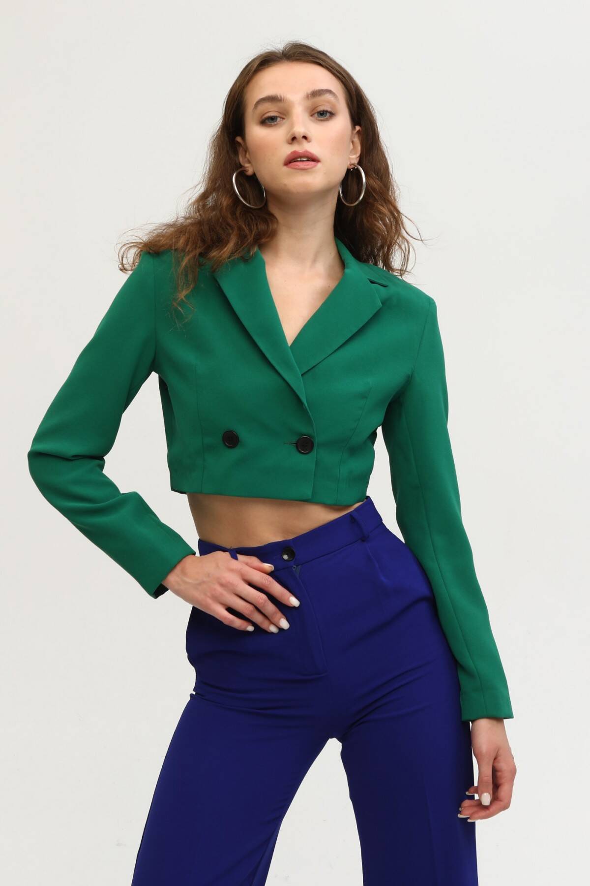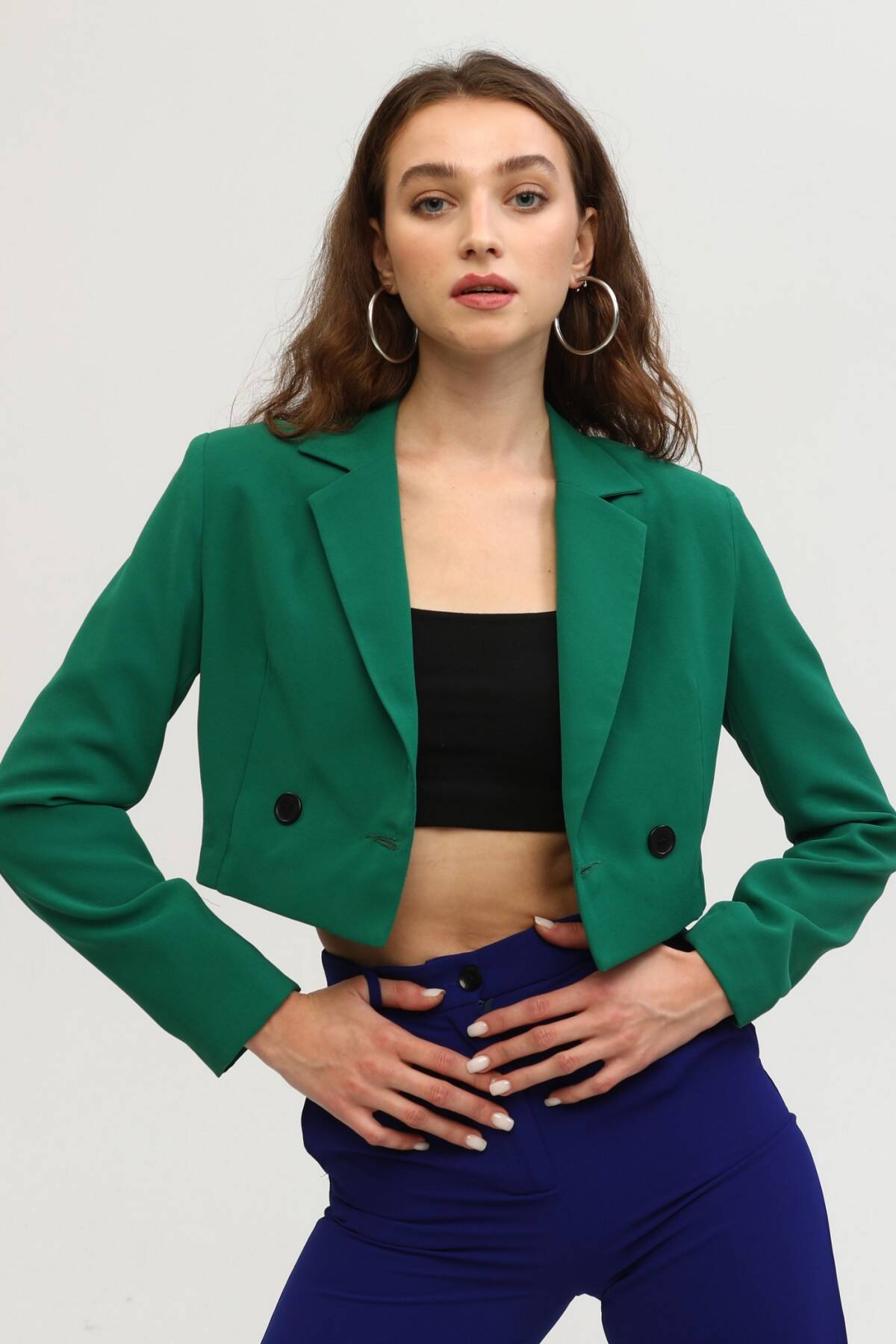 Modelin Ölçüleri : Boy: 1.80 cm / Göğüs: 88 cm / Bel: 69 cm /Basen : 94 cm Mankenin Üzerindeki Ürün 36/S Bedendir %100 Polyester Uzun Kol Kruvaze Yaka Vatkalı Astarlı Krep Kumaş Crop Blazer Ceket Ürün Boyu : 41 cm Stüdyo Çekimlerinde Renkler Işık Farklılıgından Dolayı Değişiklik Gösterebilir
