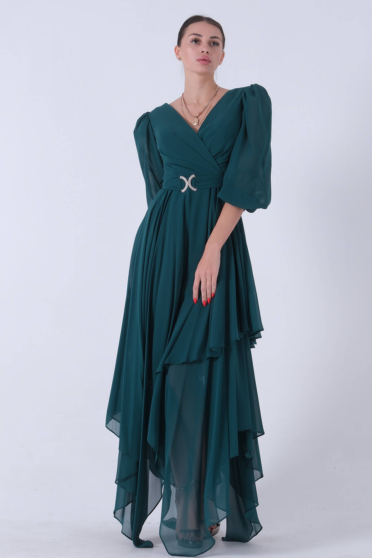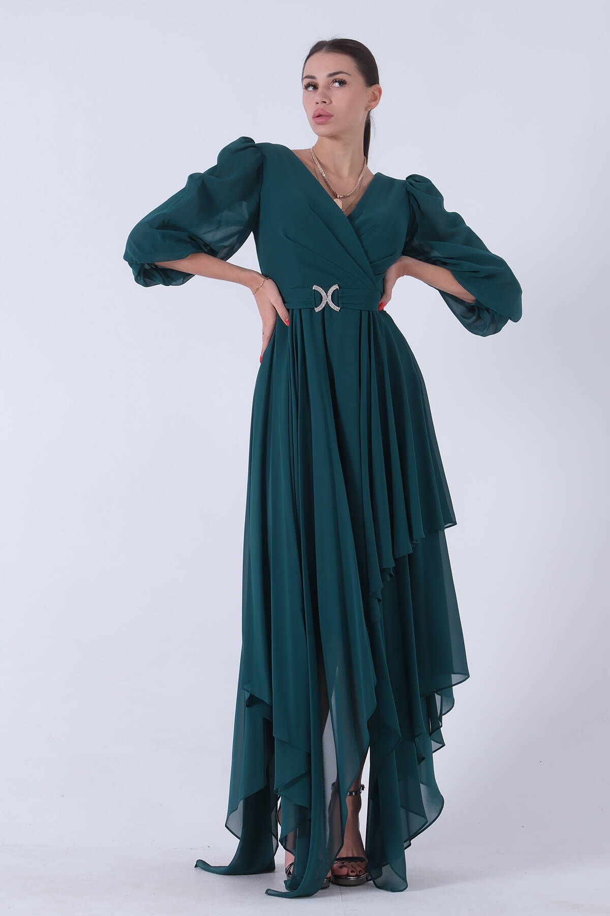 Modelin Ölçüleri : Boy: 1.80 cm / Göğüs: 88 cm / Bel: 69 cm /Basen : 94 cm Mankenin Üzerindeki Ürün 38/M Bedendir %100 Polyester Uzun Balon Kol Kruvaze Yaka Seyyar Kemerli Eteği Asimetrik Kesim Şifon Abiye Elbise Ürün Boyu : En uzun :178 En kısa : 105 cm Stüdyo Çekimlerinde Renkler Işık Farklılıgından Dolayı Değişiklik Gösterebilir (Dikkat! Ürünlerimiz güvenlik bandı ile gönderilmektedir . Güvenlik bandı olmayan ürünlerin iadesi kabul edilmeyecektir)