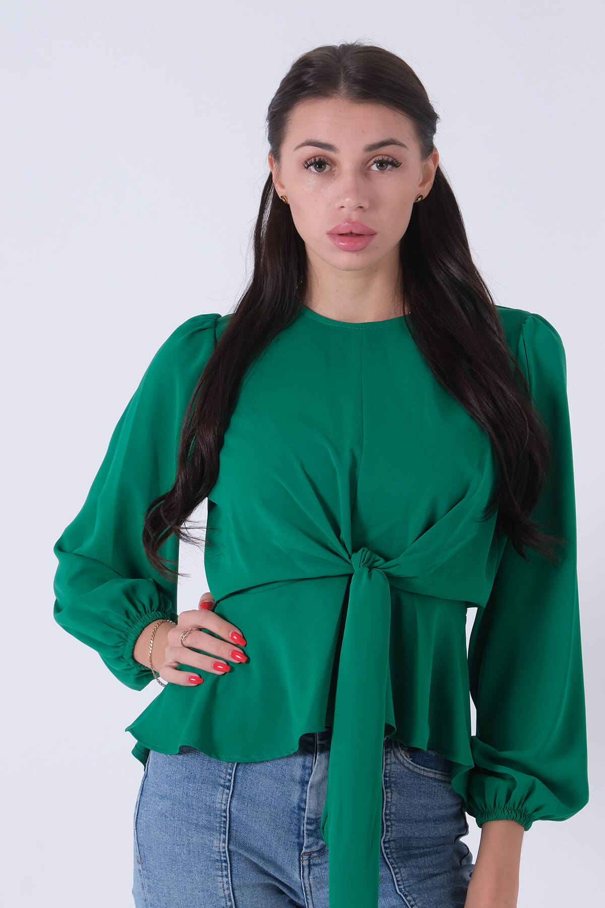 Uzun Kol Bileği Lastikli Bisiklet Yaka Beli Bağlama Detaylı Bluz