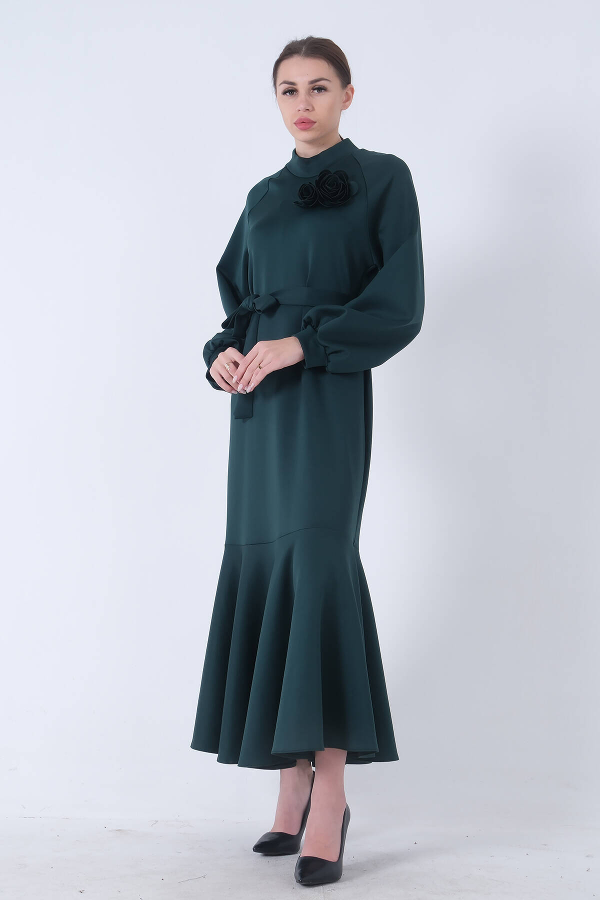 Zümrüt Bisiklet Yaka Belden Kuşaklı Elbise 4593266.123