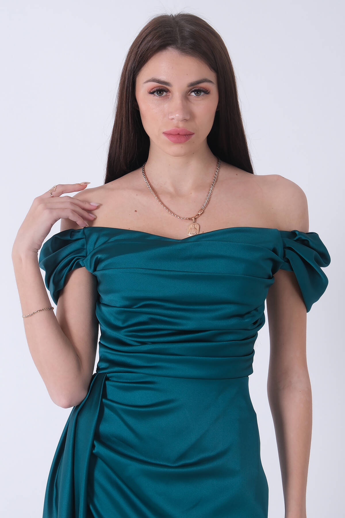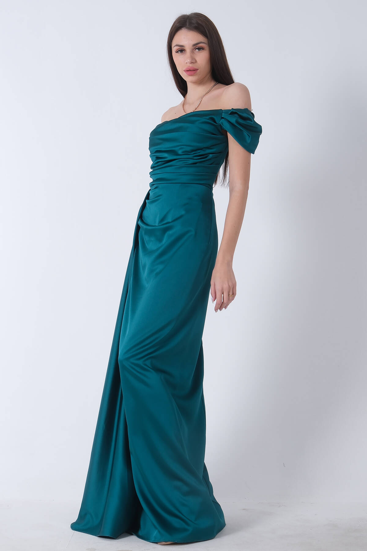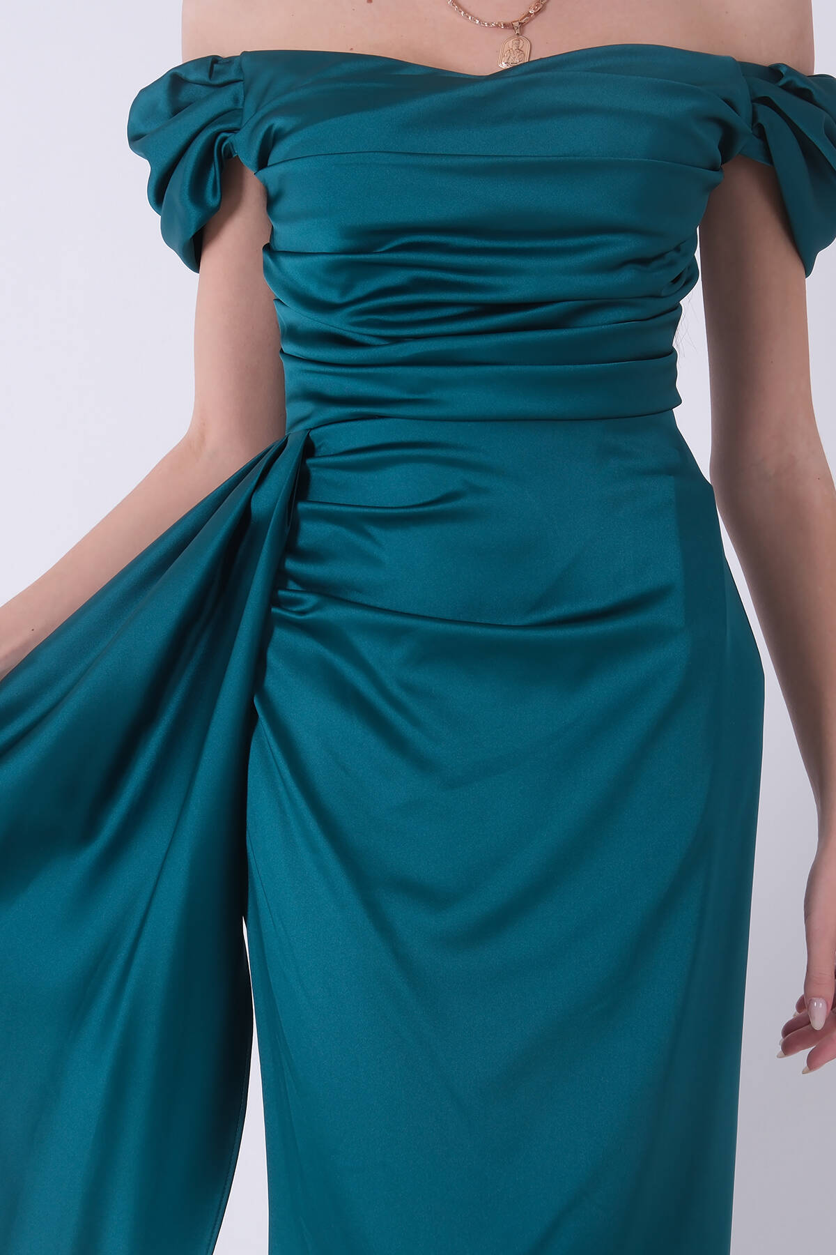 Zümrüt Drape Detaylı Saten Kumaş Abiye Elbise 9704858.123