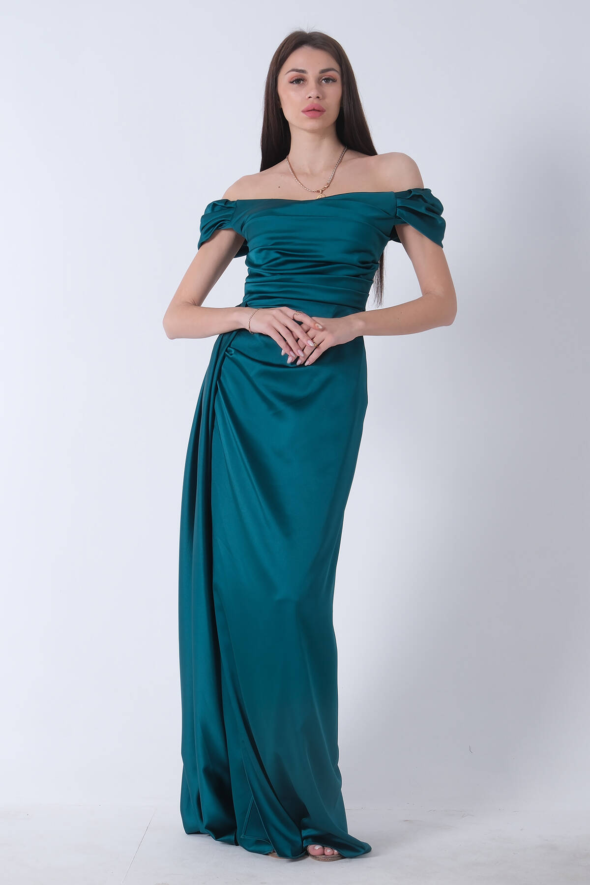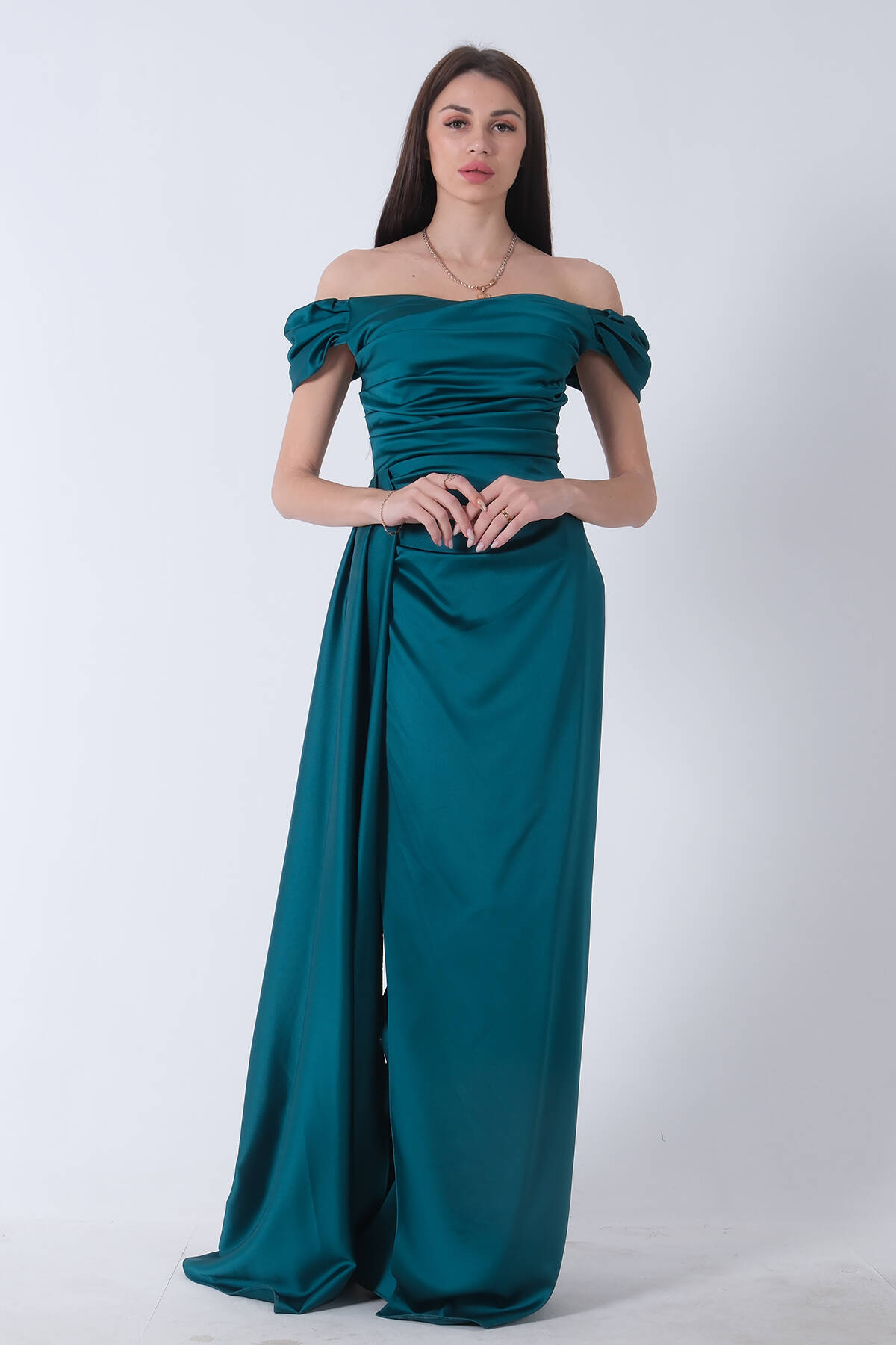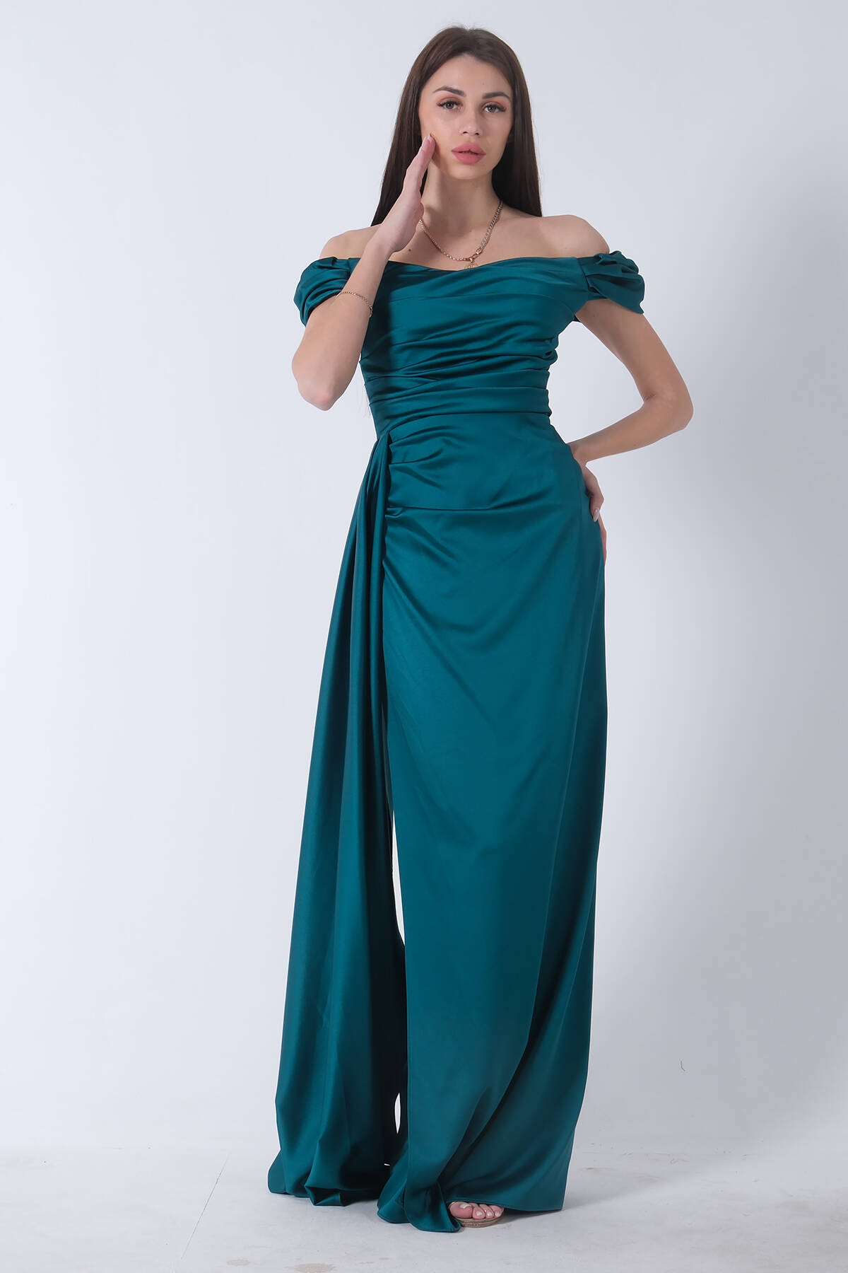 Zümrüt Drape Detaylı Saten Kumaş Abiye Elbise 9704858.123