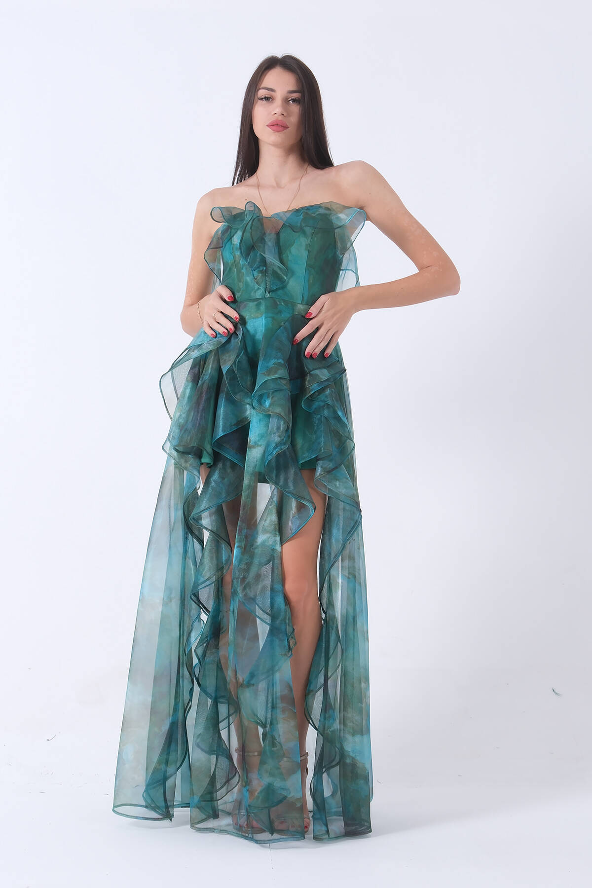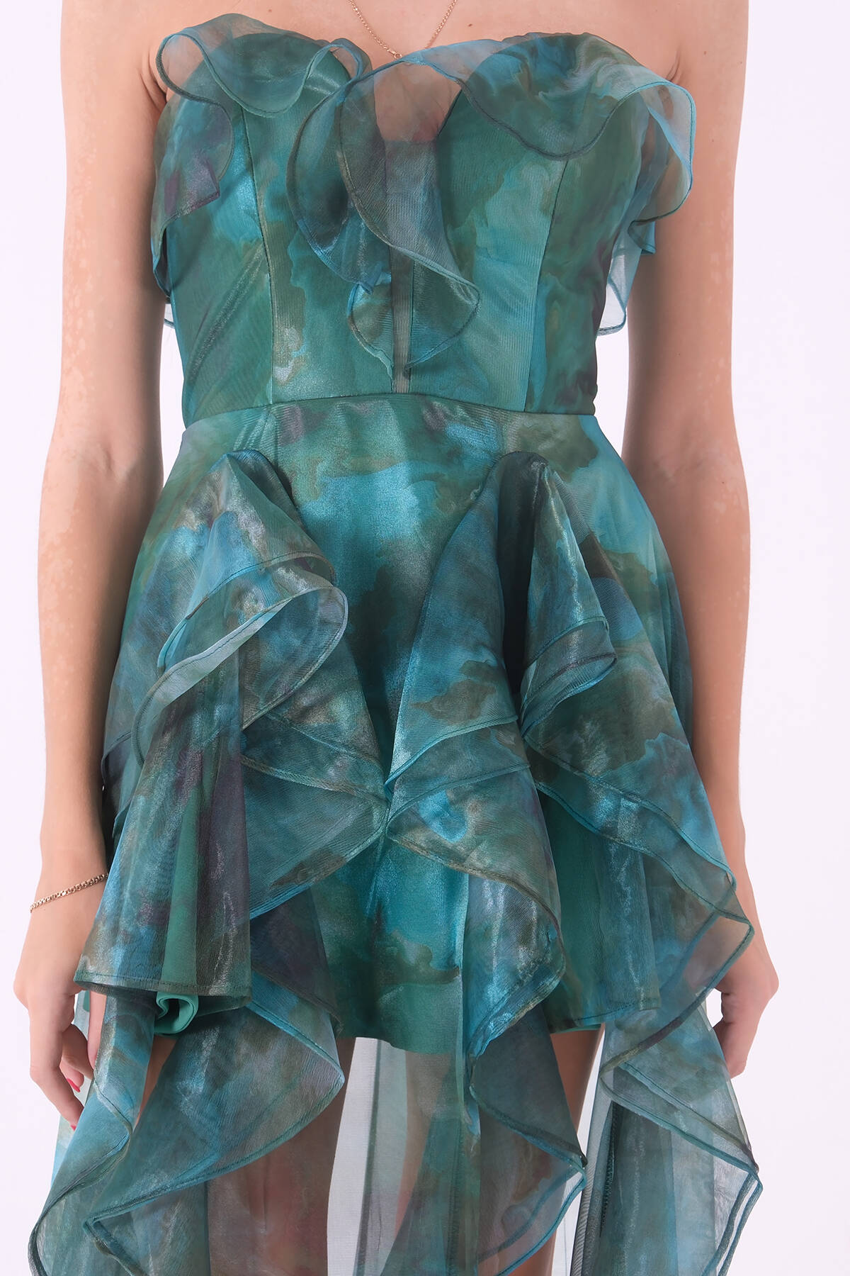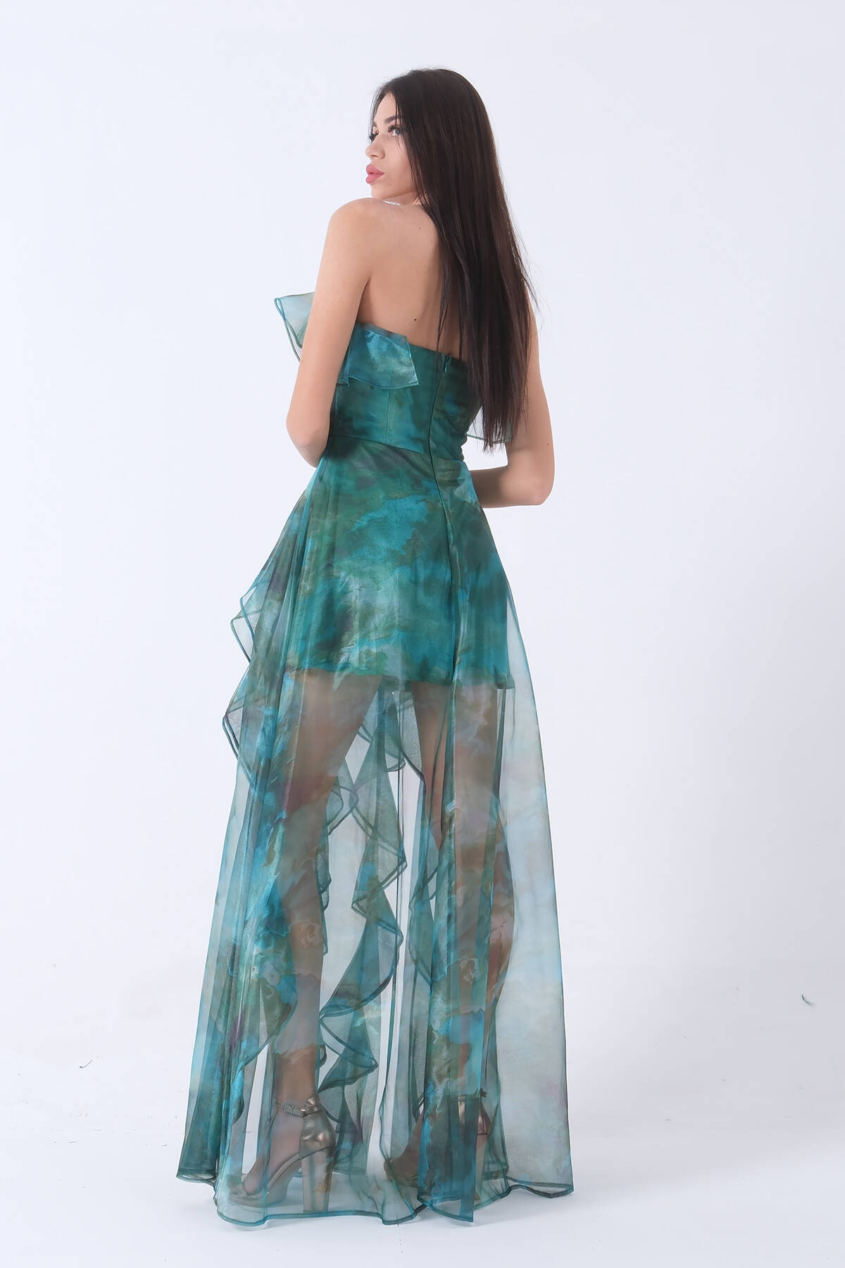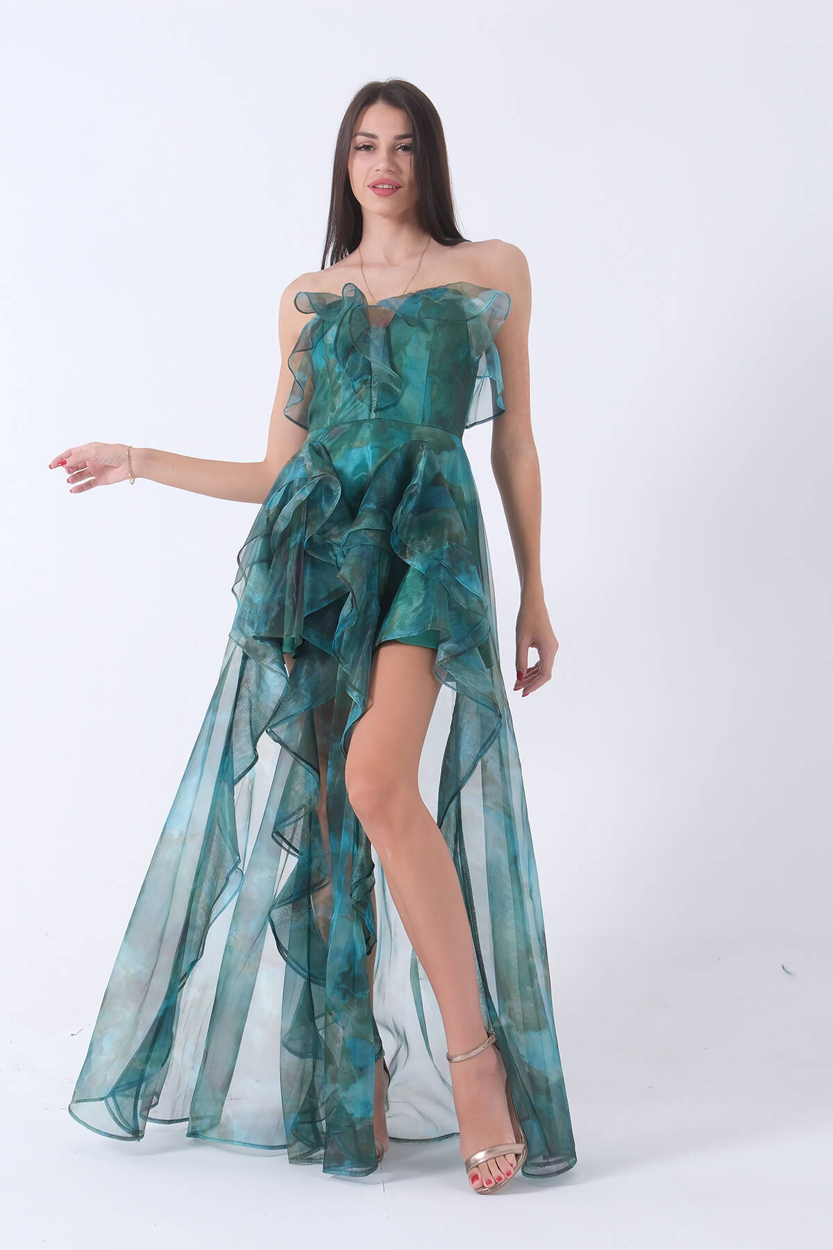 Zümrüt Fırfırlı Tül Şifon Abiye Elbise 0802000.123