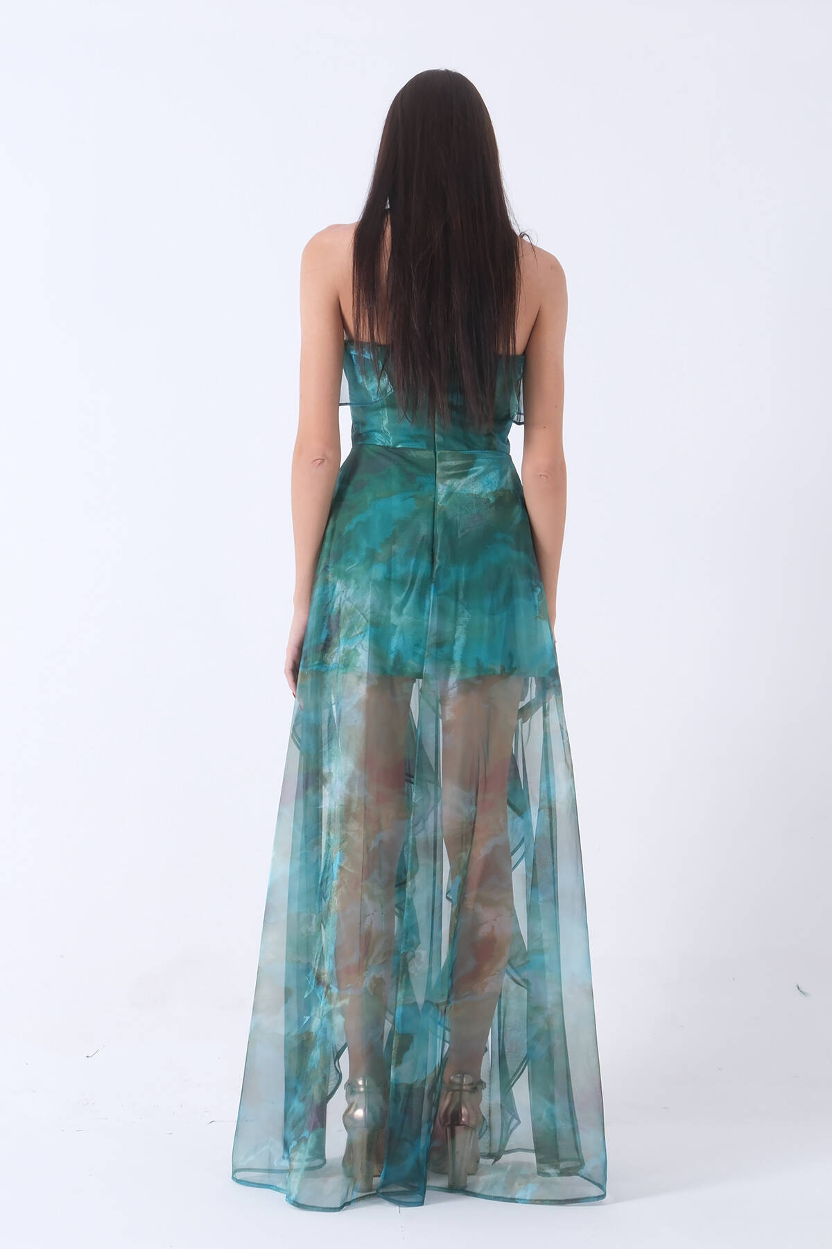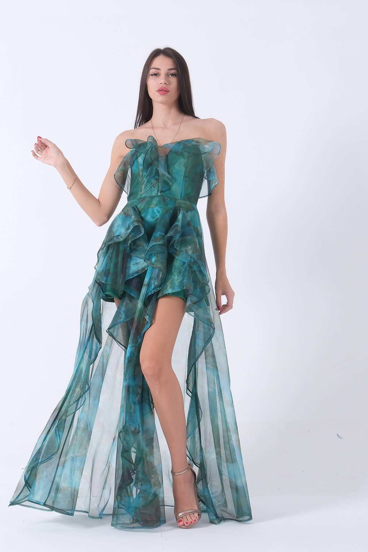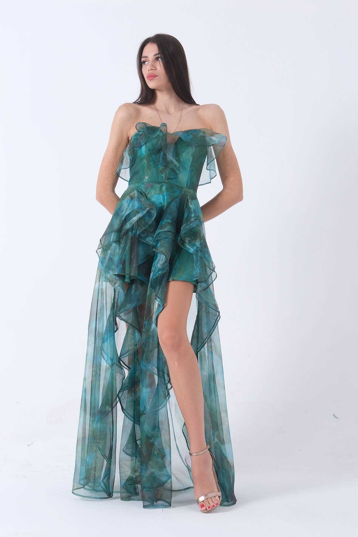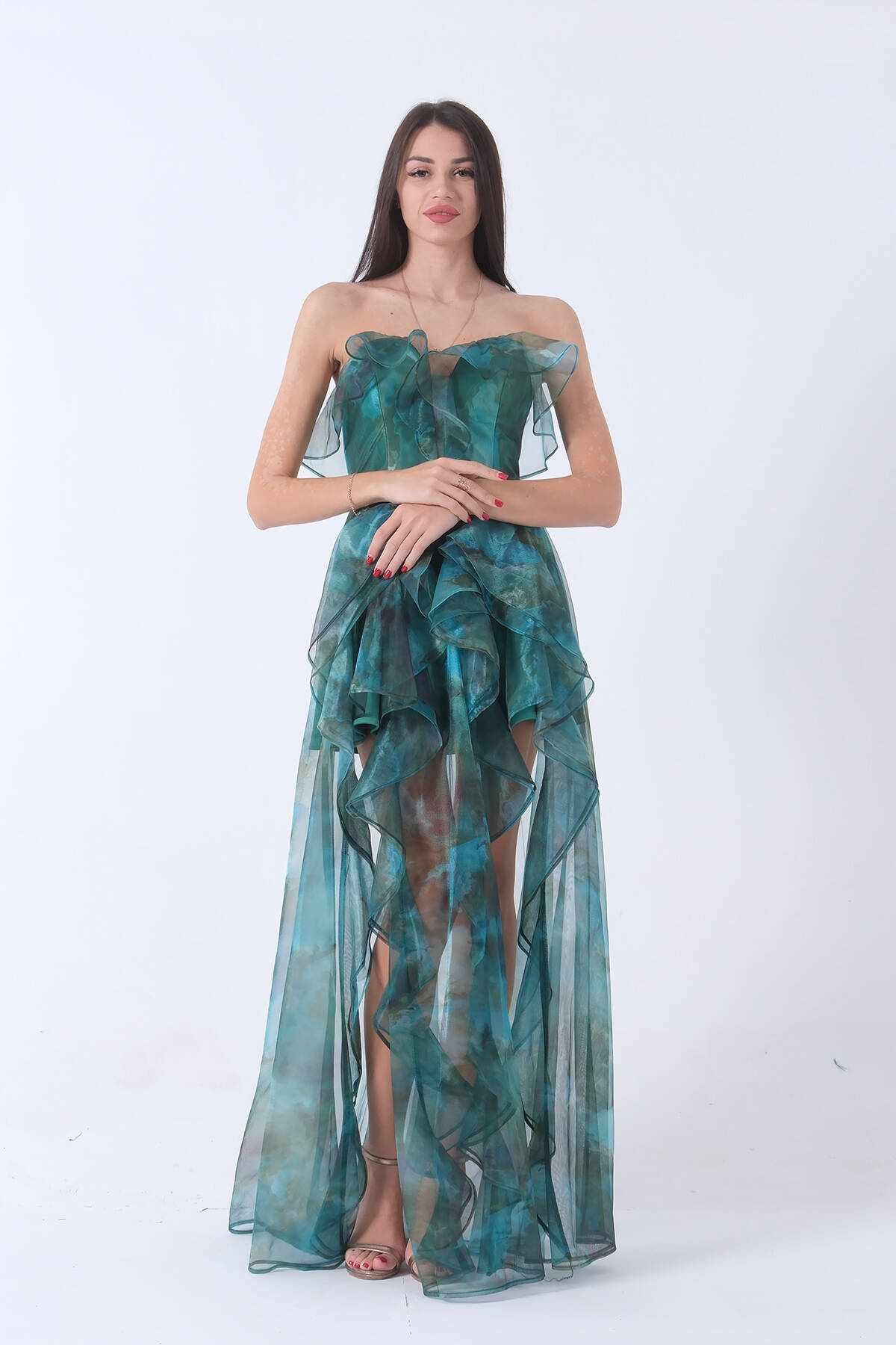 Zümrüt Fırfırlı Tül Şifon Abiye Elbise 0802000.123