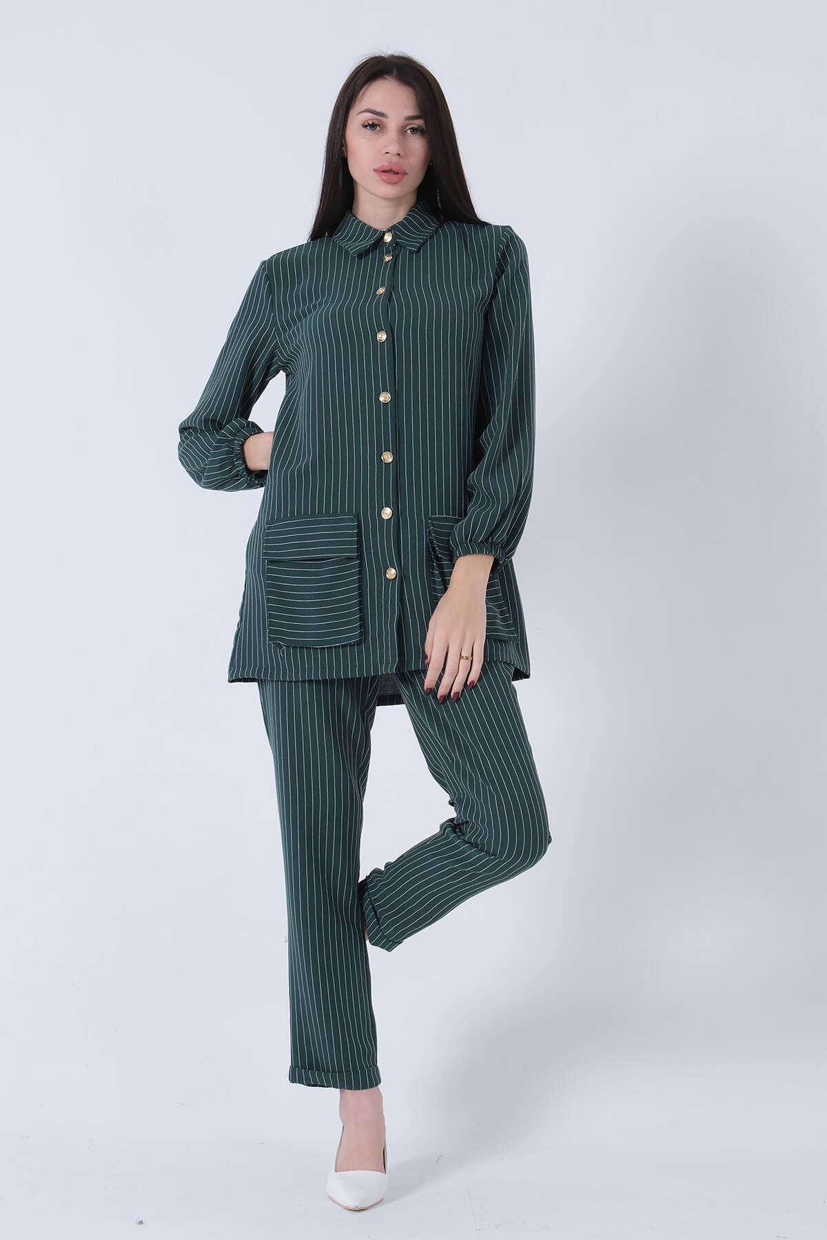 Zümrüt Gold Düğmeli Çizgili Cepli Pantolonlu Takım 0801415.123
