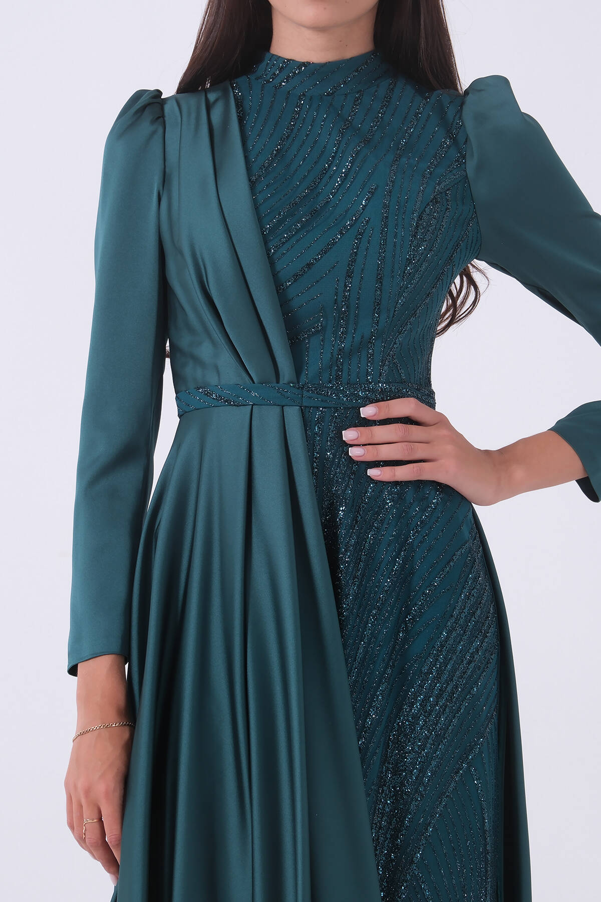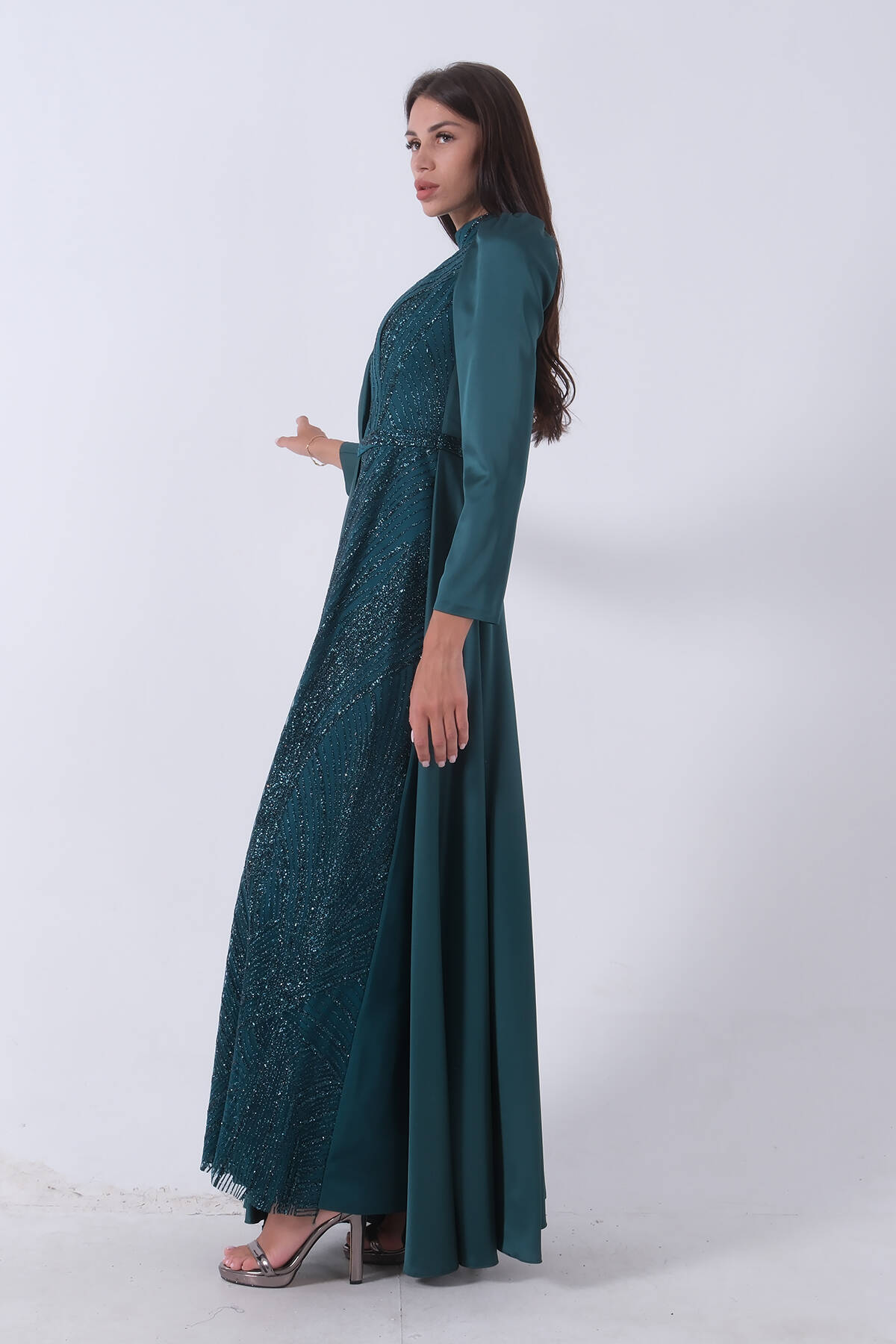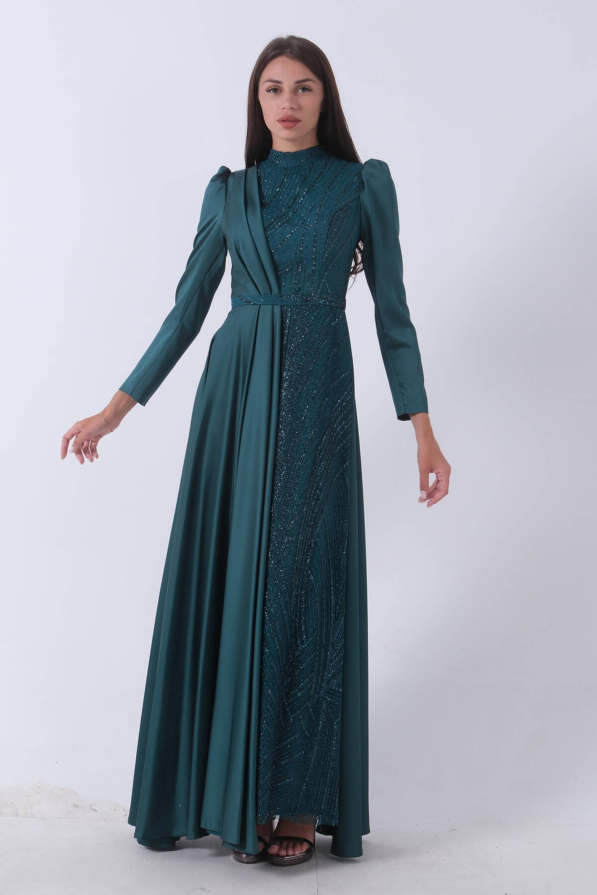 Modelin Ölçüleri : Boy: 1.80 cm / Göğüs: 88 cm / Bel: 69 cm /Basen : 94 cm Mankenin Üzerindeki Ürün 38/M Bedendir %100 Polyester Uzun Kollu Dik Yaka Balon Kol İç Kısmı Simli Sağ Göğüs Üsten Alt Kısmı Parça Kumaşlı Abiye Elbise Ürün Boyu : 158 cm Stüdyo Çekimlerinde Renkler Işık Farklılıgından Dolayı Değişiklik Gösterebilir (Dikkat! Ürünlerimiz güvenlik bandı ile gönderilmektedir . Güvenlik bandı olmayan ürünlerin iadesi kabul edilmeyecektir)