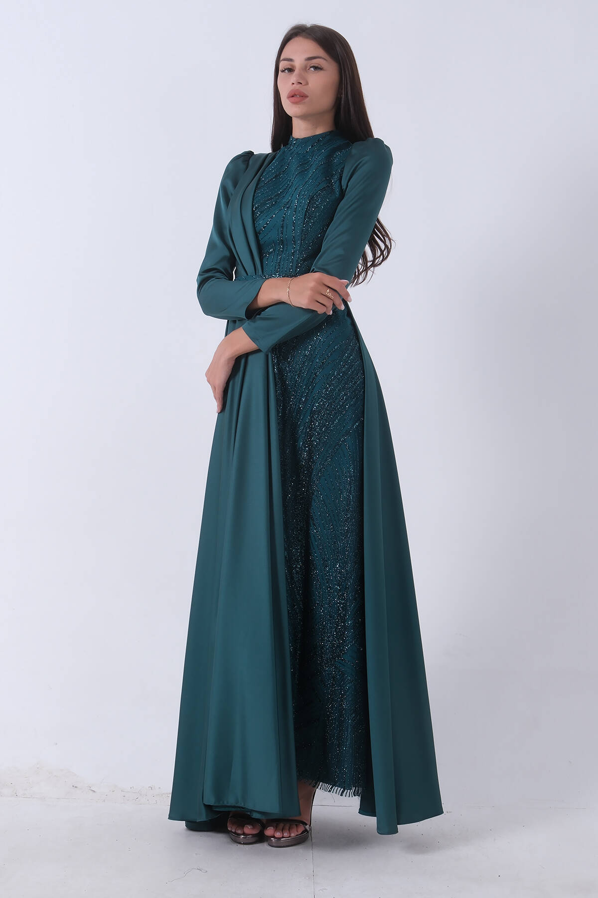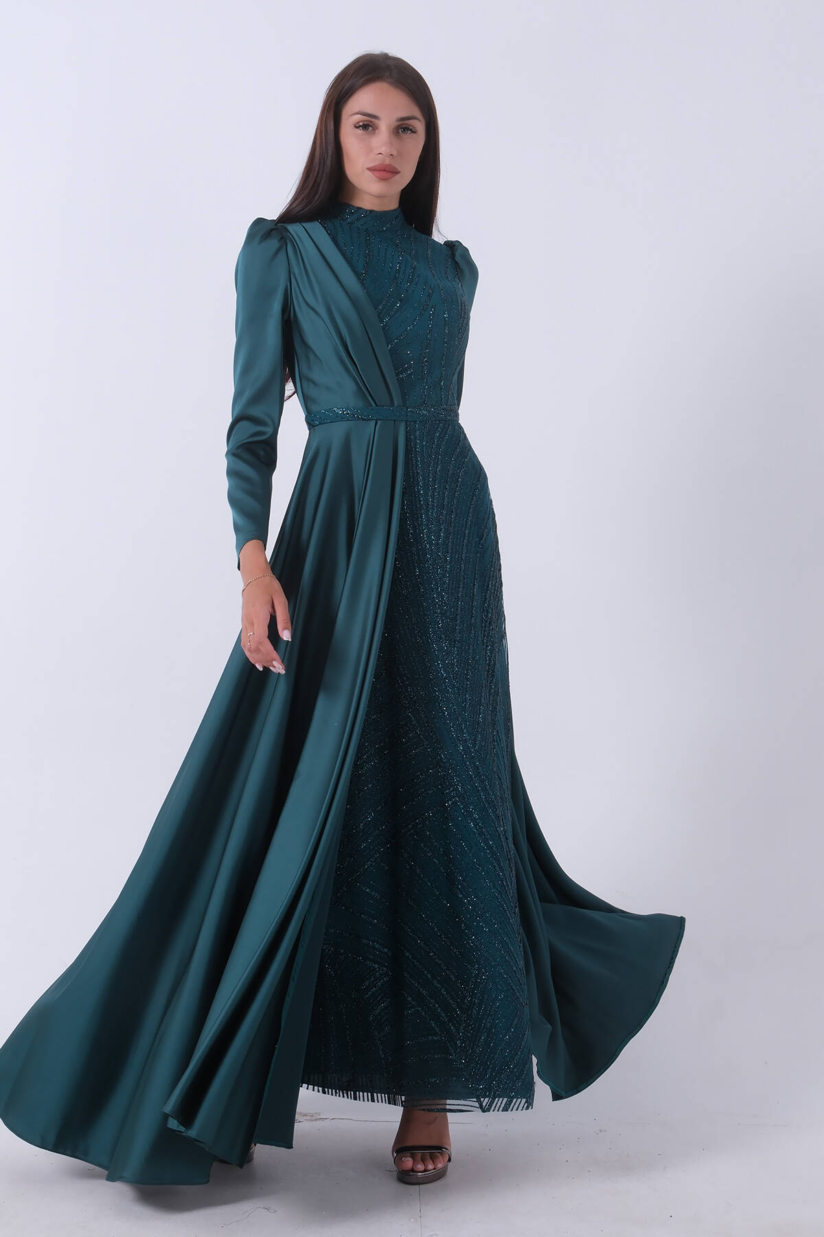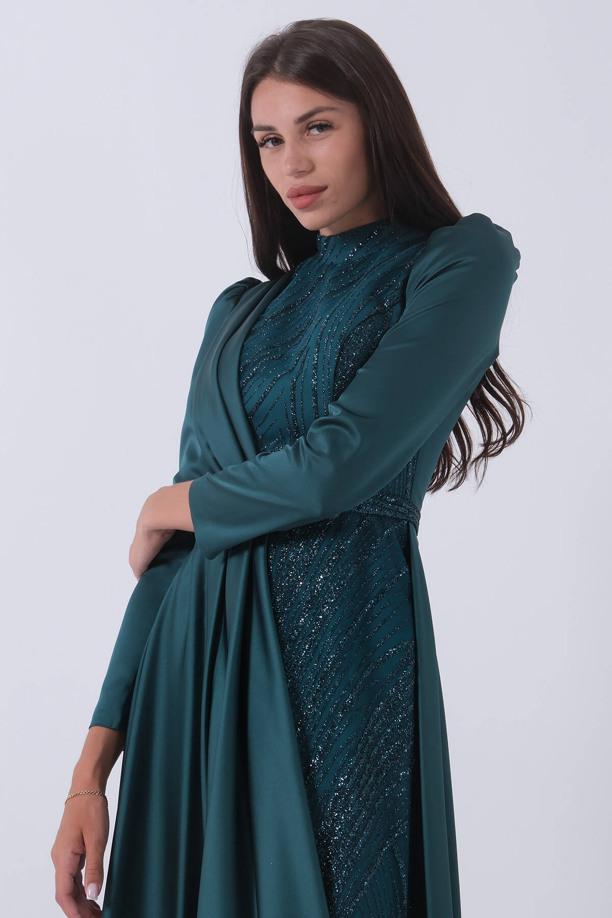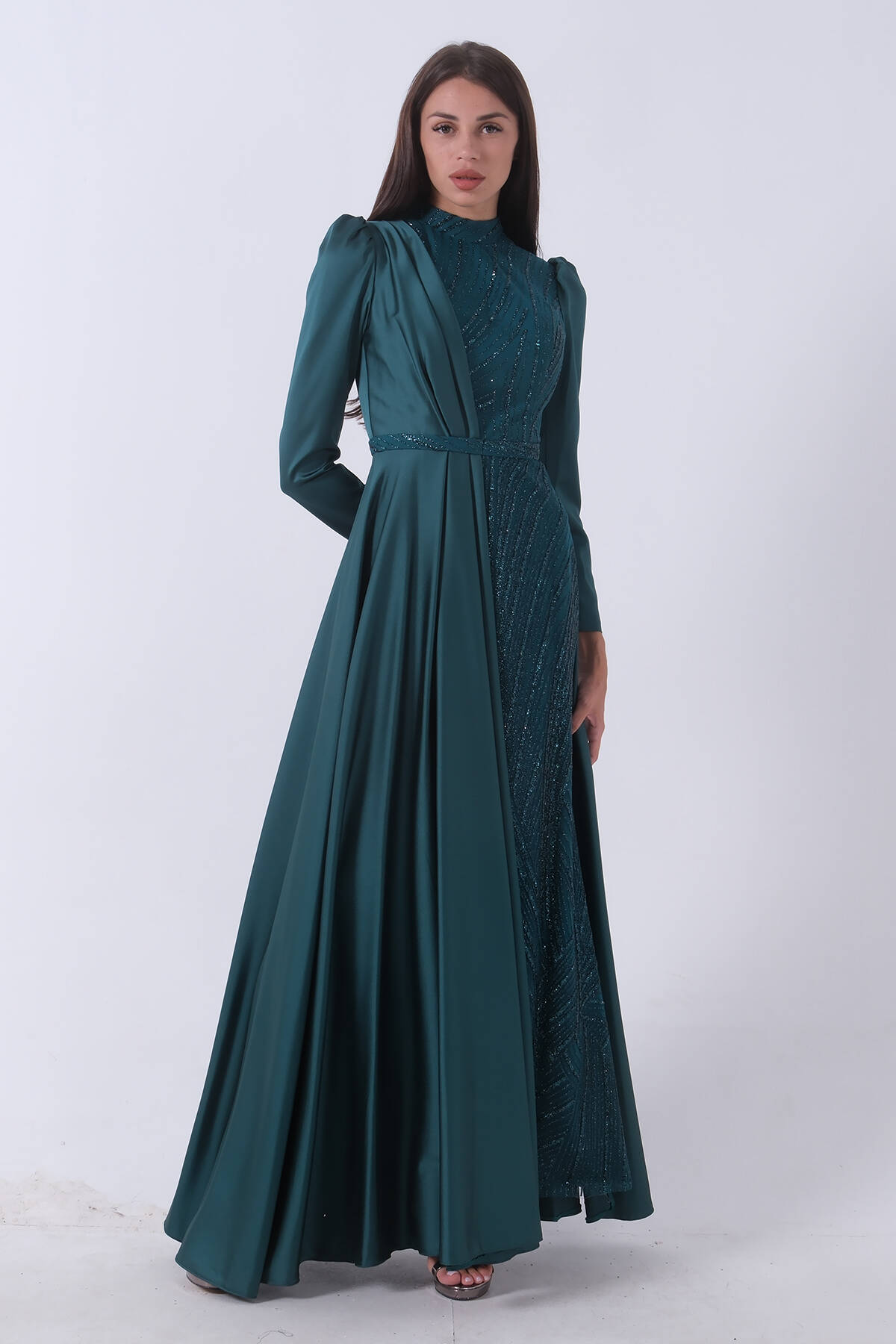 Modelin Ölçüleri : Boy: 1.80 cm / Göğüs: 88 cm / Bel: 69 cm /Basen : 94 cm Mankenin Üzerindeki Ürün 38/M Bedendir %100 Polyester Uzun Kollu Dik Yaka Balon Kol İç Kısmı Simli Sağ Göğüs Üsten Alt Kısmı Parça Kumaşlı Abiye Elbise Ürün Boyu : 158 cm Stüdyo Çekimlerinde Renkler Işık Farklılıgından Dolayı Değişiklik Gösterebilir (Dikkat! Ürünlerimiz güvenlik bandı ile gönderilmektedir . Güvenlik bandı olmayan ürünlerin iadesi kabul edilmeyecektir)