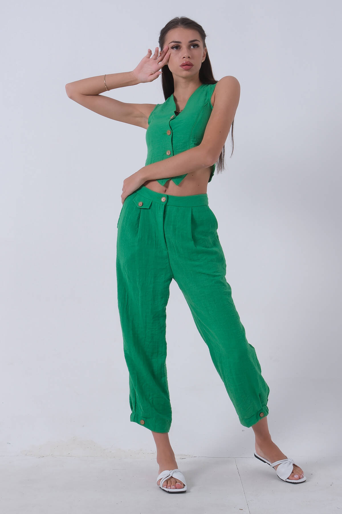 Haki Yaka ve Pantolon Paçası Taş Detaylı Tunikli Takım 4703048.23