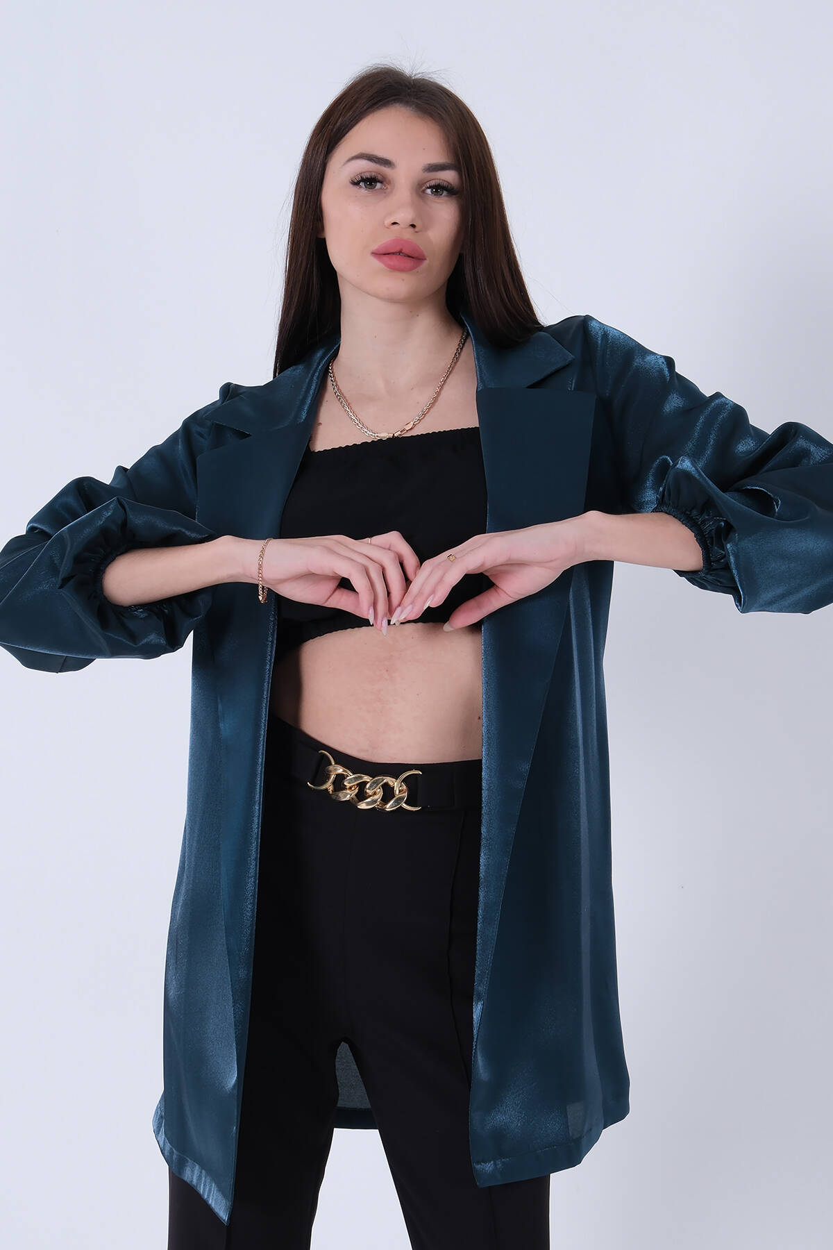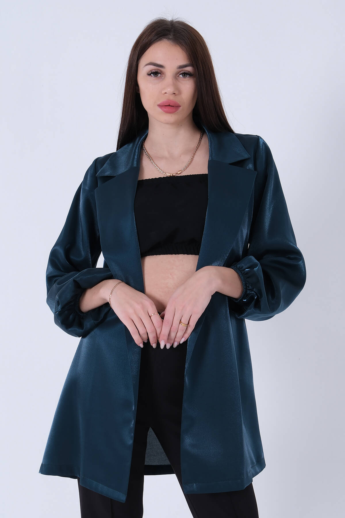 Zümrüt Kolları Volanlı Monoray Saten Ceket 31050689.123